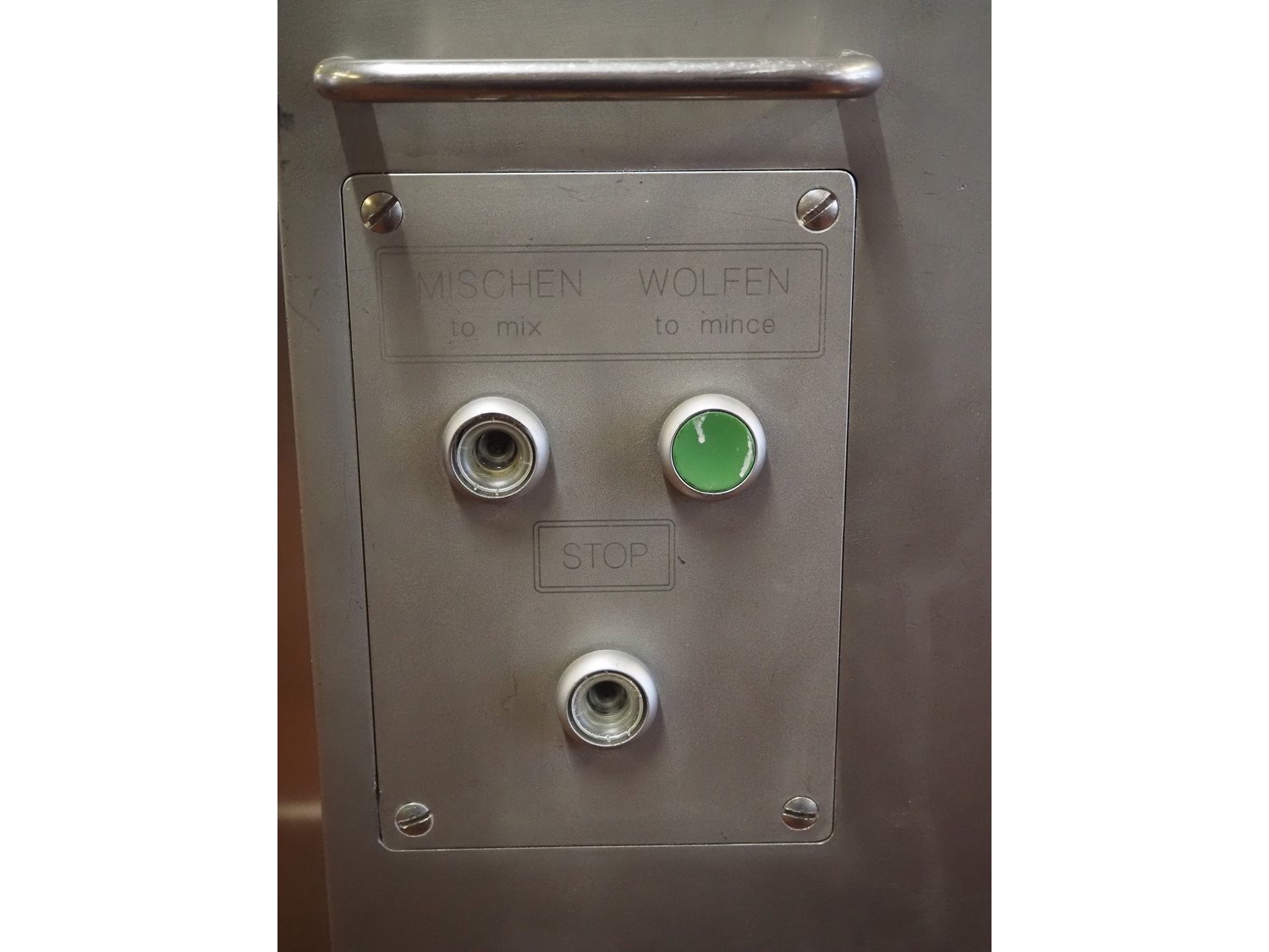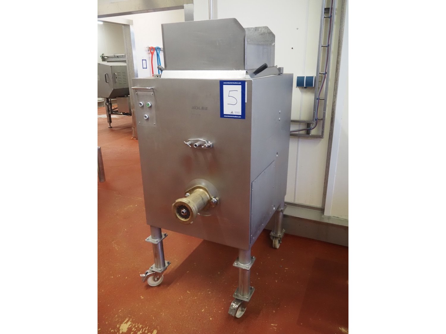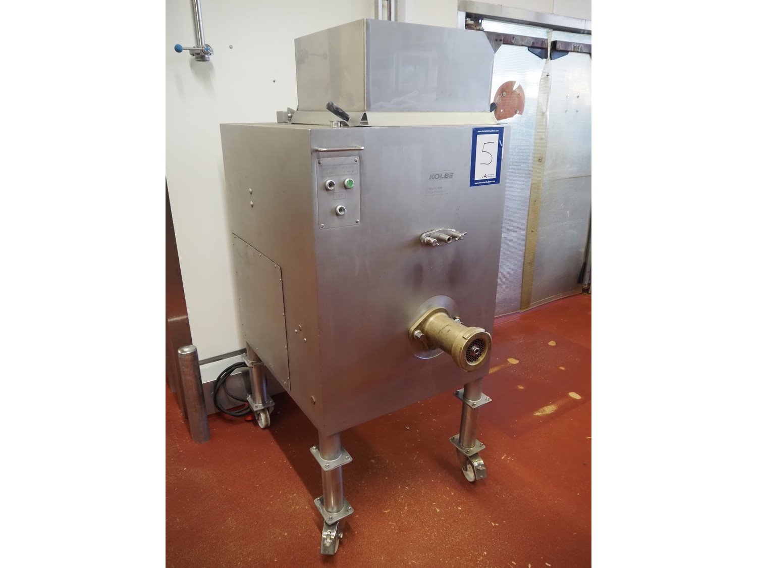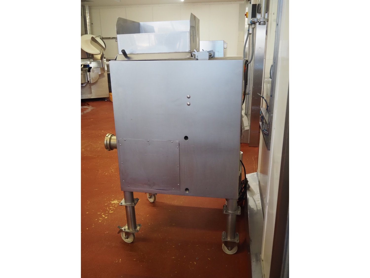 Kolbe mobile mixer-grinder, type: MWE32, serial number: 125537, year of construction: 1997, 3 x 400 V, 50 Hz, 6.6 kW, infeed height: 1500 mm, outfeed height: 750 mm, hopper: 120 liter, plate diameter: Enterprise 32 / 100 mm, weight: 500 kg, dimensions: 1200 mm x 800 mm x 1800 mm. Kavel locatie: Bunsenstraat 79, 3316 GC Dordrecht, Nederland