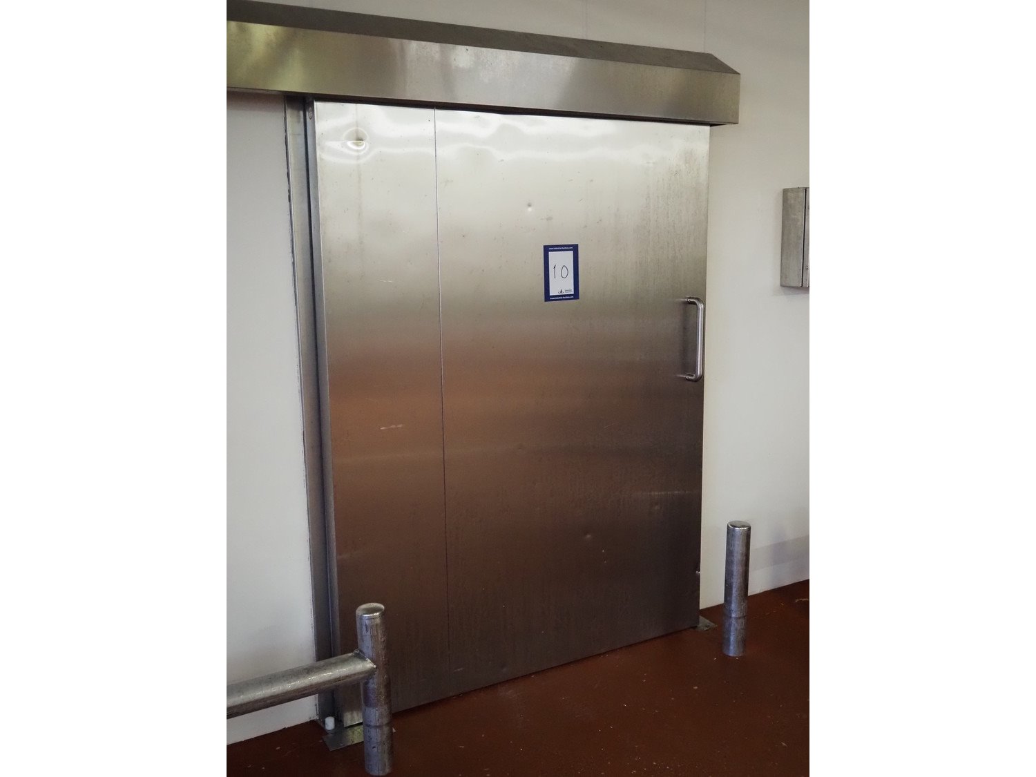 Metaflex s/s refrigerated sliding door, model: PPO-055503/001, year of construction: 2020, thickness door: 100 mm, dimensions door: 1230 mm x 2000 mm, length rail: 3170 mm. Kavel locatie: Bunsenstraat 79, 3316 GC Dordrecht, Nederland