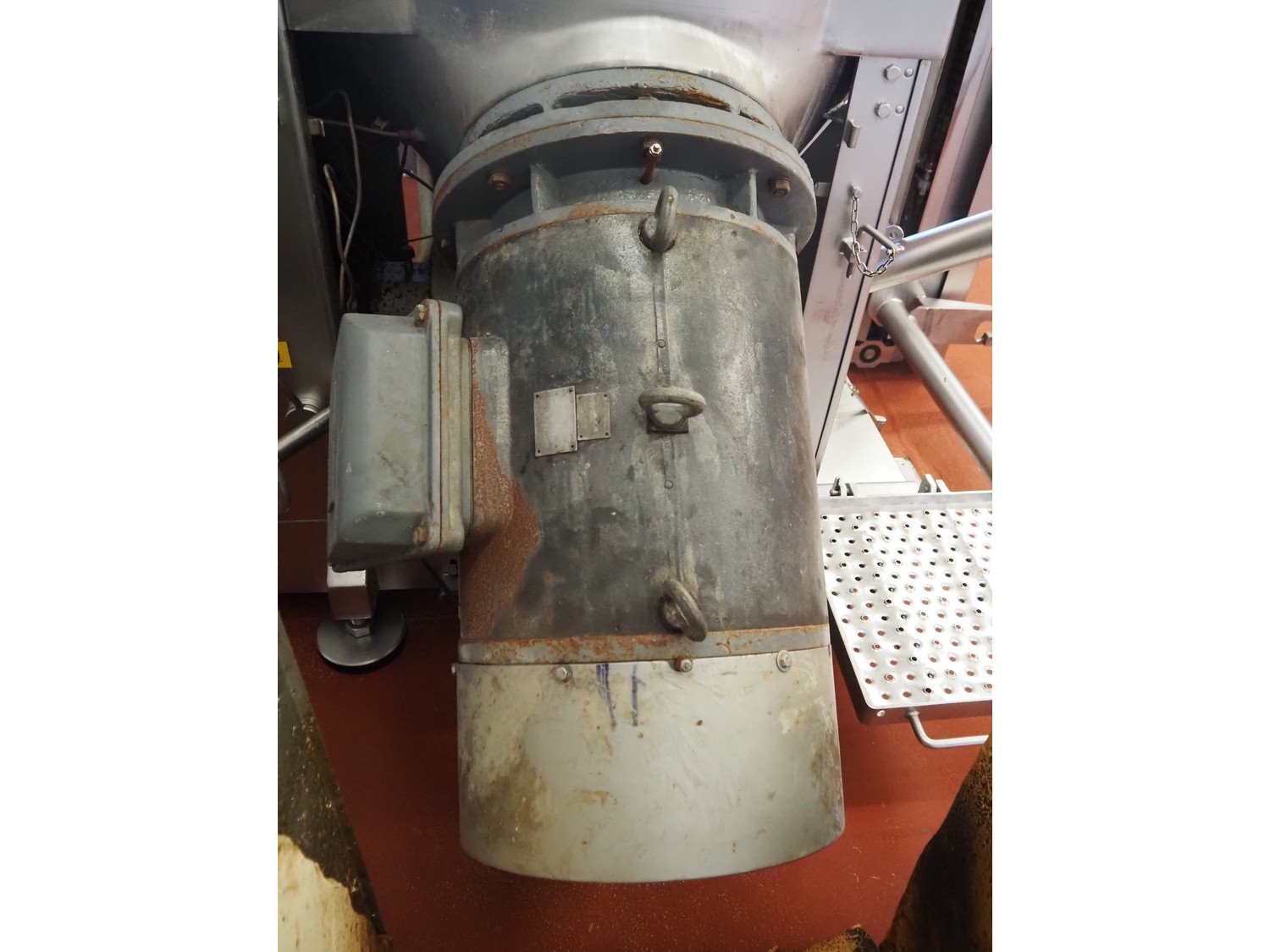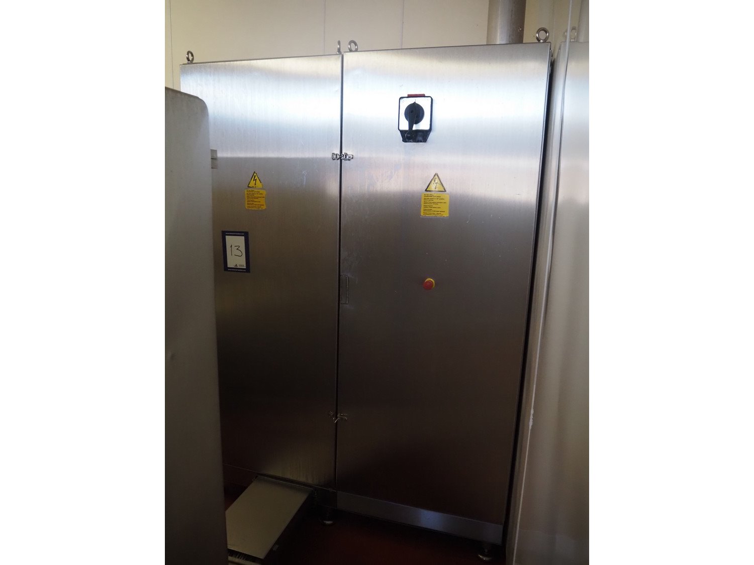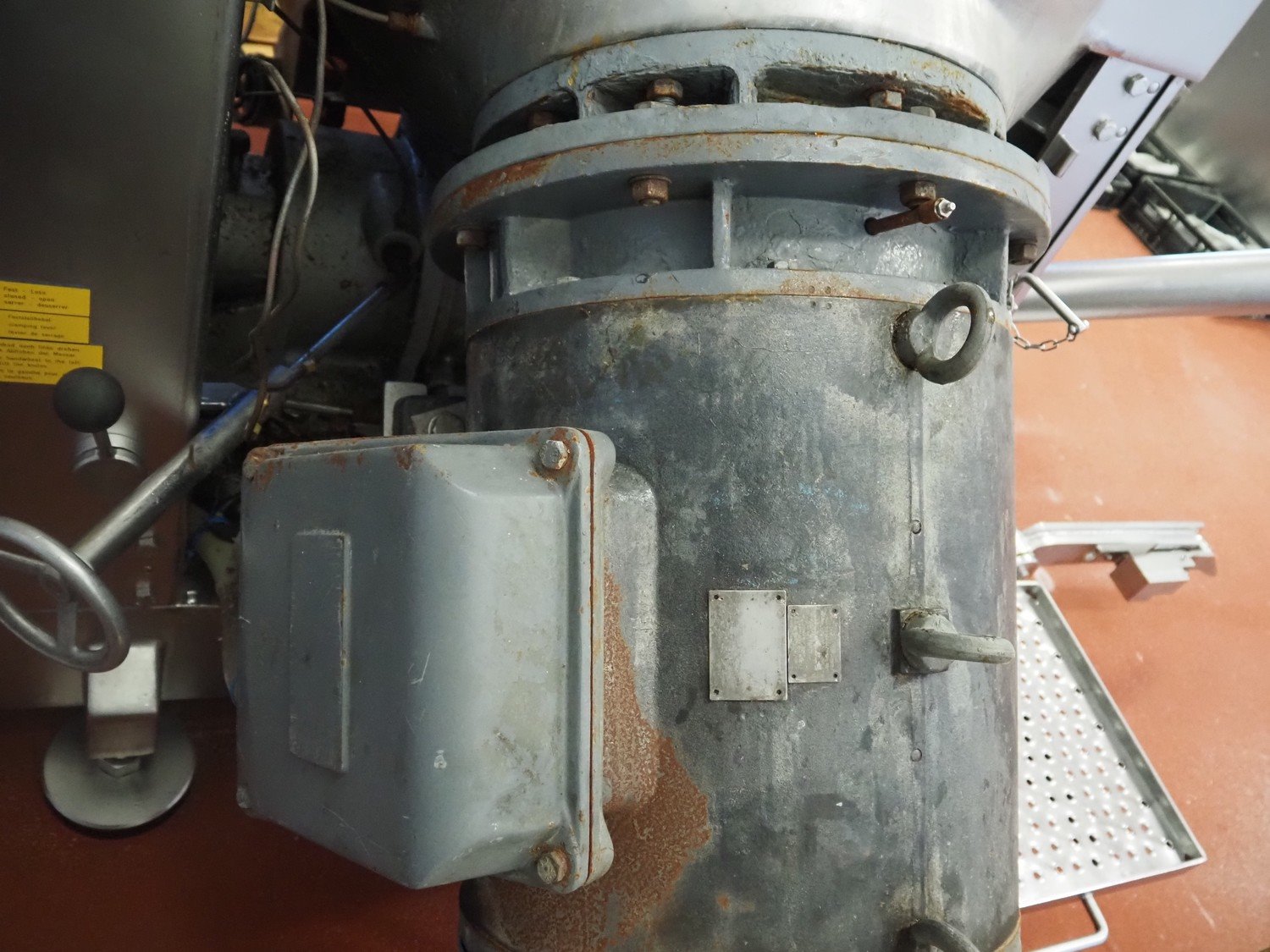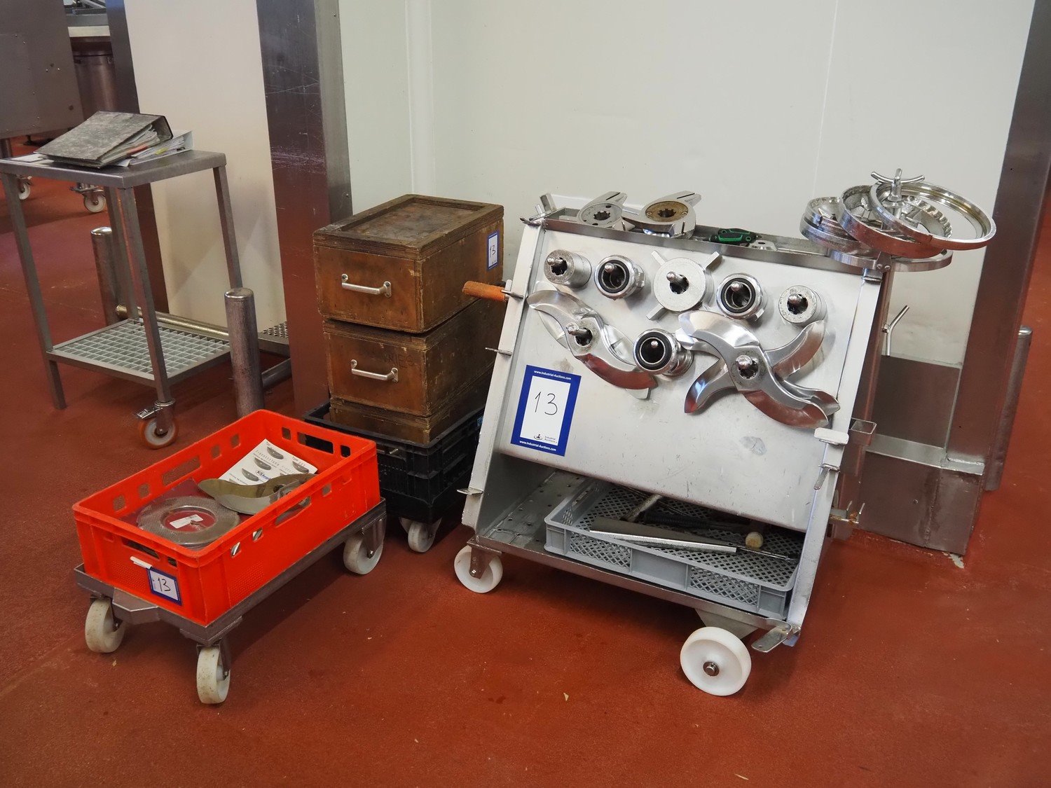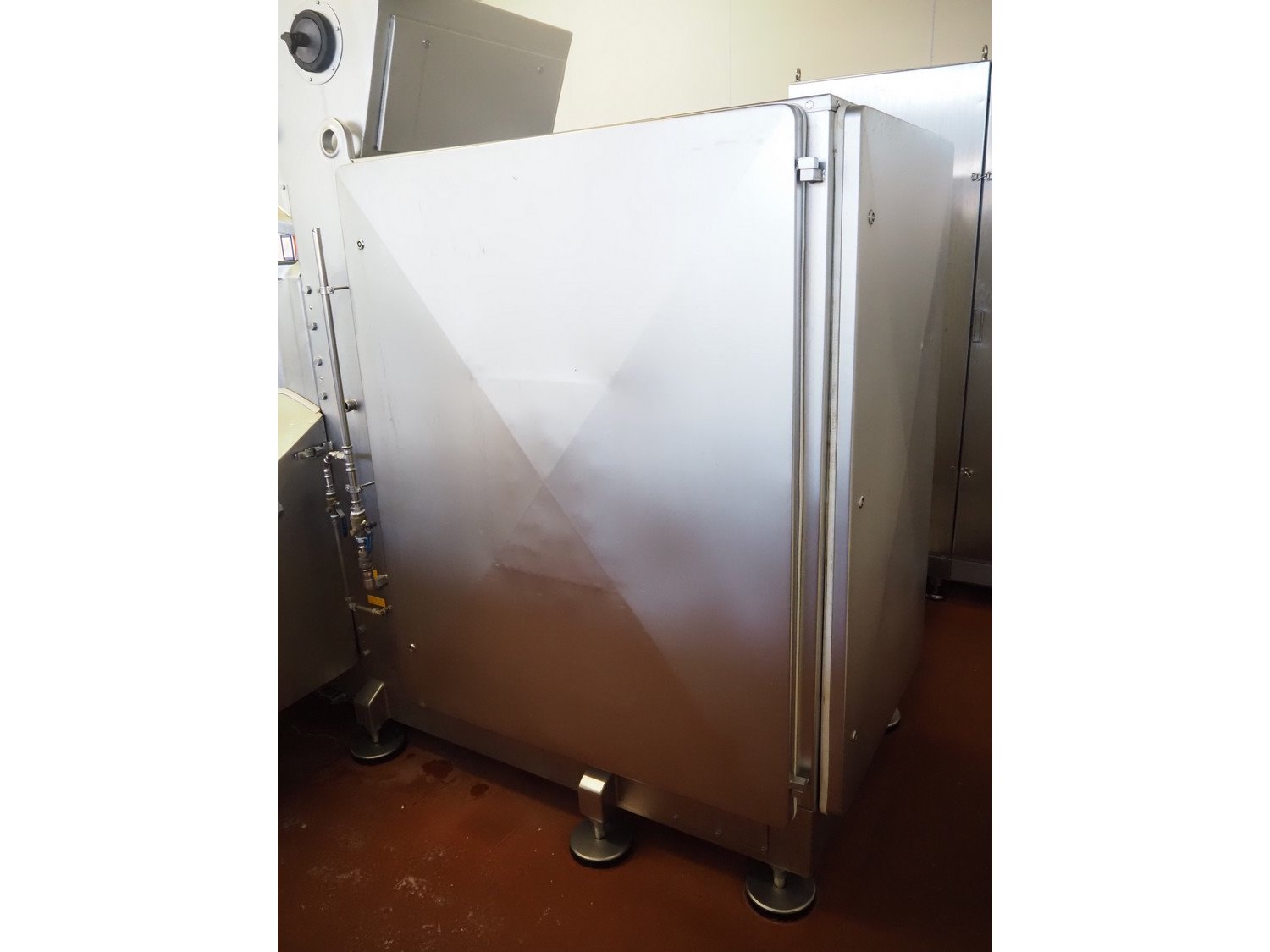 Karl Schnell emulsifier with lifter for 200 liter meat bins, type: FD9, machine number: 31315, year of construction: 2002, 400 V, 50 Hz, 400 A, 200 kW, dimensions emulsifier: 4100 mm x 2800 mm x 2700 mm, switch cabinet, dimensions: 1700 mm x 600 mm x 2300 mm, control panel, dimensions: 600 mm x 300 mm x 700 mm, including 2 rollies and trolley with large amount of plates and knifes, dimensions trolley: 1100 mm x 600 mm x 1000 mm, including pallet with various parts. Kavel locatie: Bunsenstraat 79, 3316 GC Dordrecht, Nederland