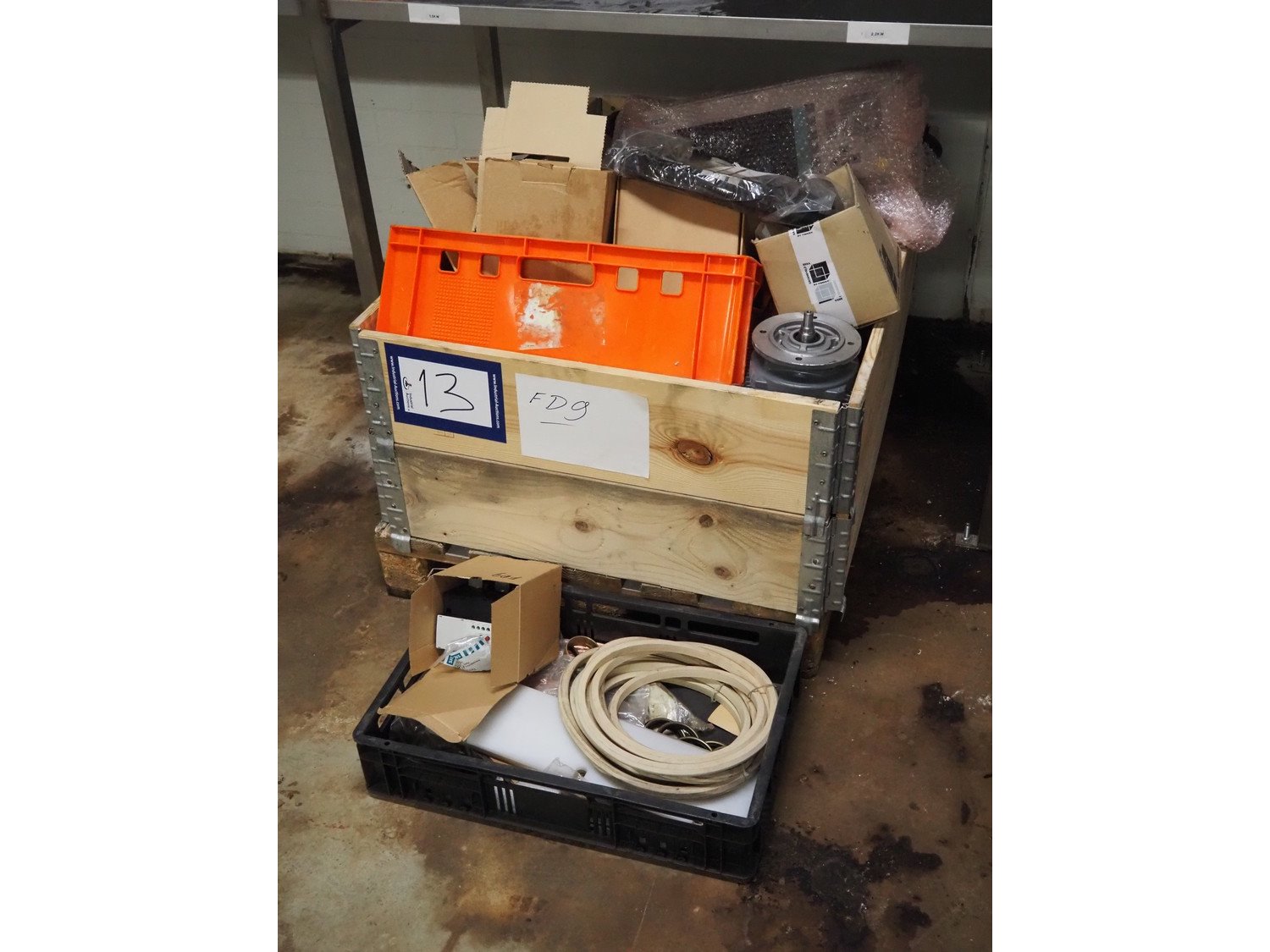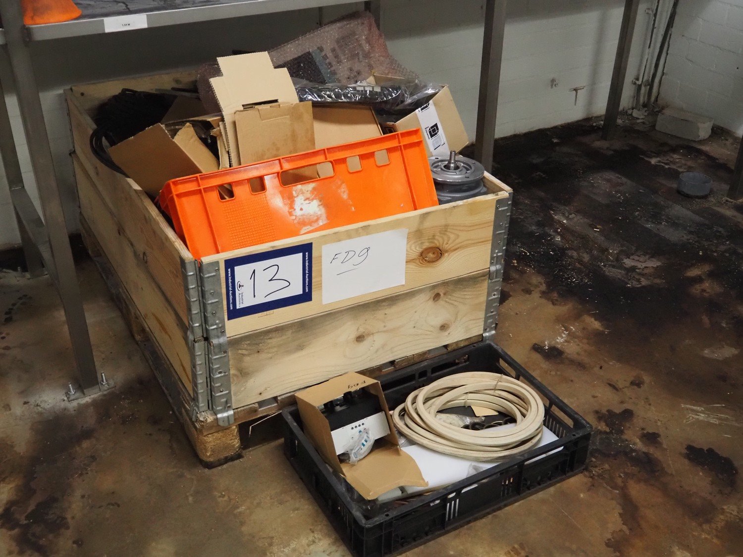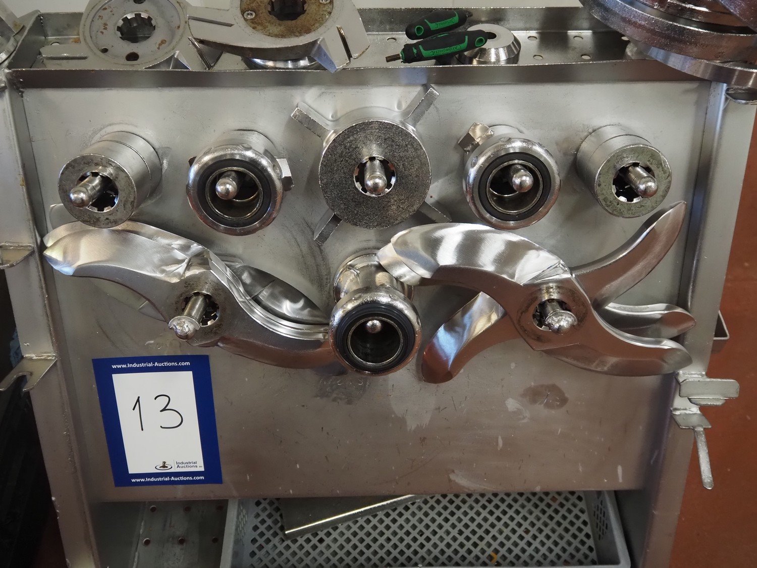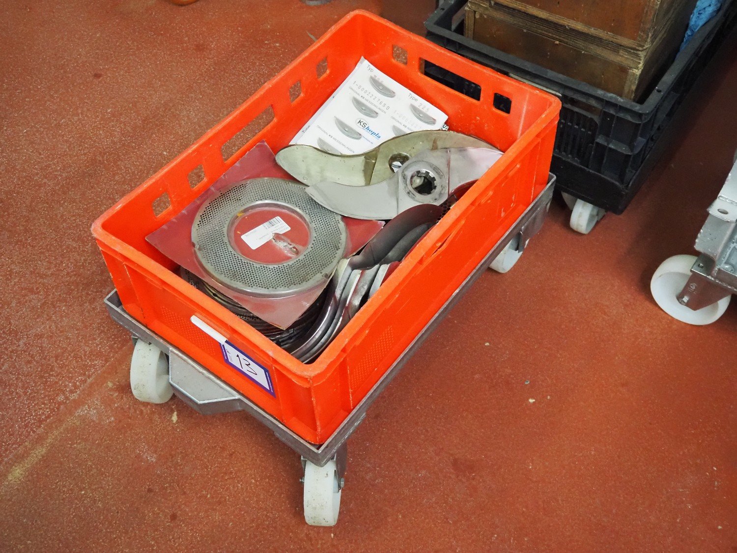 Karl Schnell emulsifier with lifter for 200 liter meat bins, type: FD9, machine number: 31315, year of construction: 2002, 400 V, 50 Hz, 400 A, 200 kW, dimensions emulsifier: 4100 mm x 2800 mm x 2700 mm, switch cabinet, dimensions: 1700 mm x 600 mm x 2300 mm, control panel, dimensions: 600 mm x 300 mm x 700 mm, including 2 rollies and trolley with large amount of plates and knifes, dimensions trolley: 1100 mm x 600 mm x 1000 mm, including pallet with various parts. Kavel locatie: Bunsenstraat 79, 3316 GC Dordrecht, Nederland
