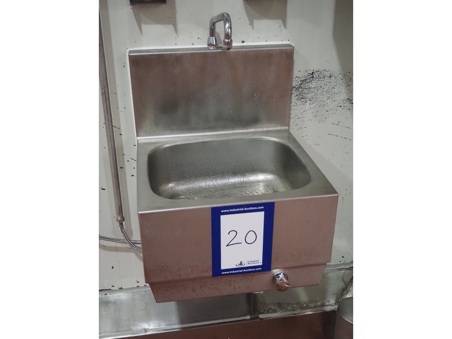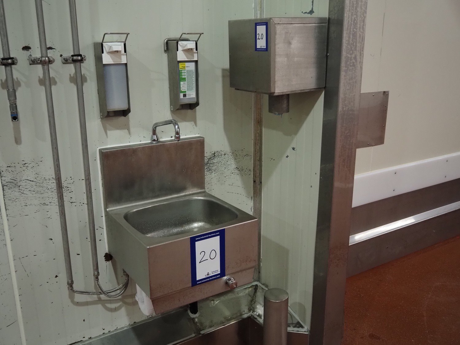 S/s sink, knee control, dimensions: 460 mm x 460 mm x 800 mm, s/s paper dispenser, dimensions: 270 mm x 270 mm x 400 mm and 2 s/s soap dispensers. Kavel locatie: Bunsenstraat 79, 3316 GC Dordrecht, Nederland
