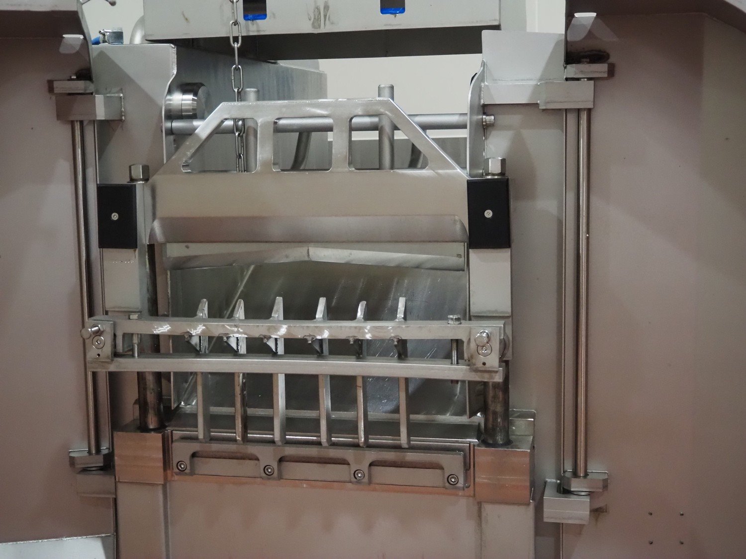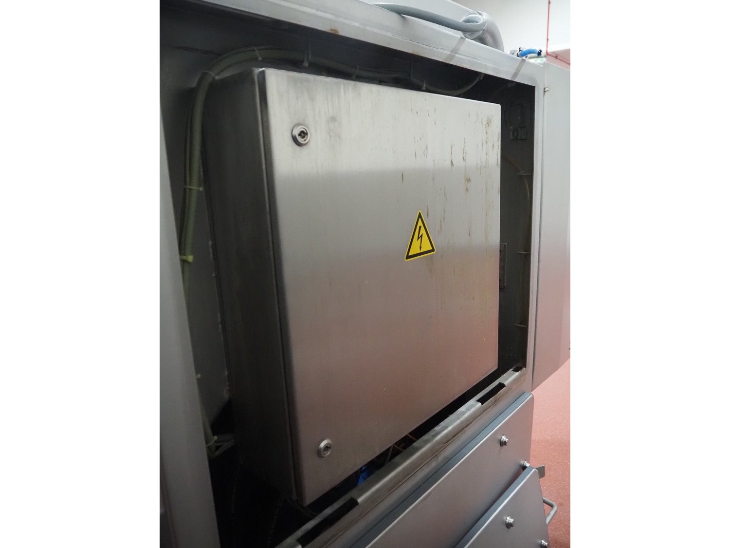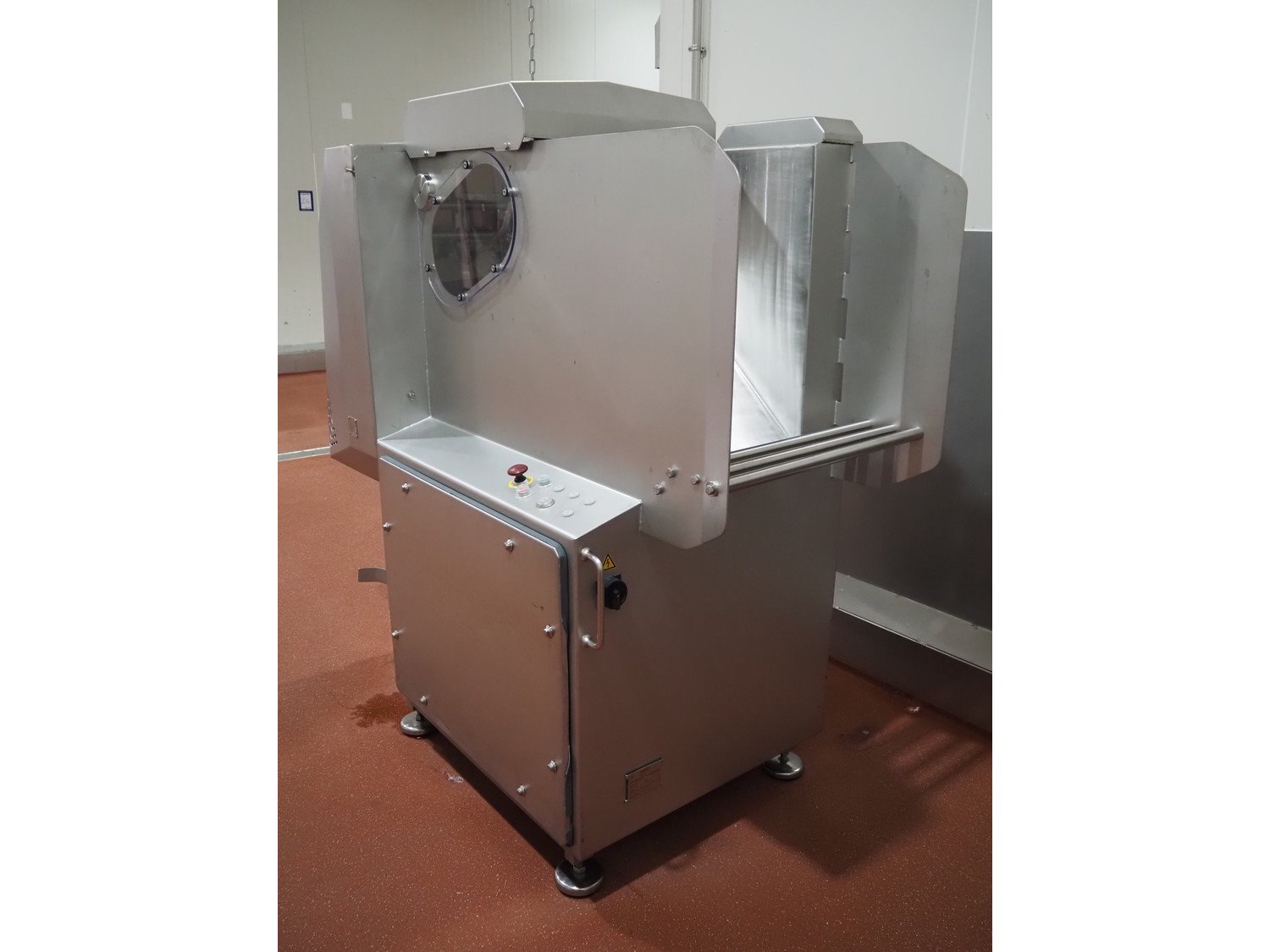 Magurit frozen block cutter, type: 053, machine number: 6159, year of construction: 2011, 400 V, 50 Hz, 13 A, 5.5 kW, weight: 660 kg, air pressure: 6 bar, working width: 500 mm, distance between knives: 50 mm, total dimensions: 2200 mm x 950 mm x 900 mm. Kavel locatie: Bunsenstraat 79, 3316 GC Dordrecht, Nederland