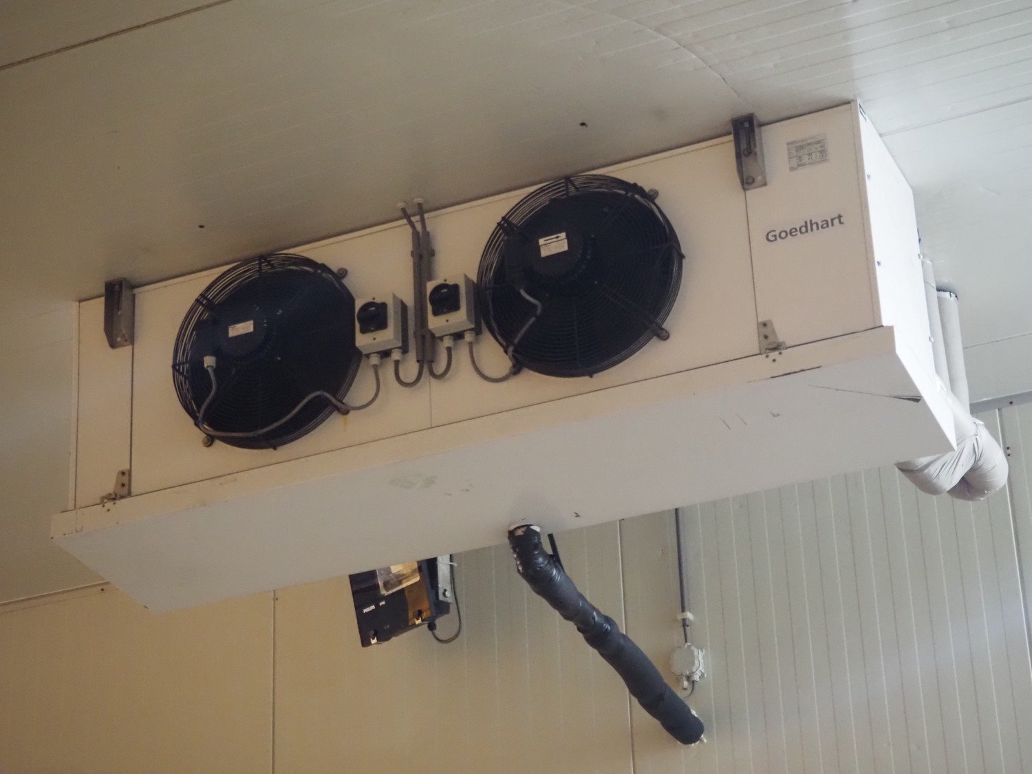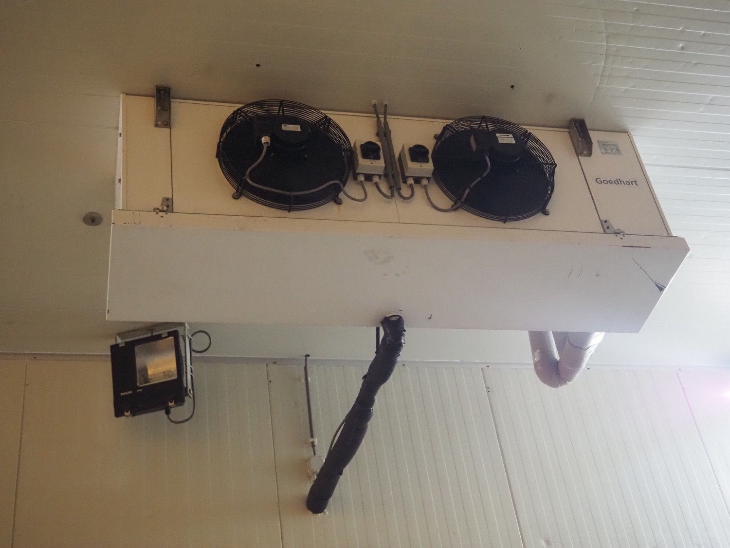 GEA Goedhart B.V. evaporator, model: VRZ 42458, cooling capacity: 13 kW at -22˚C / -30˚C, 2 fans, dimensions: 2056 mm x 770 mm x 710 mm. Kavel locatie: Bunsenstraat 79, 3316 GC Dordrecht, Nederland