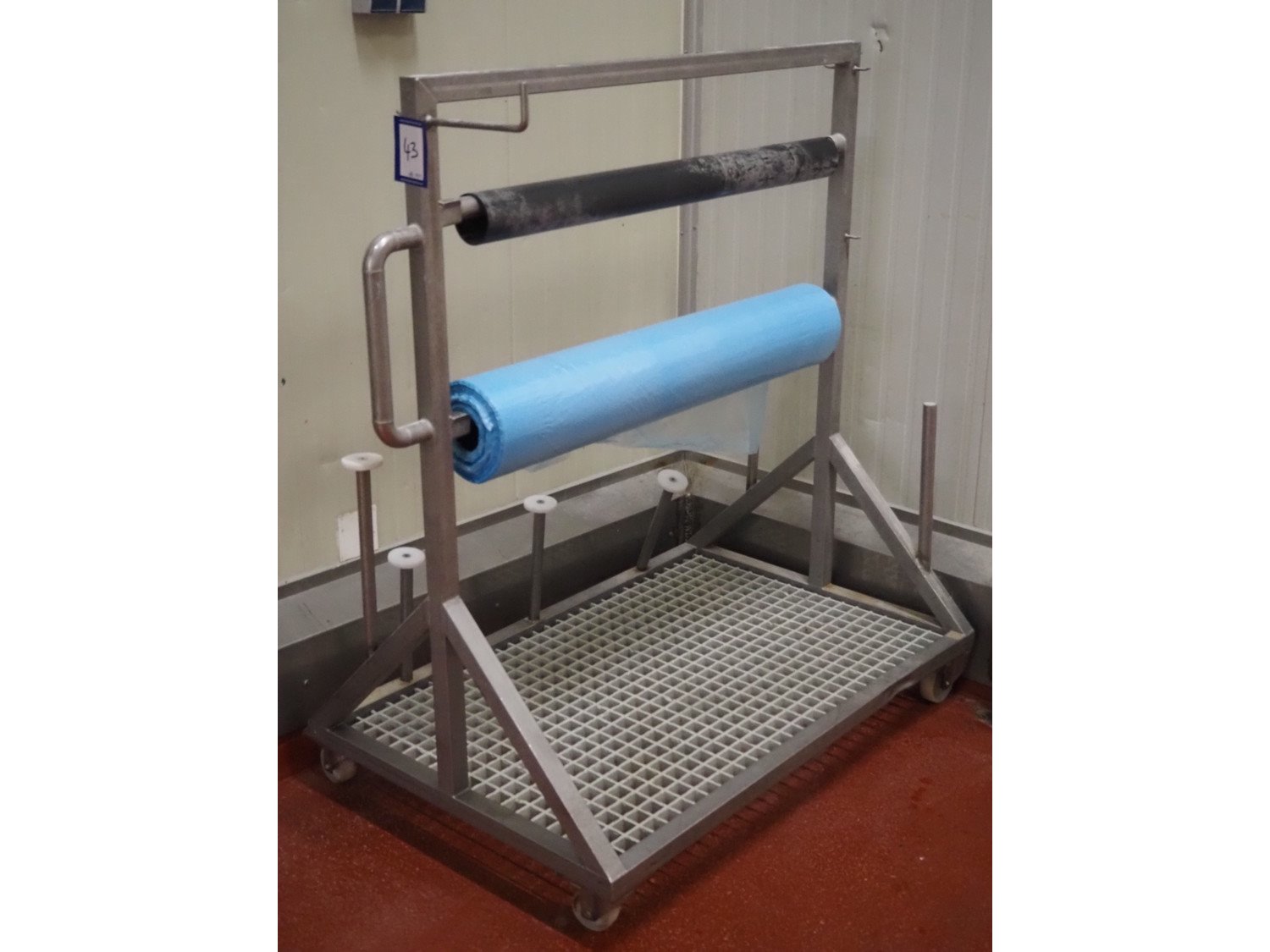 S/s trolley for film rolls, film width: 1000 mm, dimensions: 1350 mm x 800 mm x 1400 mm. Kavel locatie: Bunsenstraat 79, 3316 GC Dordrecht, Nederland