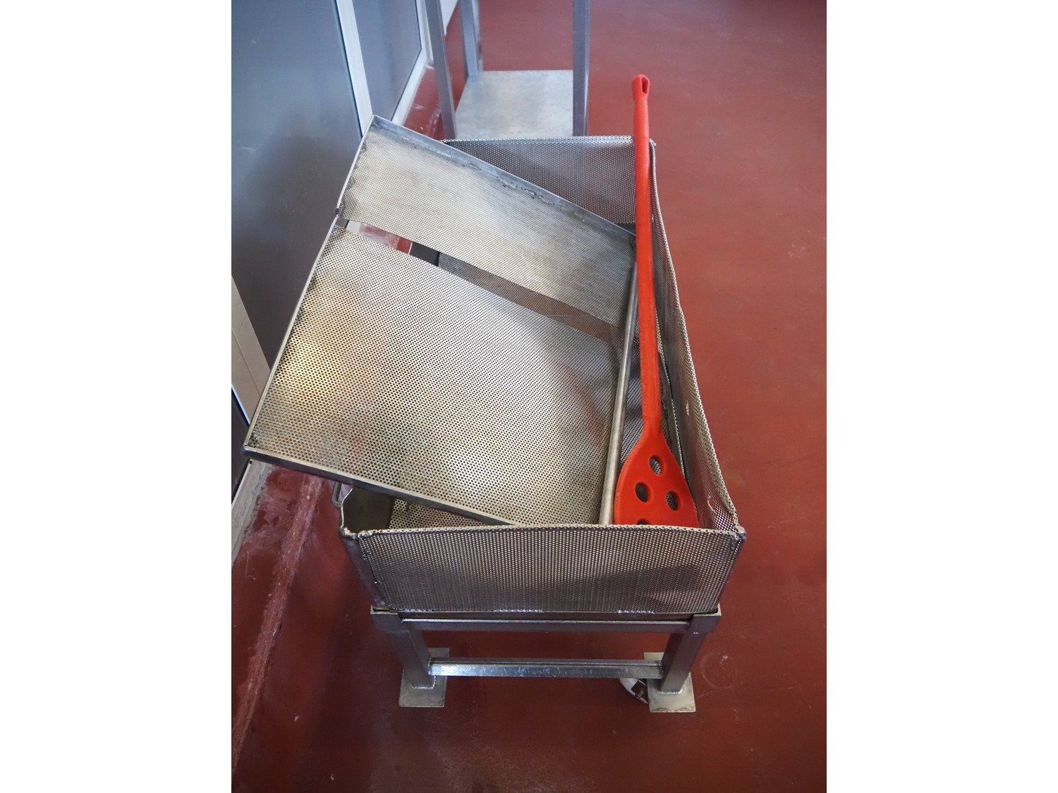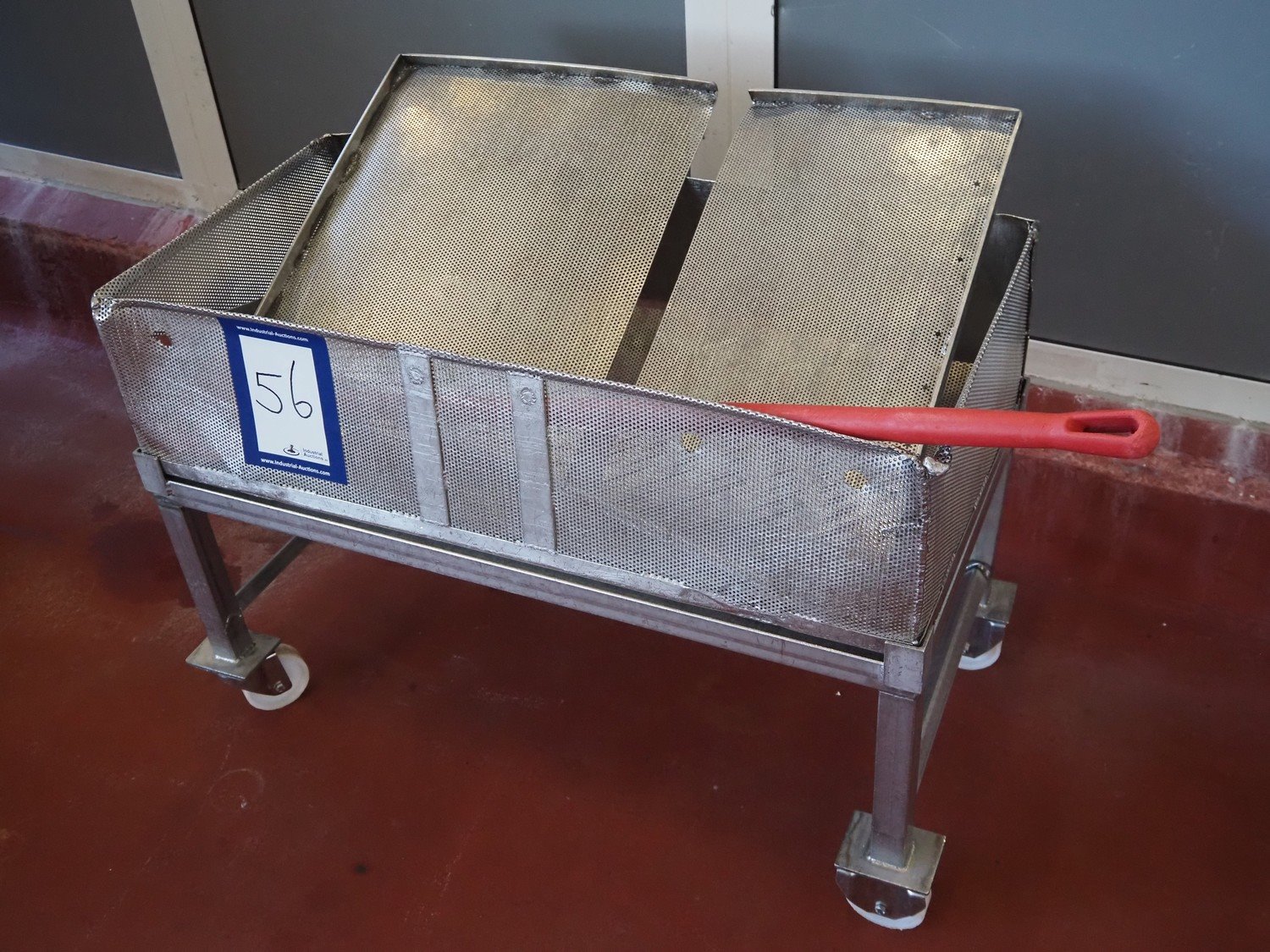 S/s trolley with perforations, 3 mm, total dimensions: 1000 mm x 550 mm x 700 mm. Kavel locatie: Bunsenstraat 79, 3316 GC Dordrecht, Nederland