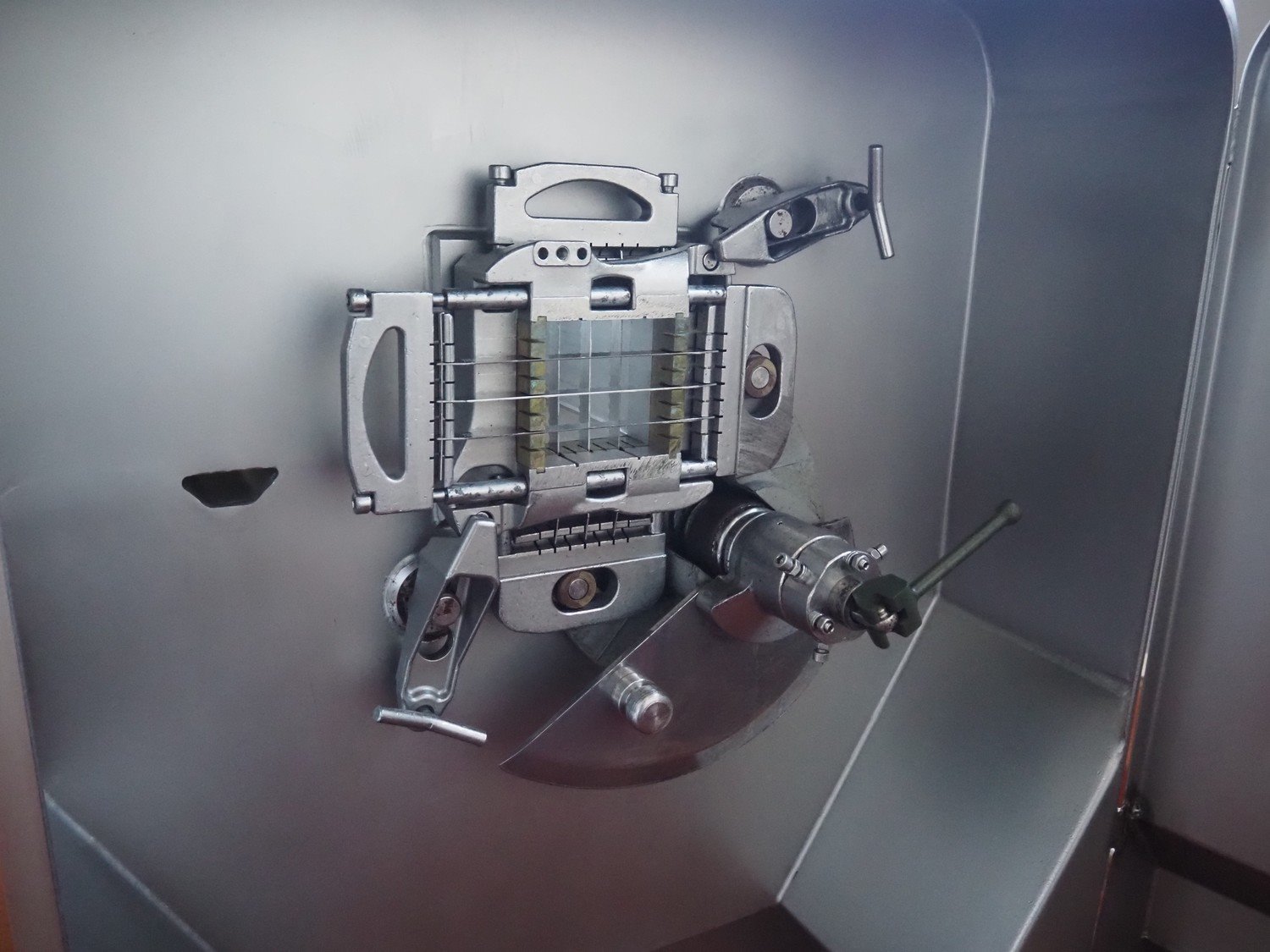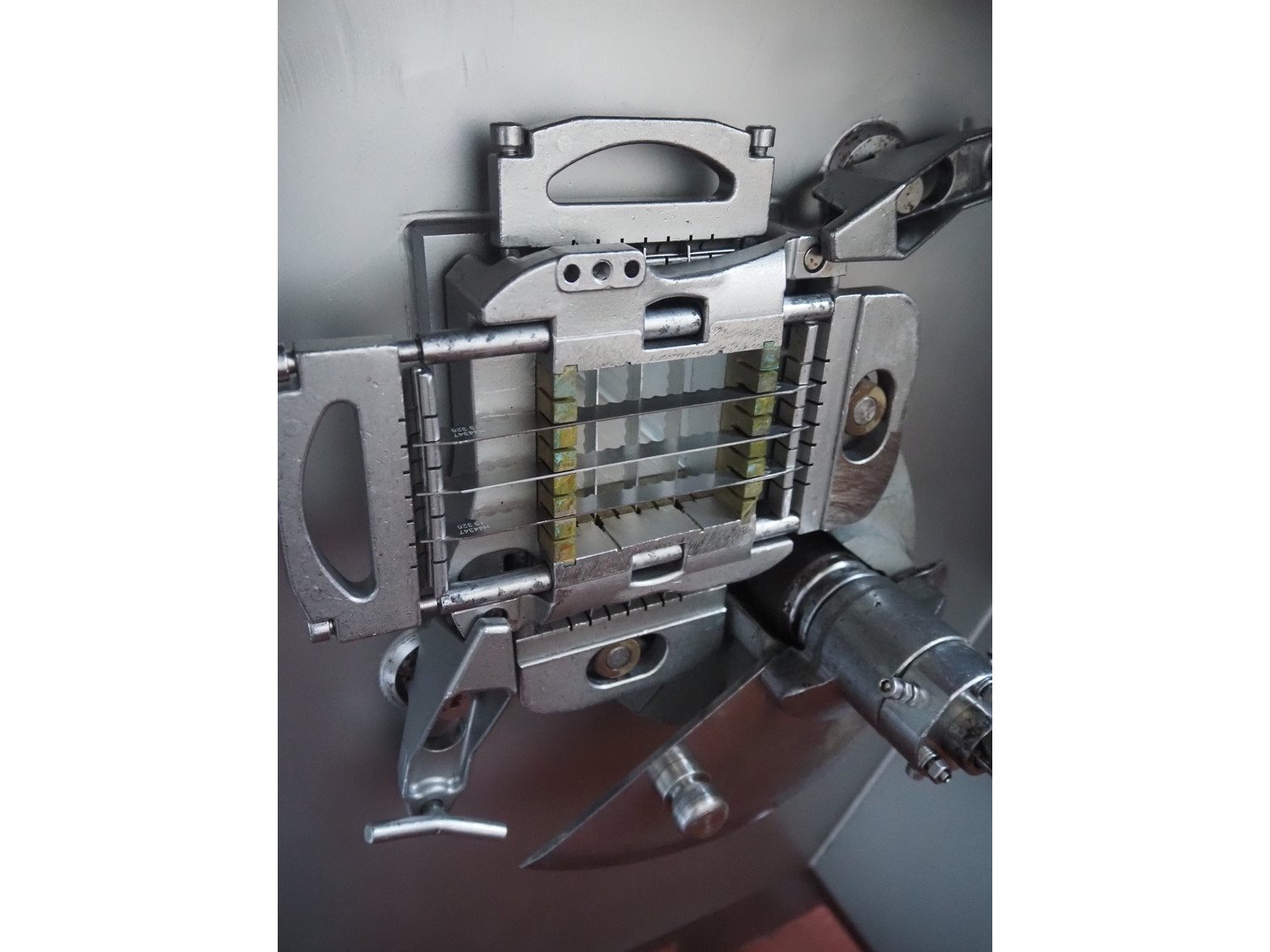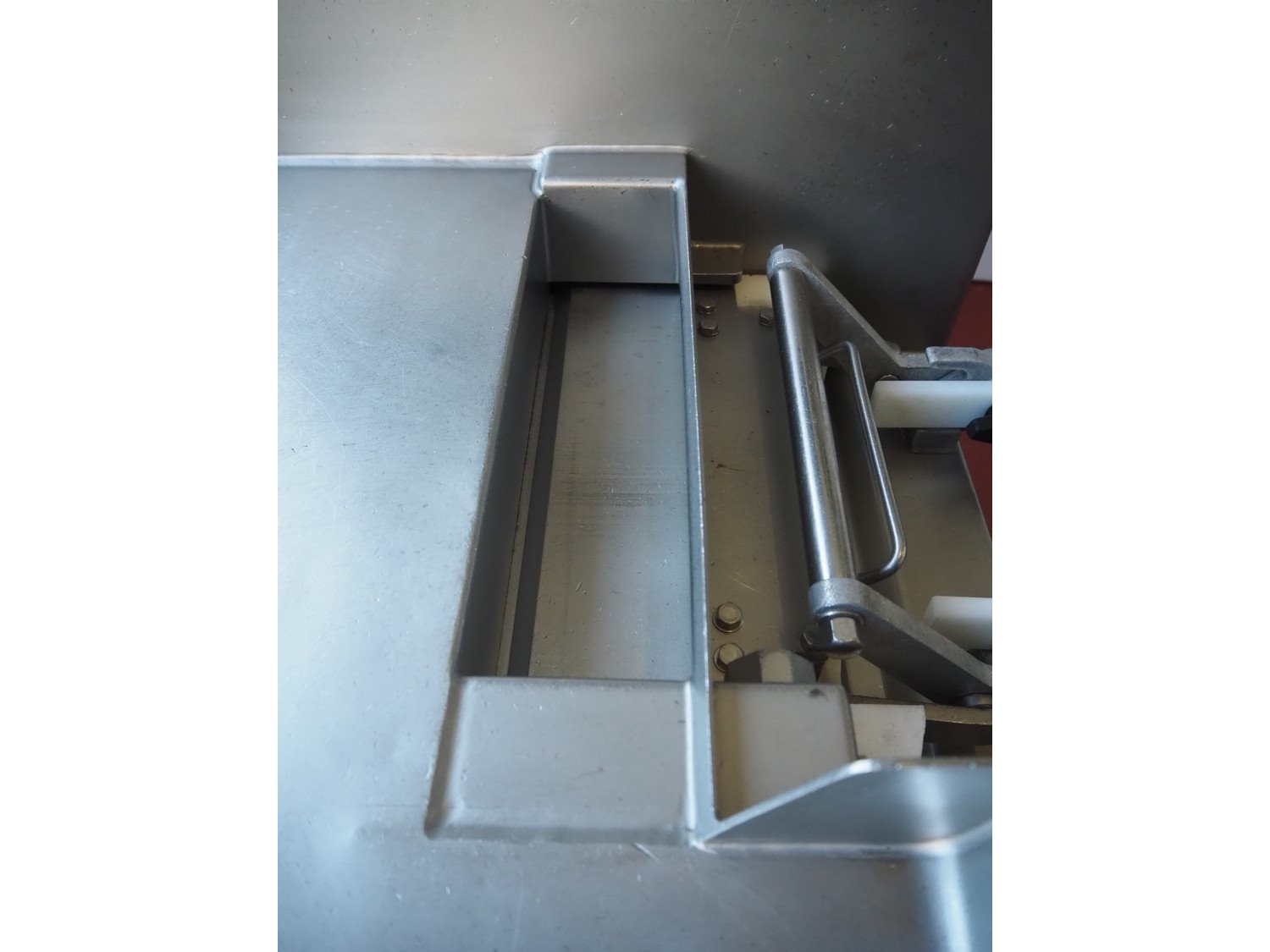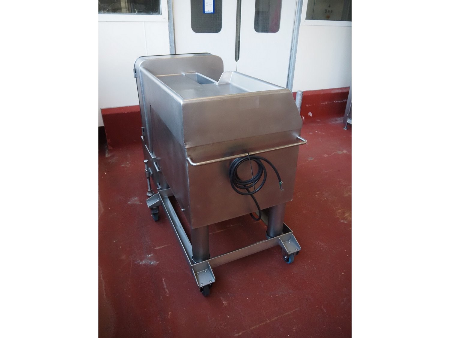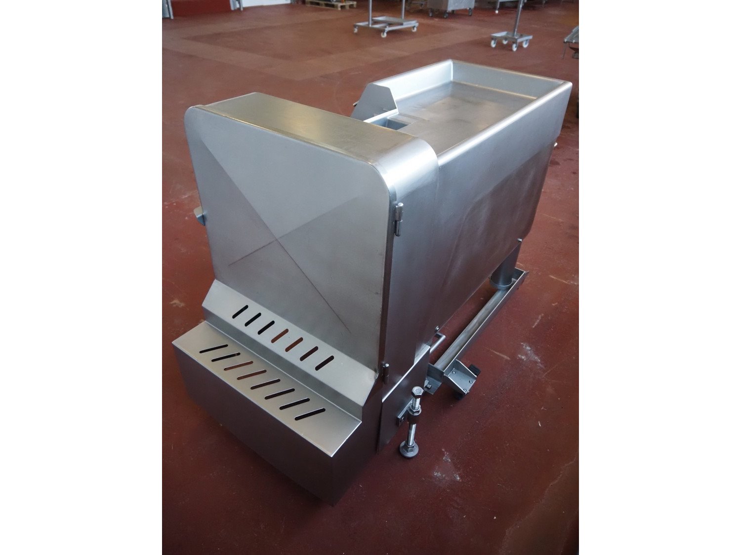 Treif dicer on mobile frame, type: DERBY-CE, 3 x 380 V, 50 Hz, 2.2 kW, capacity: maximum 995 kg per hour, chamber size: 360 mm x 84 mm x 84 mm, cut-off length: 0.5 - 36 mm, knife set: 17 mm x 17 mm, weight: 295 kg, dimensions: 1650 mm x 900 mm x 1200 mm. Kavel locatie: Bunsenstraat 79, 3316 GC Dordrecht, Nederland