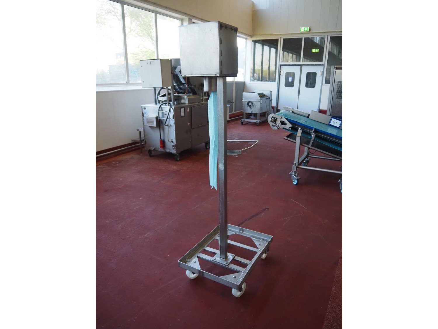 Mobile s/s paper dispenser with waste bag holder, dimensions: 730 mm x 550 mm x 1300 mm. Kavel locatie: Bunsenstraat 79, 3316 GC Dordrecht, Nederland