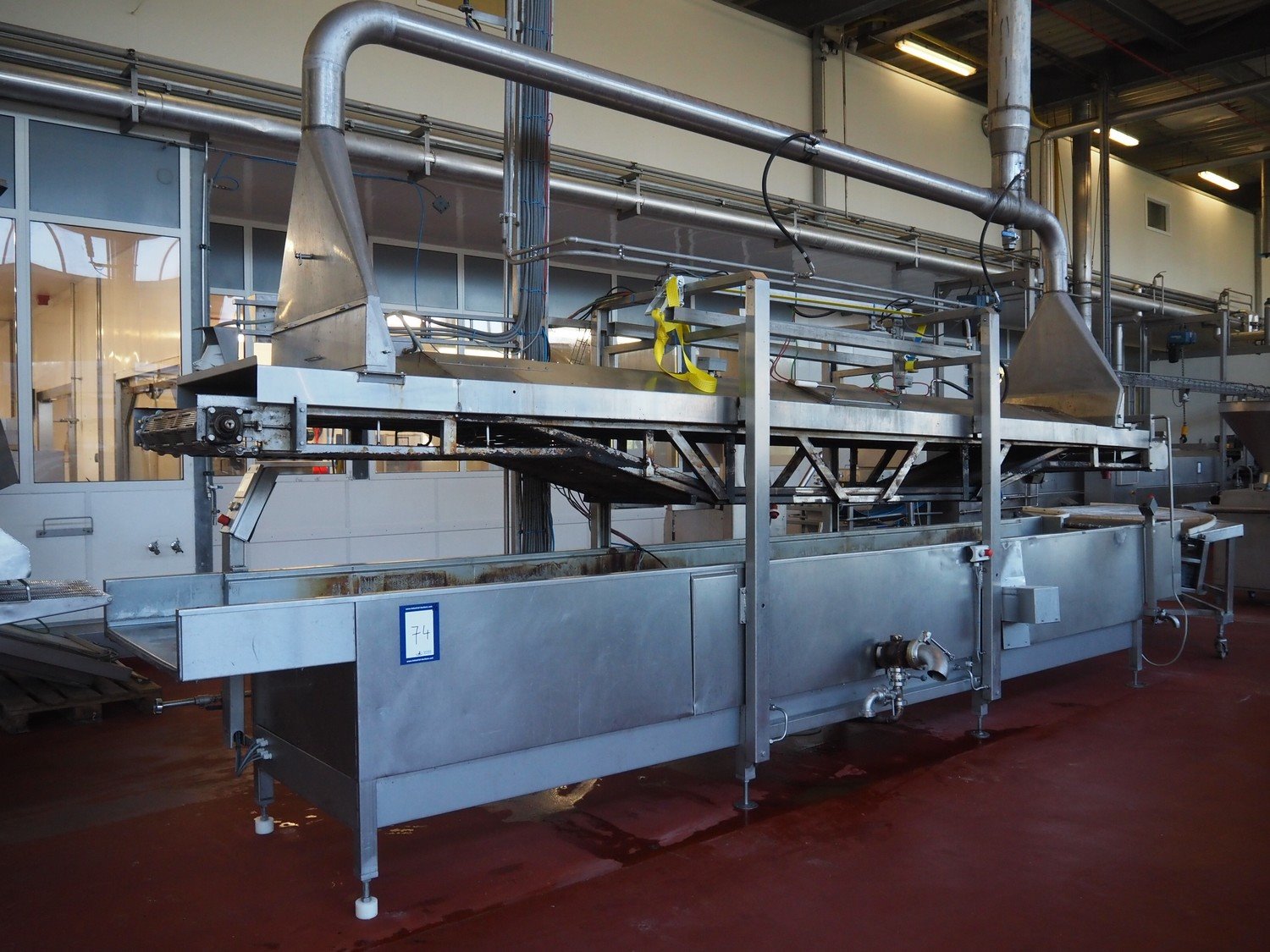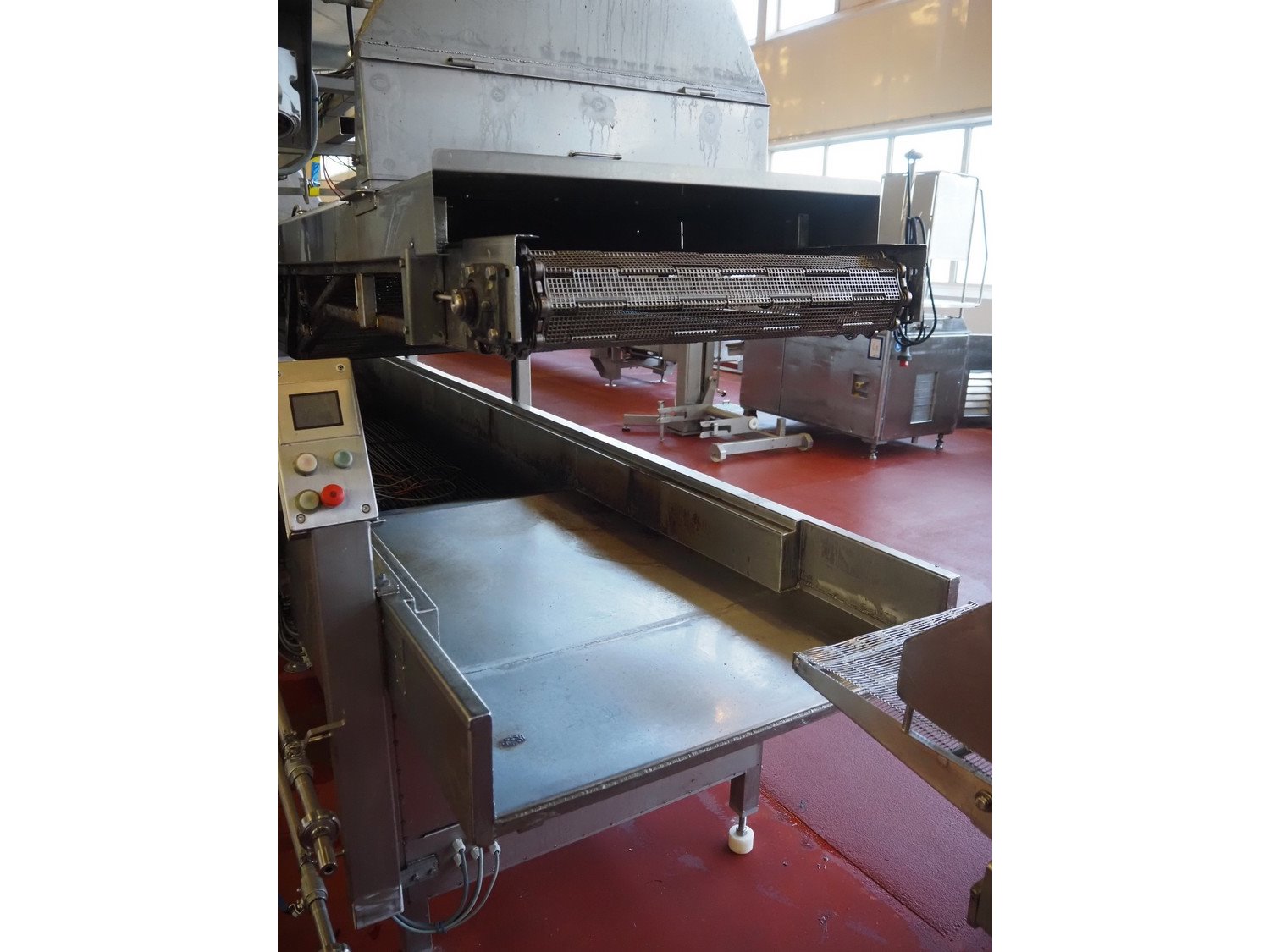 Fryer, s/s belt, belt width: 700 mm, total dimensions: 6700 mm x 1600 mm x 2400 mm. Including switch cabinet. Kavel locatie: Bunsenstraat 79, 3316 GC Dordrecht, Nederland