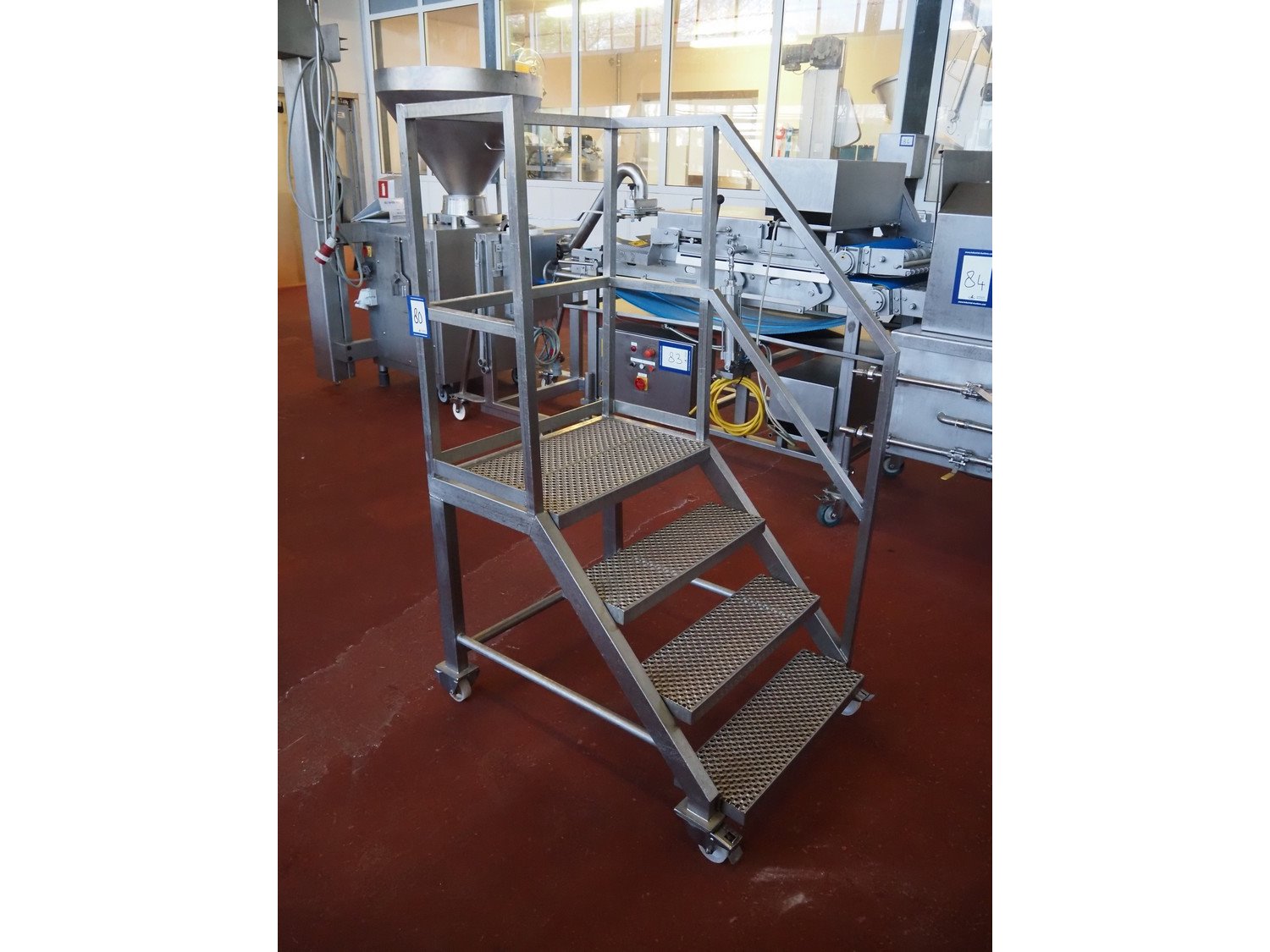 S/s mobile platform, 3 steps, total dimensions: 1000 mm x 730 mm x 1620 mm. Kavel locatie: Bunsenstraat 79, 3316 GC Dordrecht, Nederland