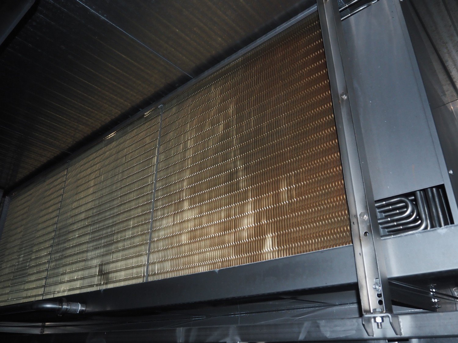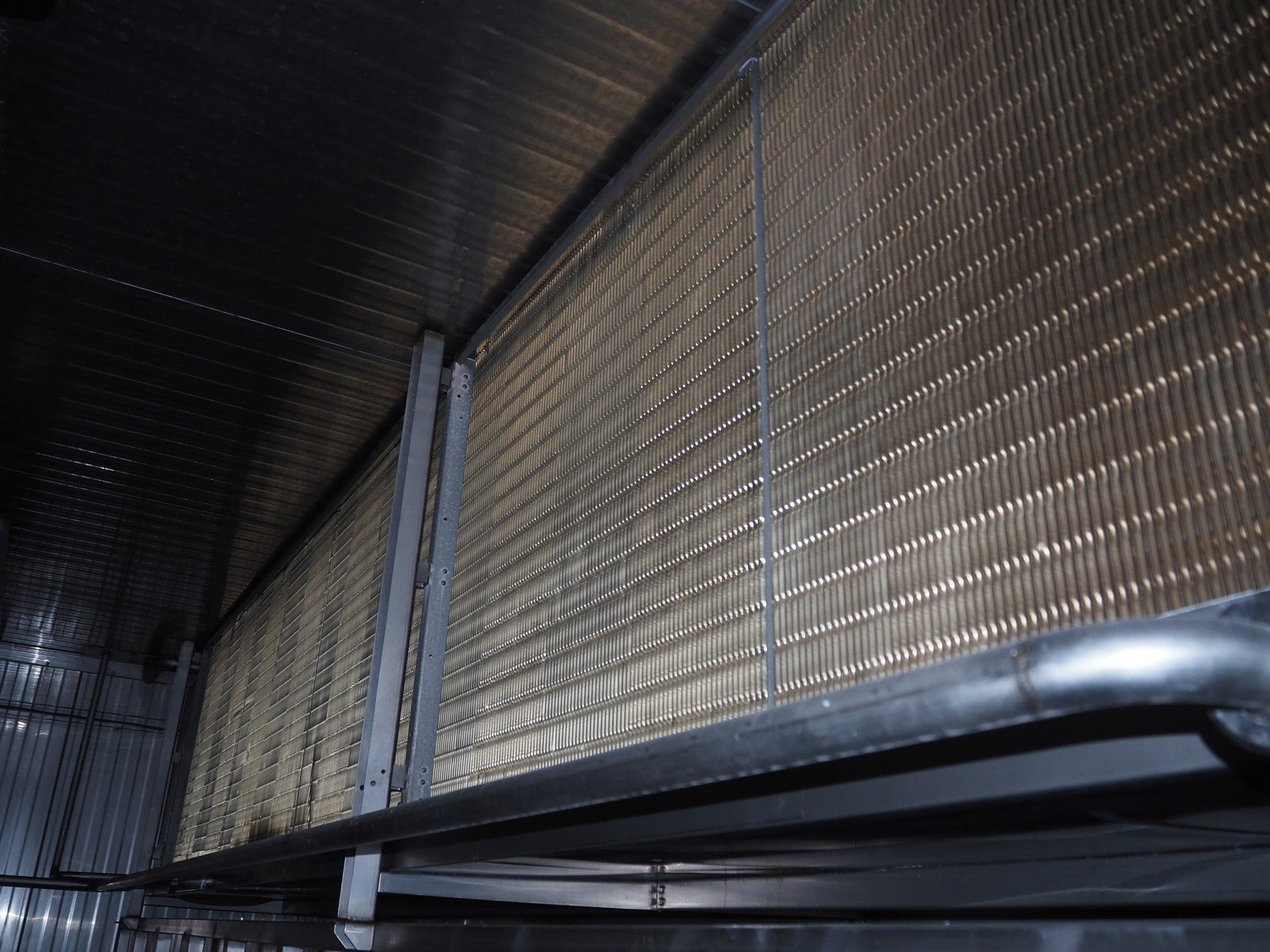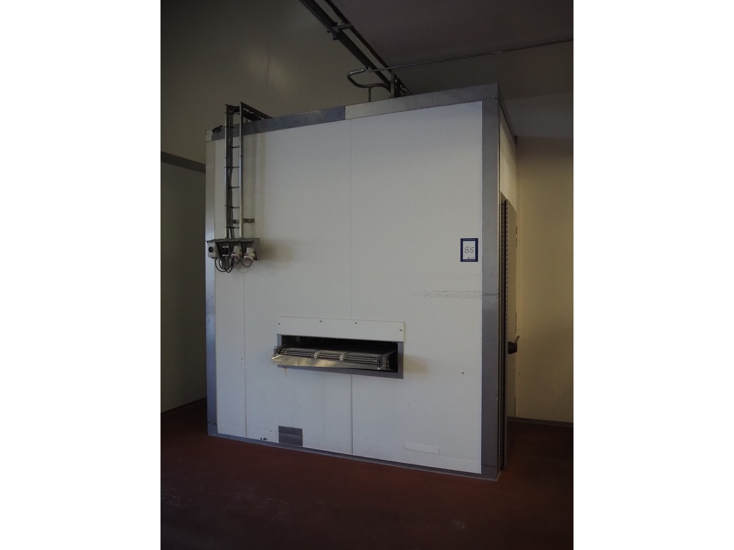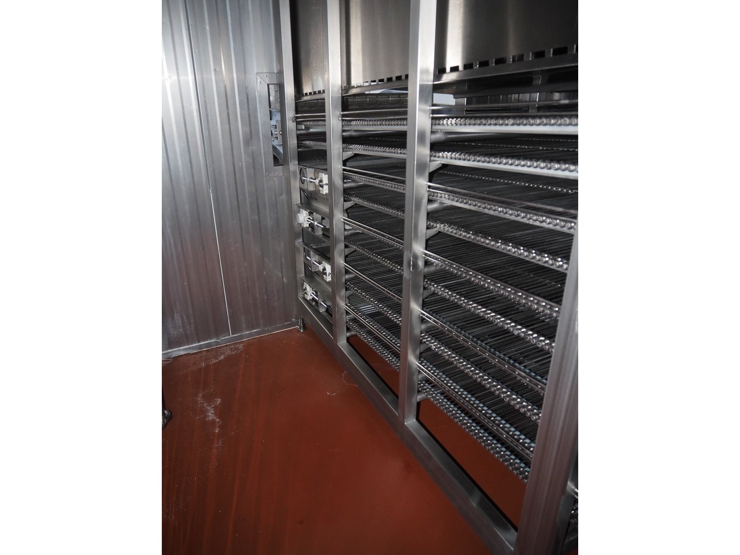 Koppens / GEA Goedhart B.V. cooling tunnel, type: KT5S 7500 / 1000, machine number: KT3S 6000 / 1000 - 192, 380 V, 3 Ph, 50 Hz, 5 floors, s/s mesh belt, belt width: 1000 mm, GEA Goedhart B.V. evaporator, type: LLK.s 411 m², manufacturing number: PJV100282, year of construction: 2010, volume: 135 dm³, refrigerant: NH3, weight: 770 kg, working pressure: 22 bar, test pressure: 32 bar, total dimensions including cooling panels and s/s door: 8100 mm x 3000 mm x 3300 mm. Kavel locatie: Bunsenstraat 79, 3316 GC Dordrecht, Nederland