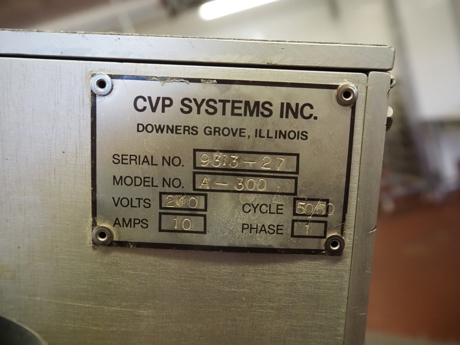 CVP SYSTEMS INC mobile modified atmosphere packaging machine, model number: A-300, serial number: 9313-27, 240 V, 1 Ph, 50/60 Hz, 10 A, seal length: 1400 mm, total dimensions: 1500 mm x 1150 mm x 1950 mm. Kavel locatie: Bunsenstraat 79, 3316 GC Dordrecht, Nederland