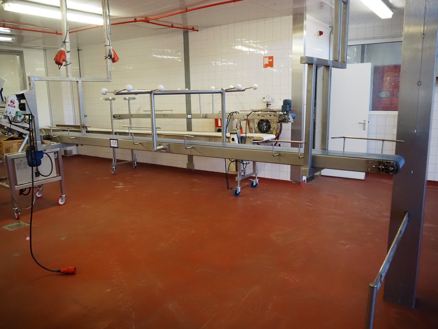 Transport belt, s/s frame, plastic belt, belt width: 170 mm, total dimensions: 3100 mm x 1100 mm x 500 mm. Kavel locatie: Bunsenstraat 79, 3316 GC Dordrecht, Nederland