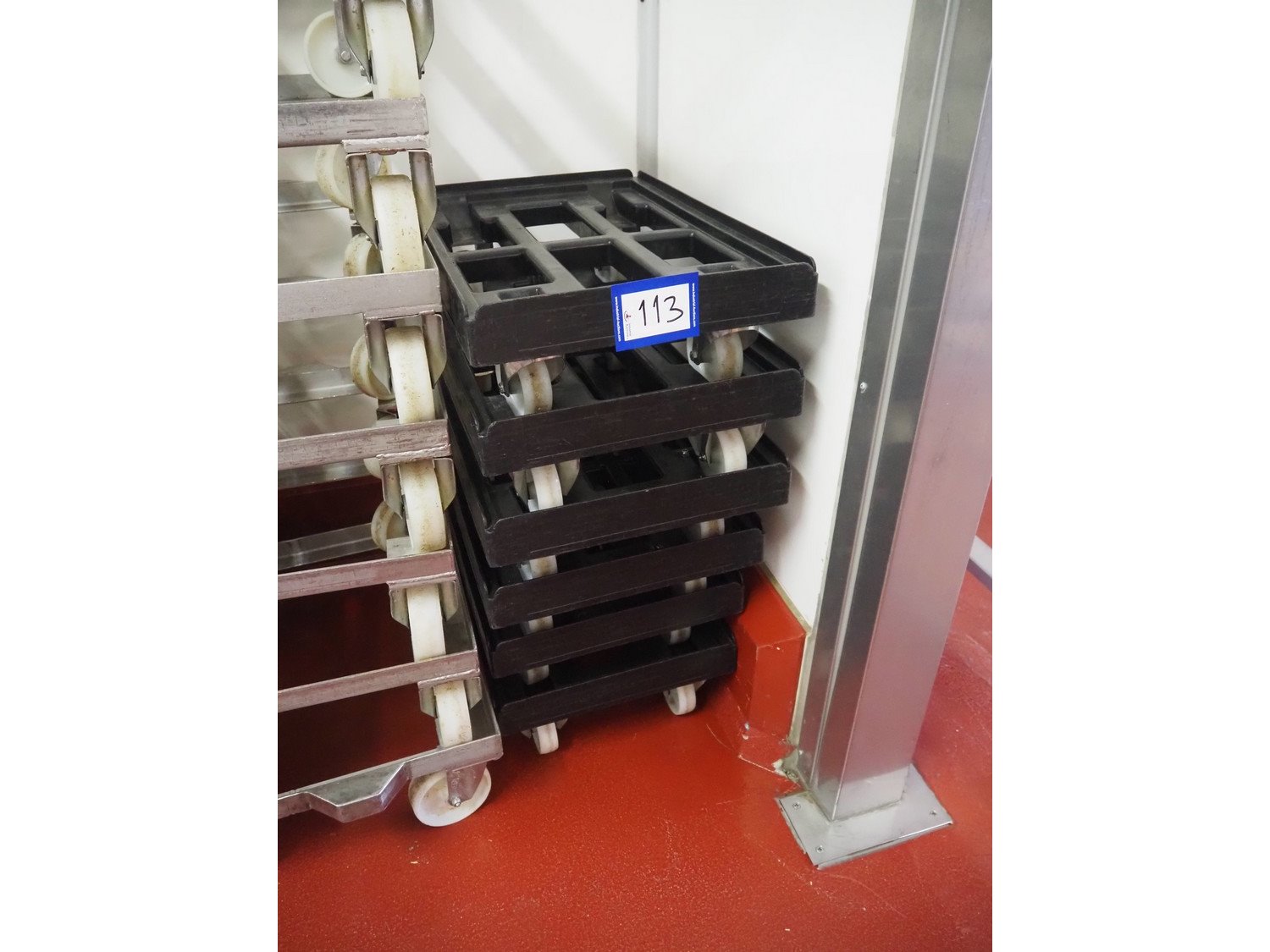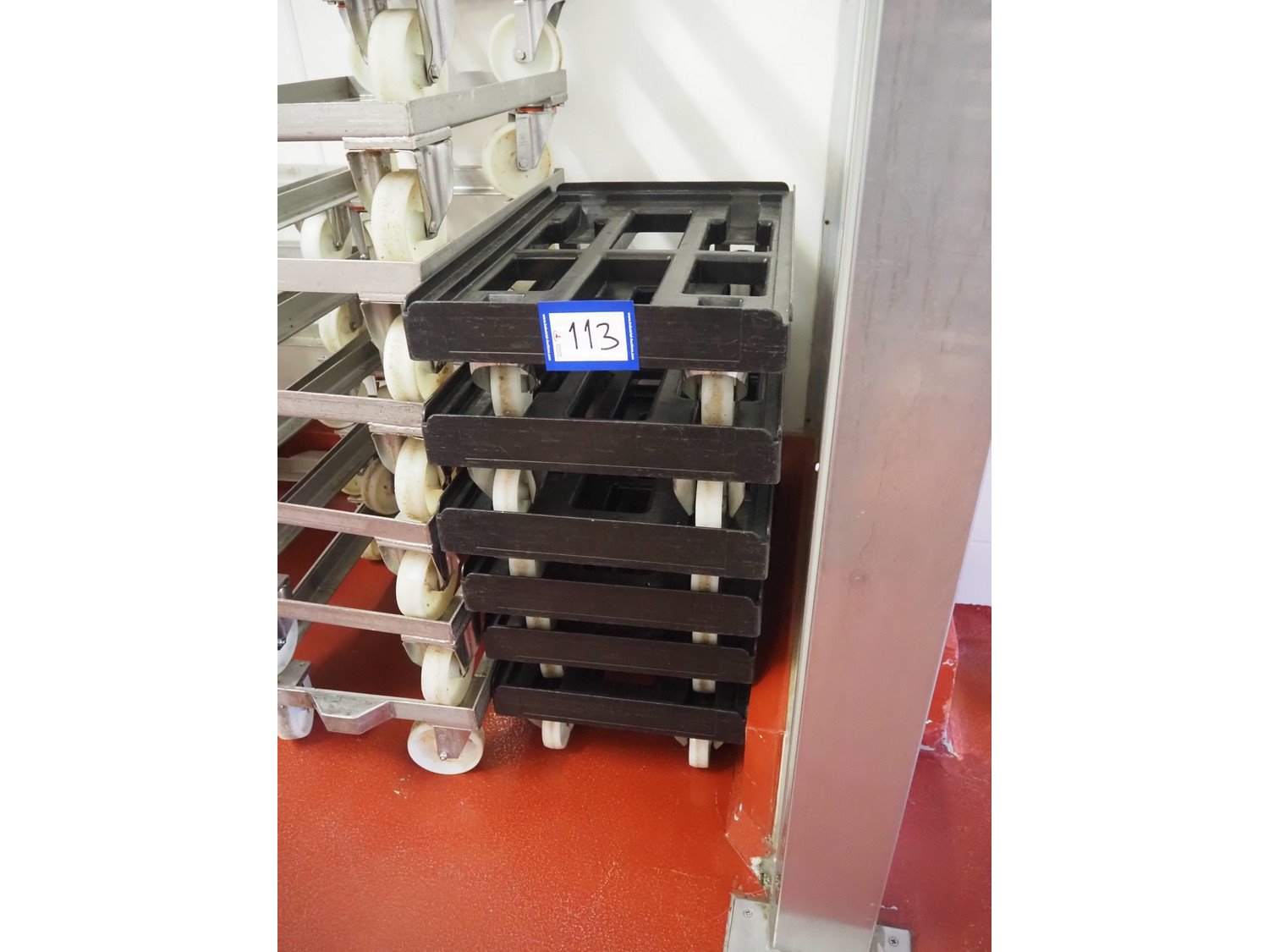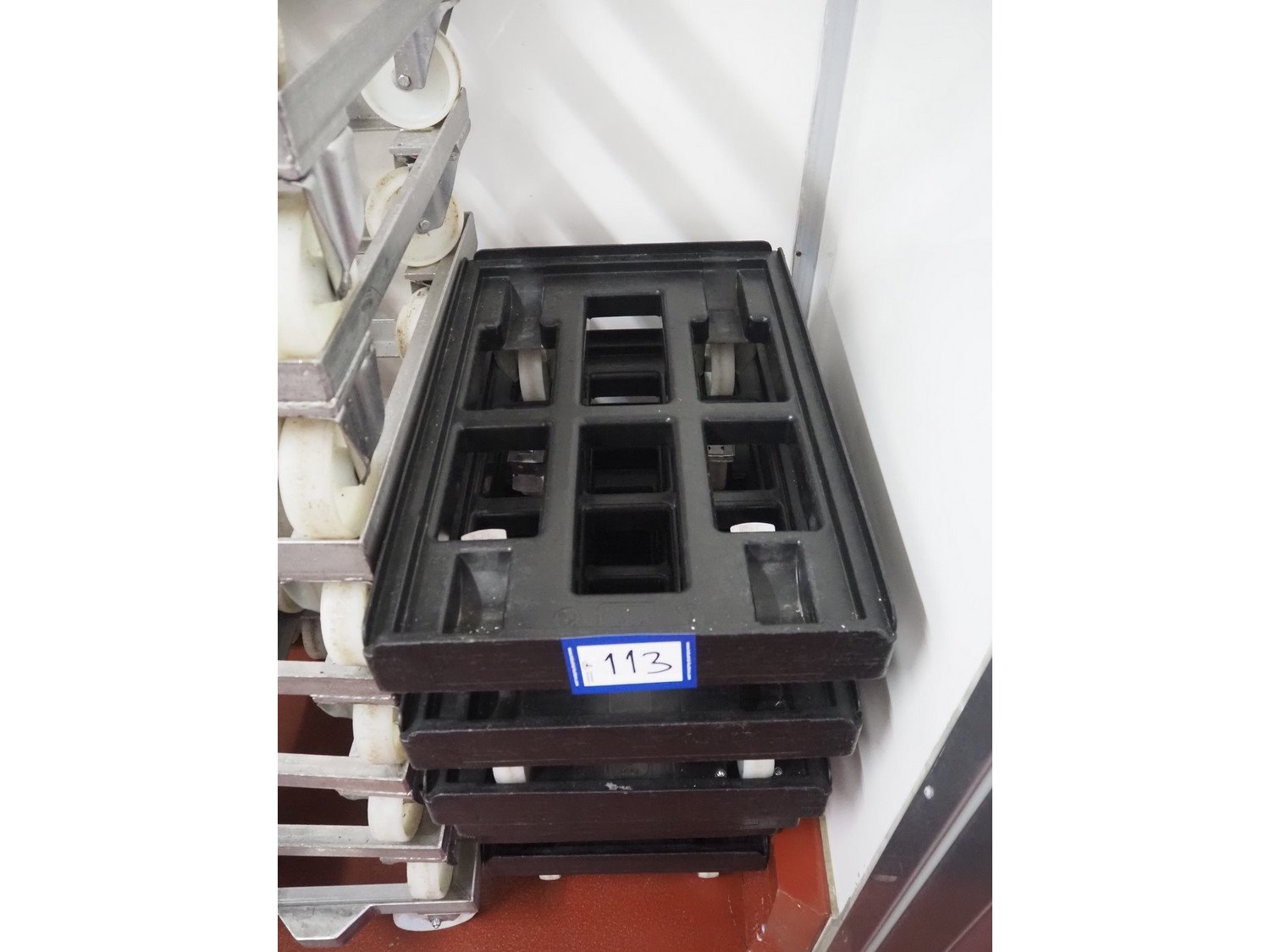 6 plastic rollies, dimensions: (6x) 610 mm x 410 mm x 150 mm. Kavel locatie: Bunsenstraat 79, 3316 GC Dordrecht, Nederland