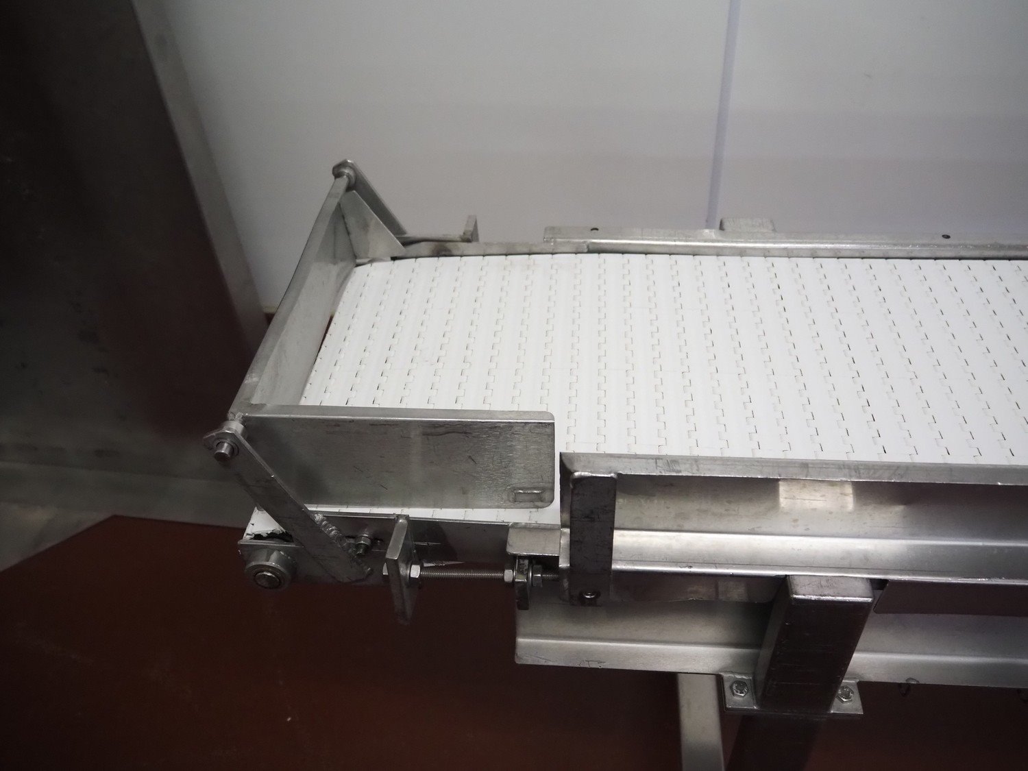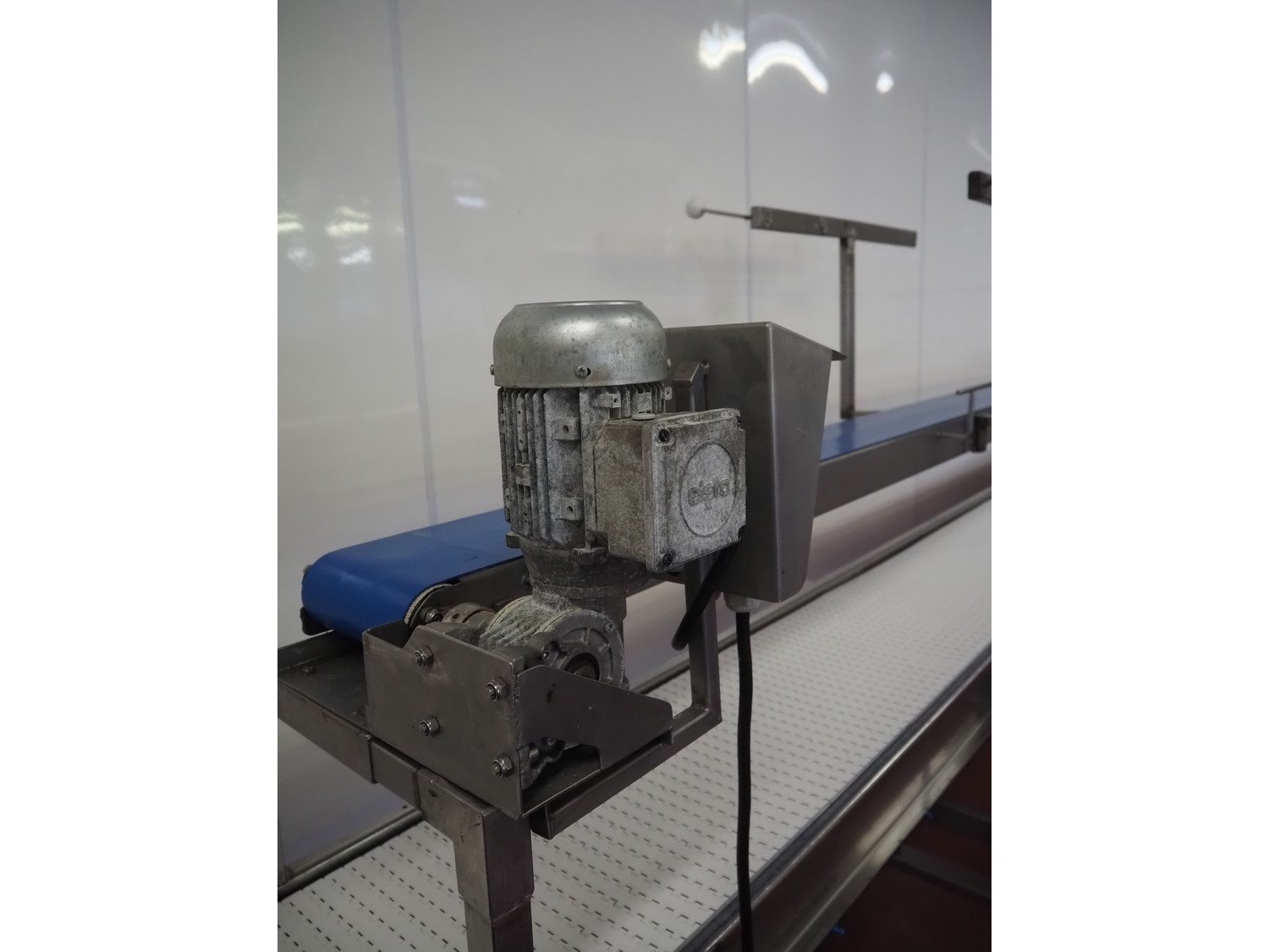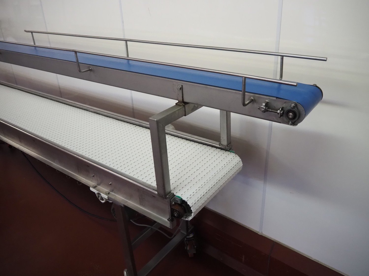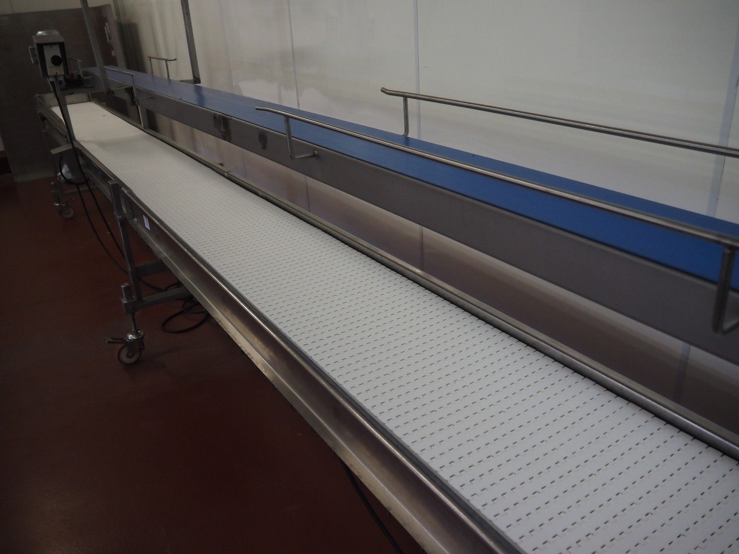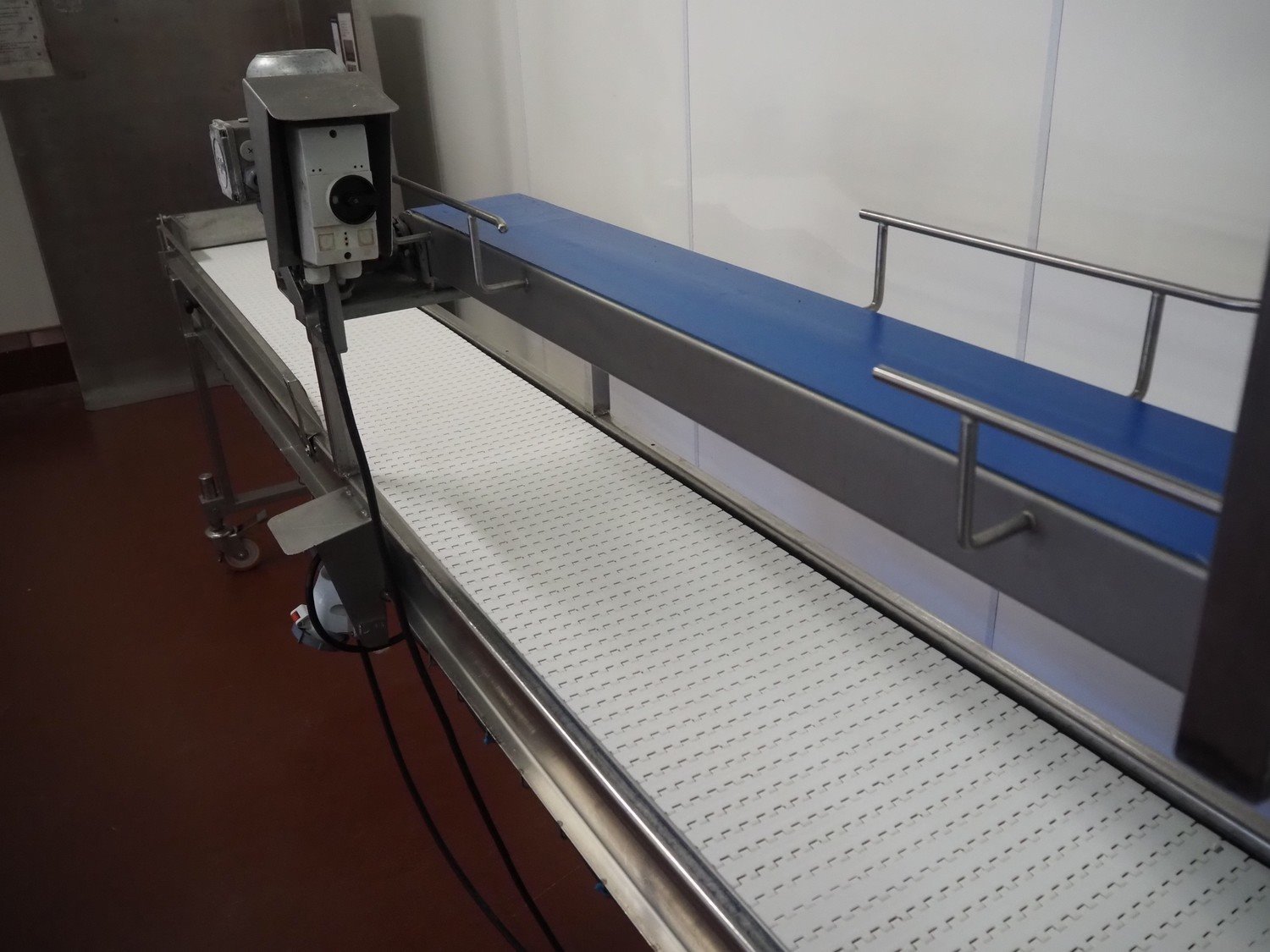 Koppens mobile transport belt, type: TG 3400/400, machine number: TG 3400/400-895, 380 V, 3 Ph, 50 Hz, 0.47 A, 0.09 kW, s/s frame, plastic belt, belt width: 400 mm, including upper belt, belt width: 170 mm, total dimensions: 6800 mm x 700 mm x 1800 mm. Kavel locatie: Bunsenstraat 79, 3316 GC Dordrecht, Nederland