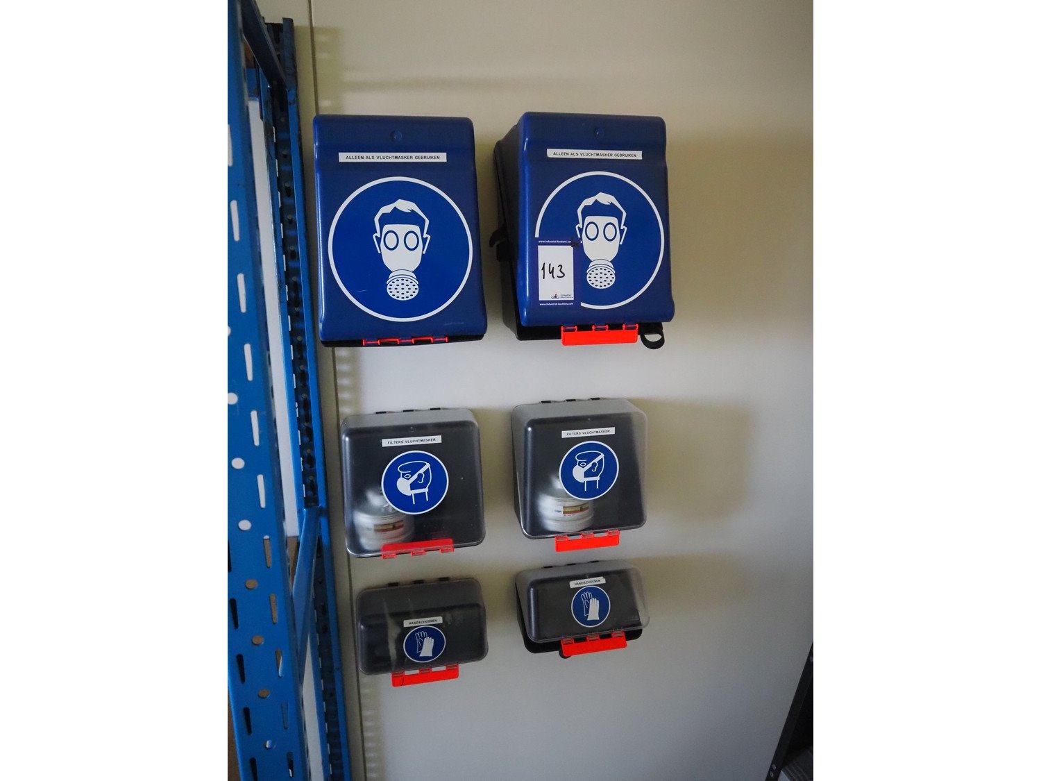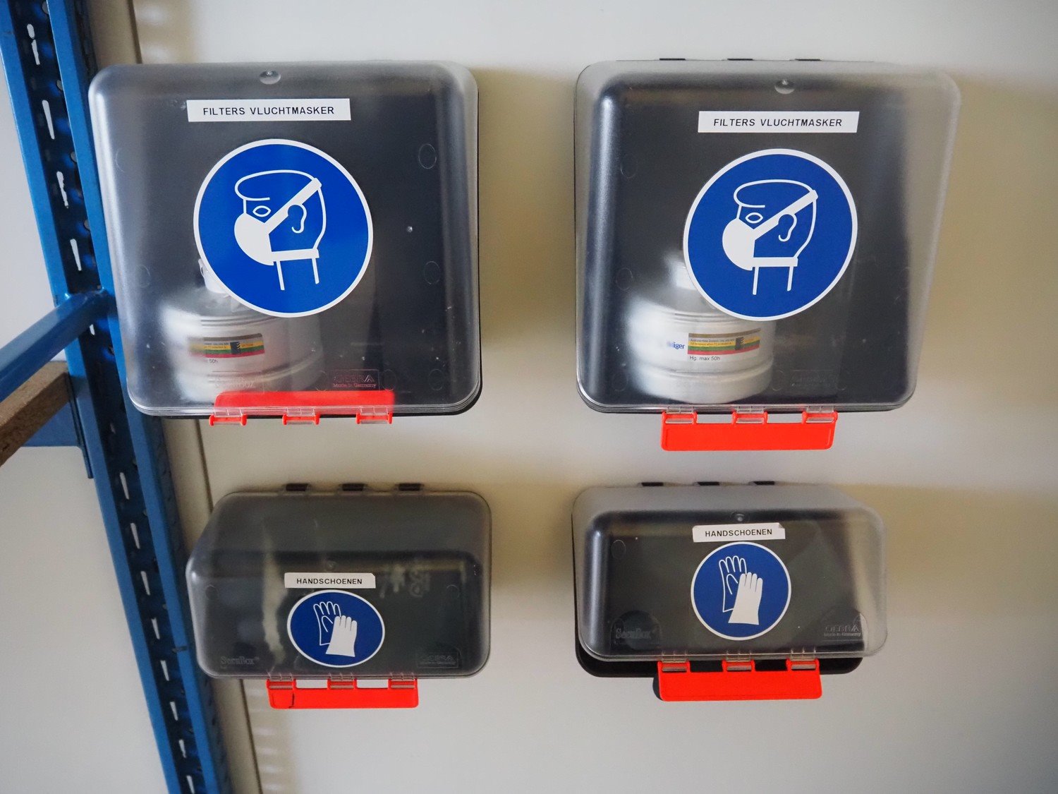 6 pcs. Gebra Secubox safety boxes with safety equipment, dimensions: (2x) 250 mm x 220 mm x 320 mm / (2x) 240 mm x 130 mm x 240 mm and (2x) 240 mm x 120 mm x 120 mm. Kavel locatie: Bunsenstraat 79, 3316 GC Dordrecht, Nederland