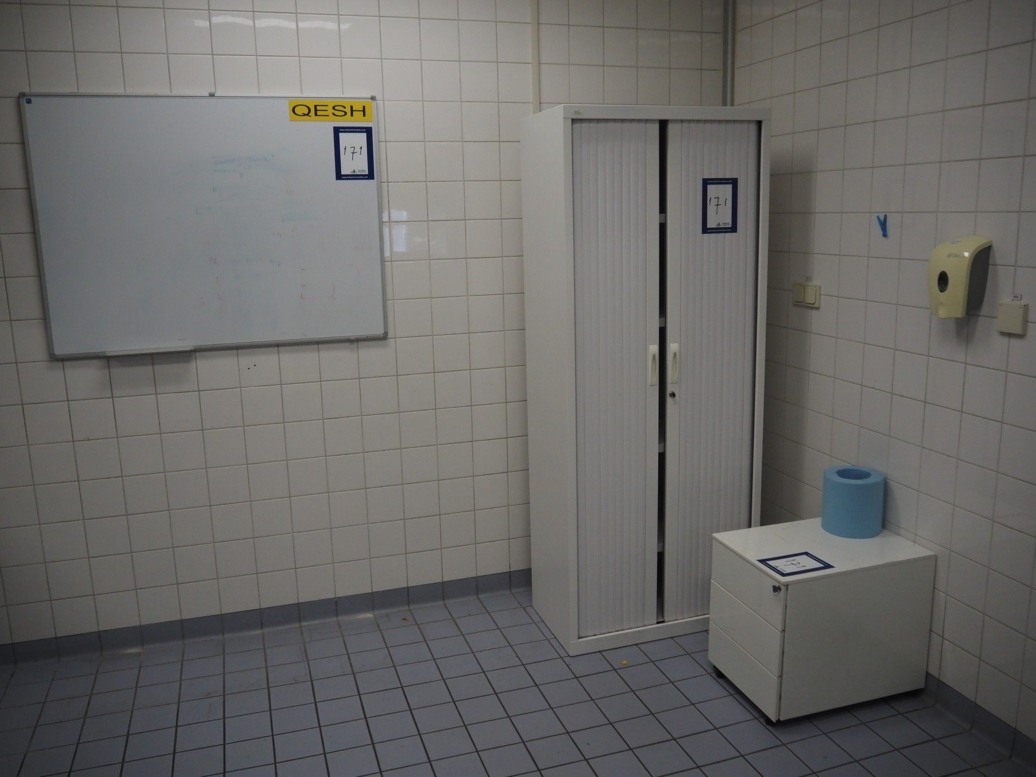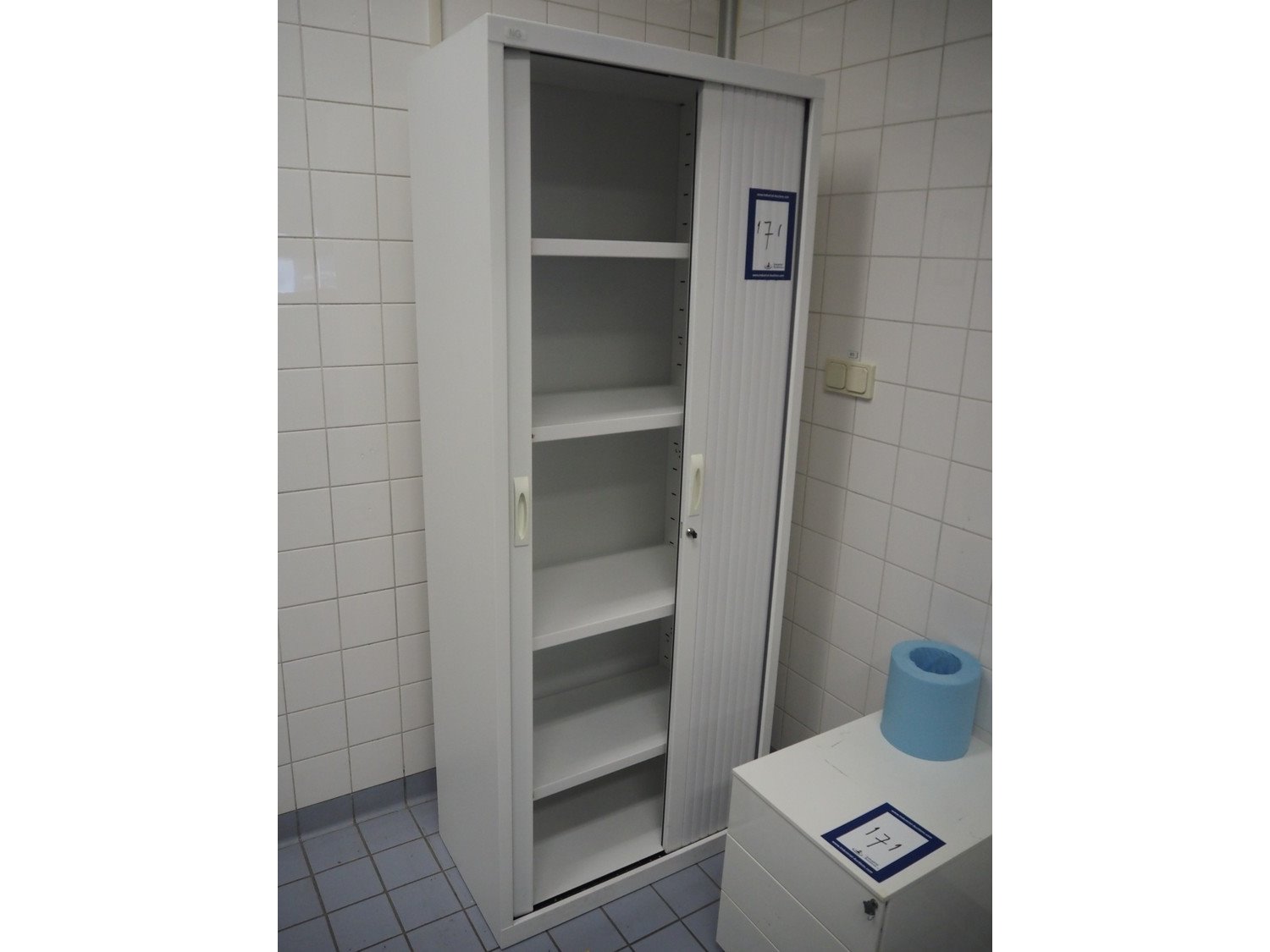 Office equipment consisting of office cabinets, dimensions: 800 mm x 450 mm x 1980 mm and 580 mm x 420 mm x 530 mm, whiteboard, dimensions: 1200 mm x 900 mm. Kavel locatie: Bunsenstraat 79, 3316 GC Dordrecht, Nederland