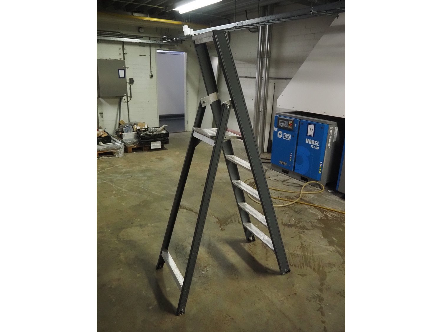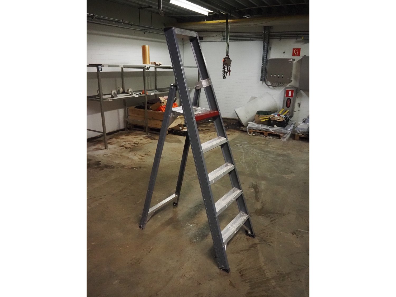 Altrex stairs, 5 steps, working height: 1200 mm, total dimensions: 1000 mm x 550 mm x 1800 mm. Kavel locatie: Bunsenstraat 79, 3316 GC Dordrecht, Nederland
