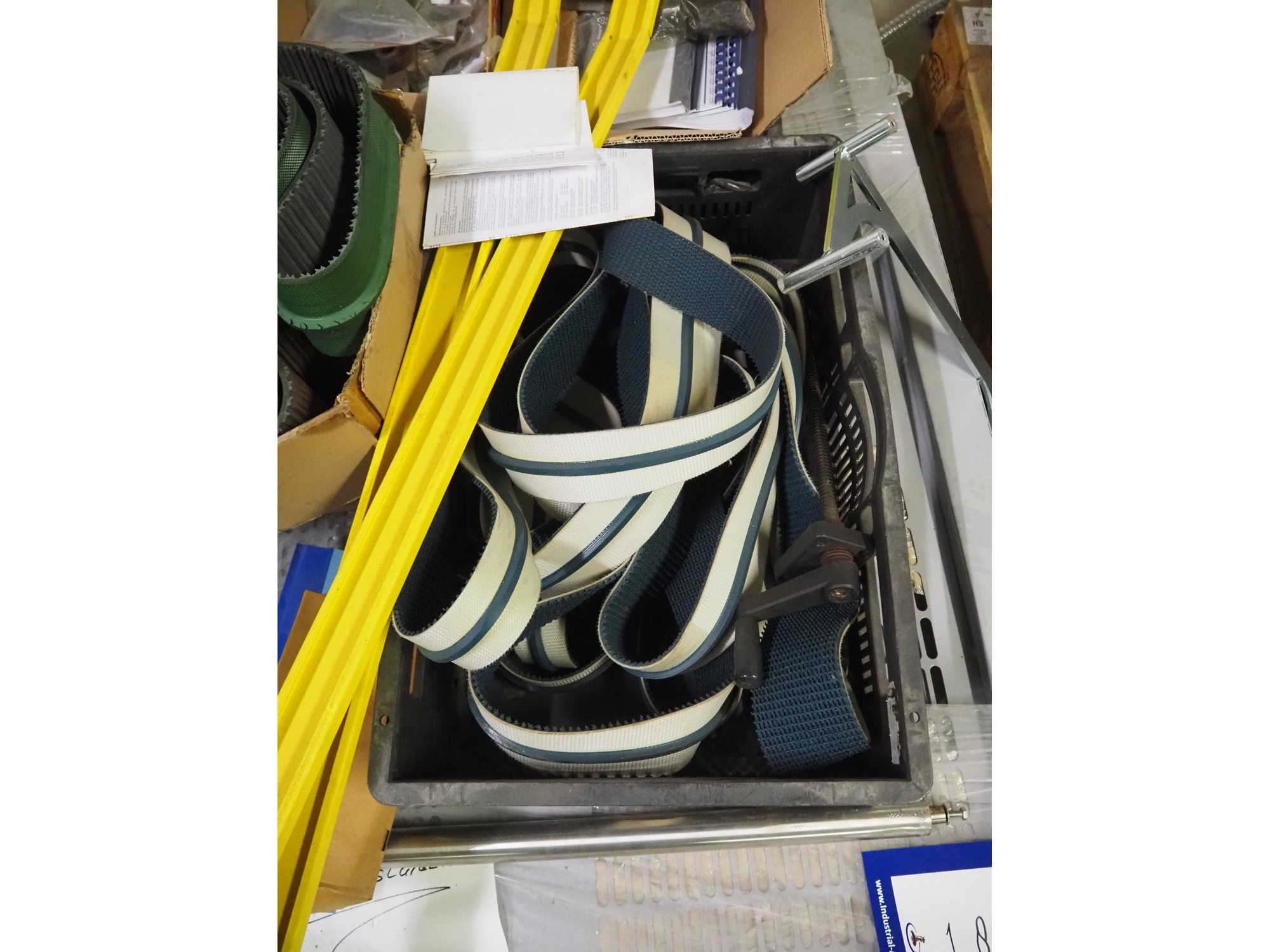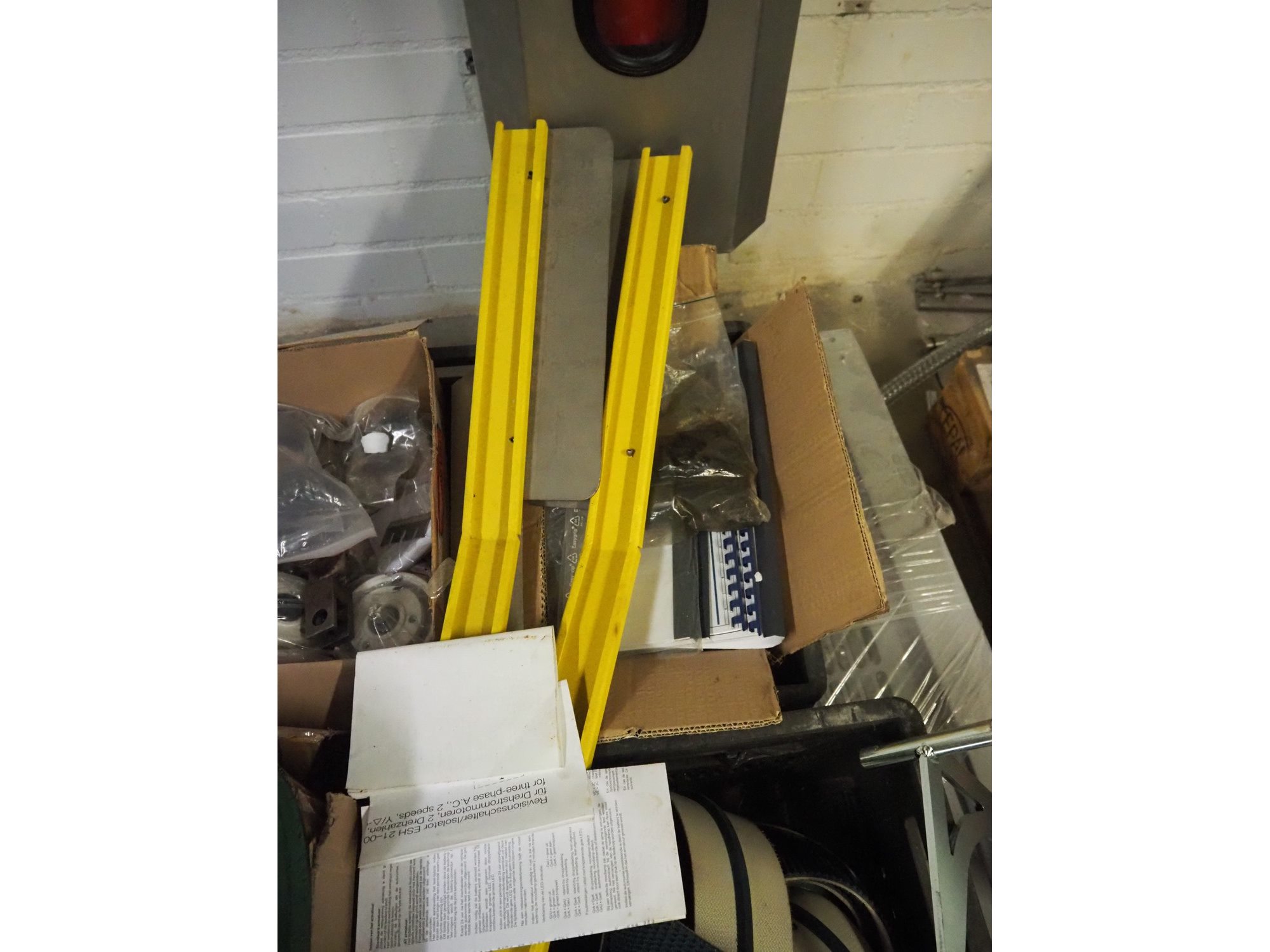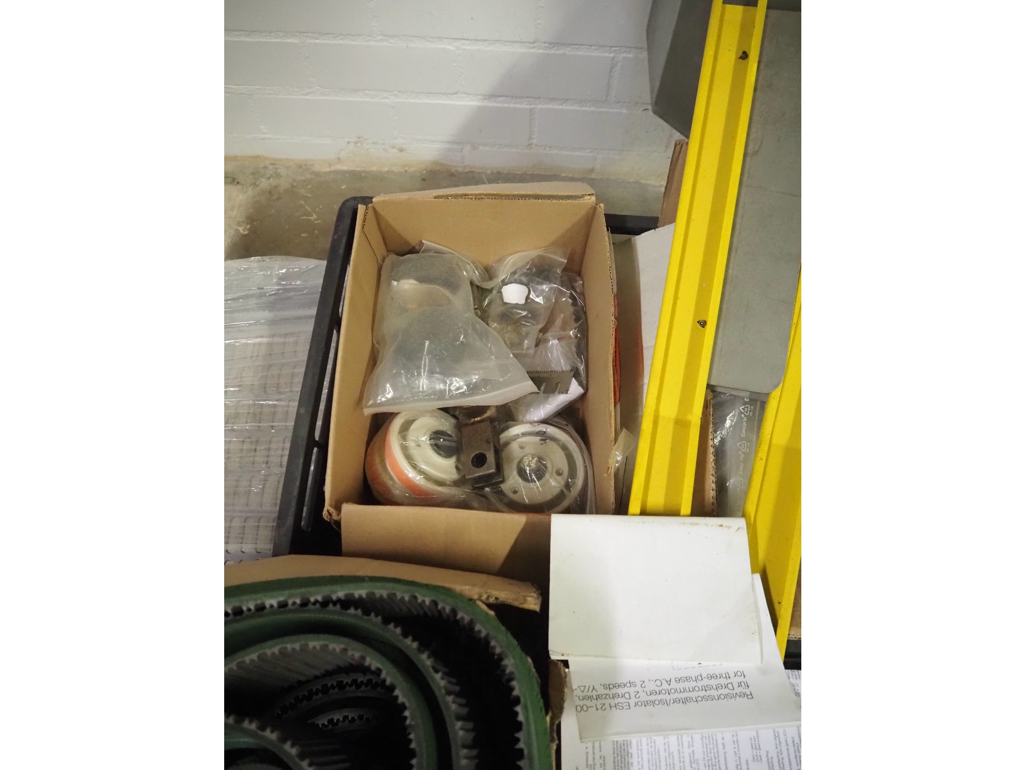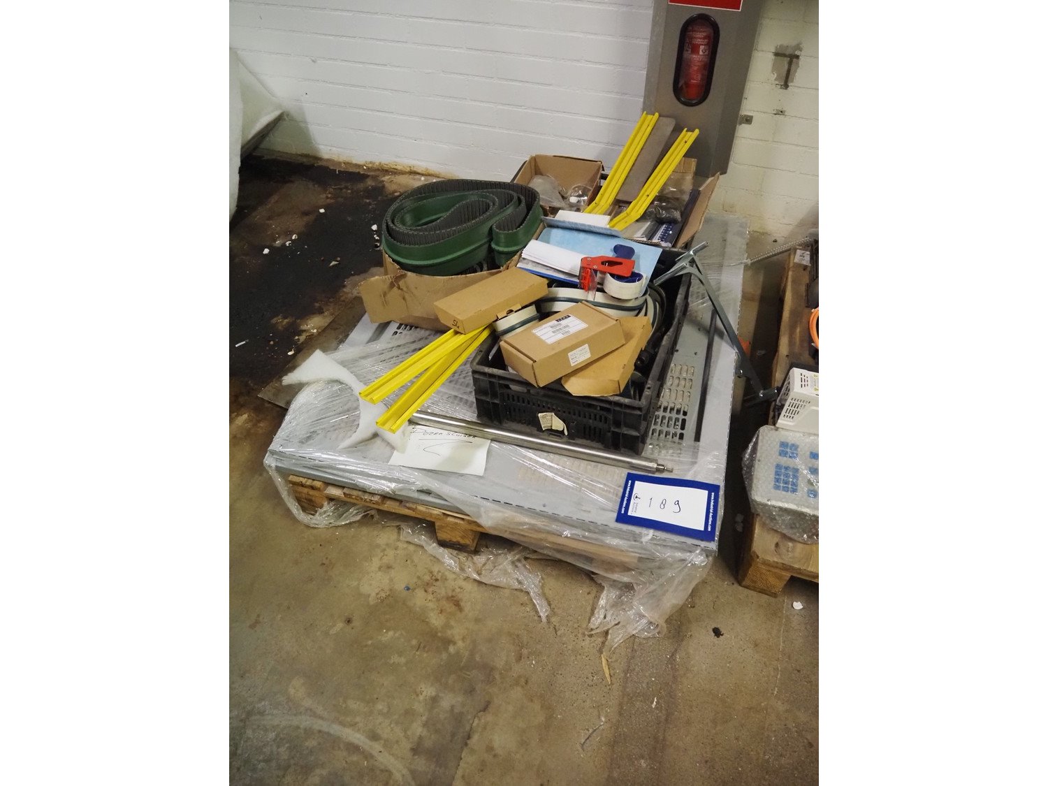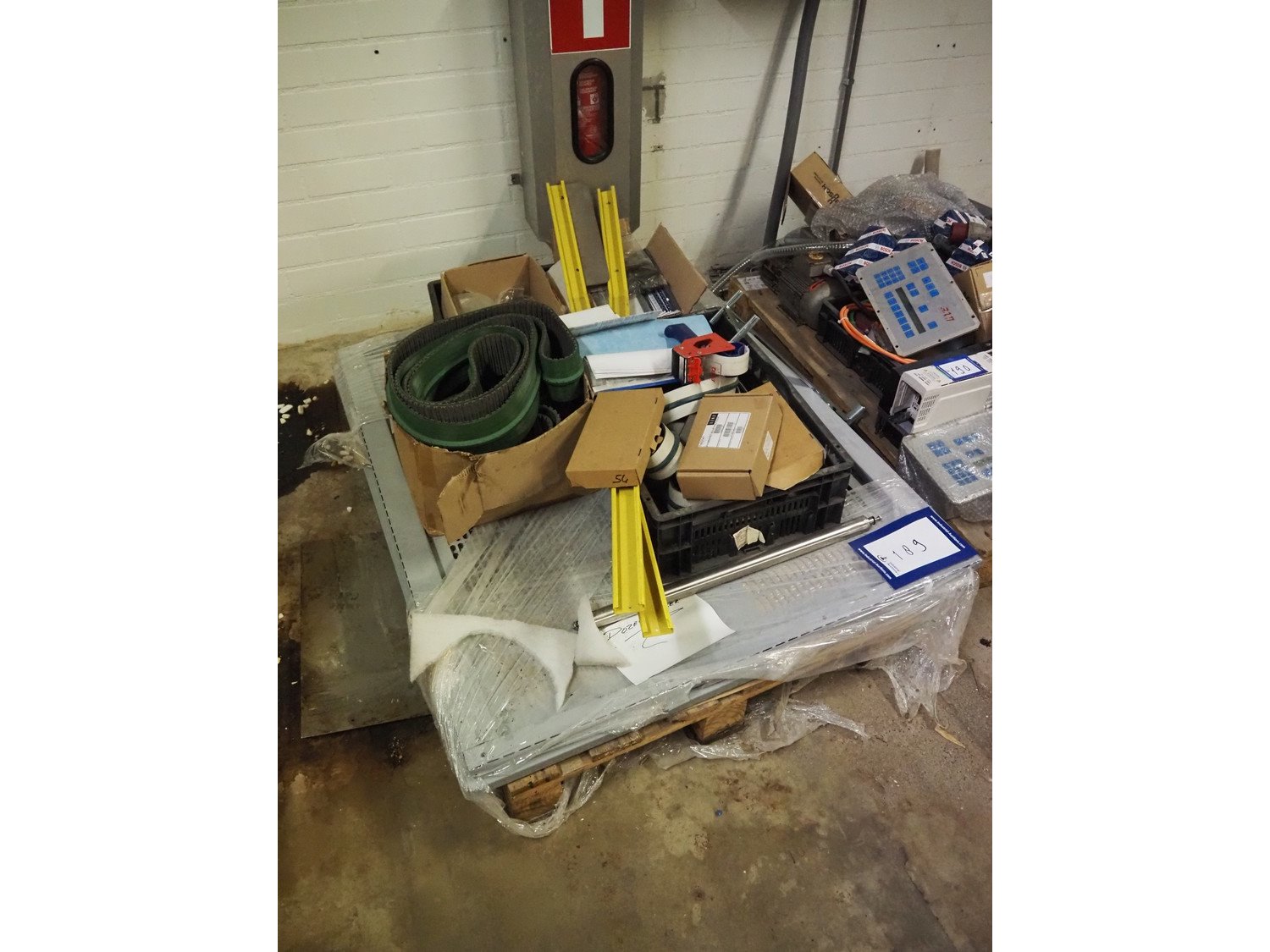 Pallet with parts for SIAT box closing machine, dimensions pallet: 1200 mm x 1000 mm x 400 mm. Kavel locatie: Bunsenstraat 79, 3316 GC Dordrecht, Nederland