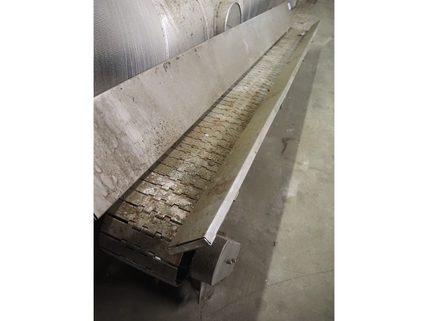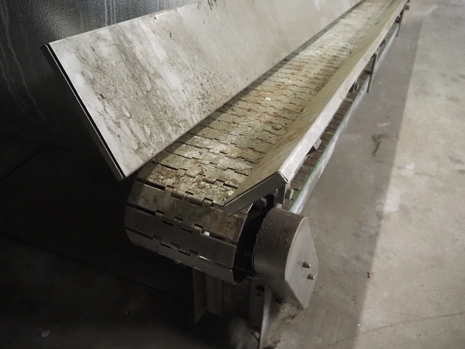 S/s transport belt, s/s frame, s/s belt, belt width: 190 mm, total dimensions: 2600 mm x 350 mm x 800 mm. Kavel locatie: Bunsenstraat 79, 3316 GC Dordrecht, Nederland