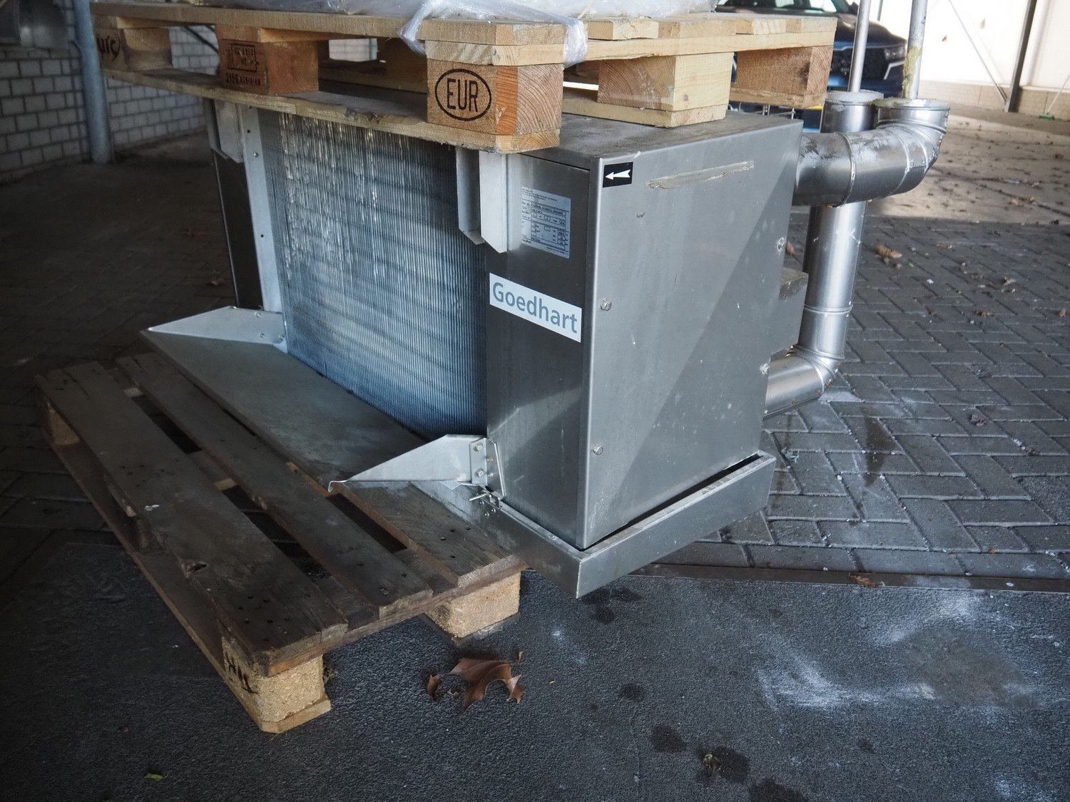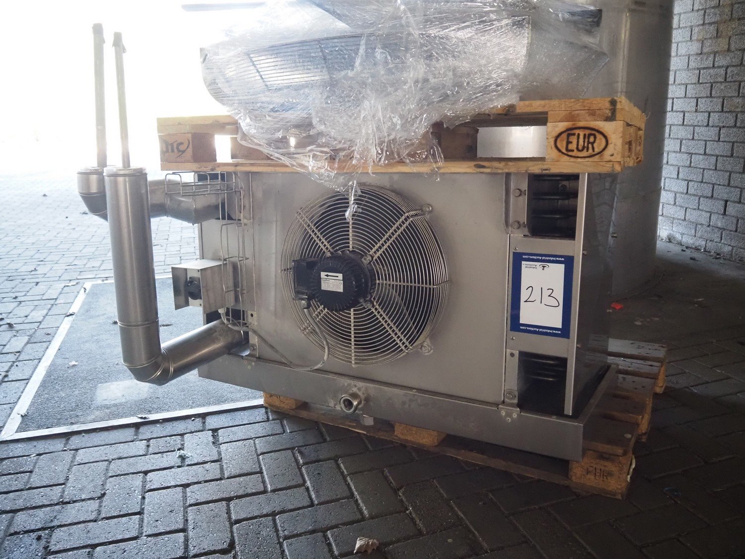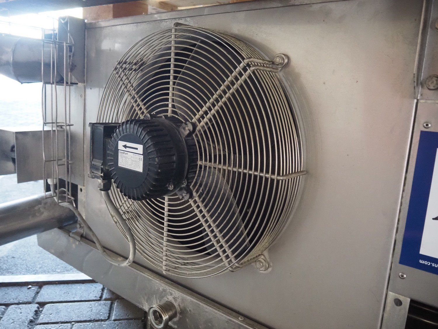 GEA Goedhart B.V. s/s evaporator, type: VRB 41457 P, year of construction: 2010, volume: 8 dm³, PS: 22 bar, PT: 32 bar, fluid: NH3 pump, weight: 70 kg, 1 fan, dimensions: 1300 mm x 600 mm x 700 mm. Kavel locatie: Bunsenstraat 79, 3316 GC Dordrecht, Nederland
