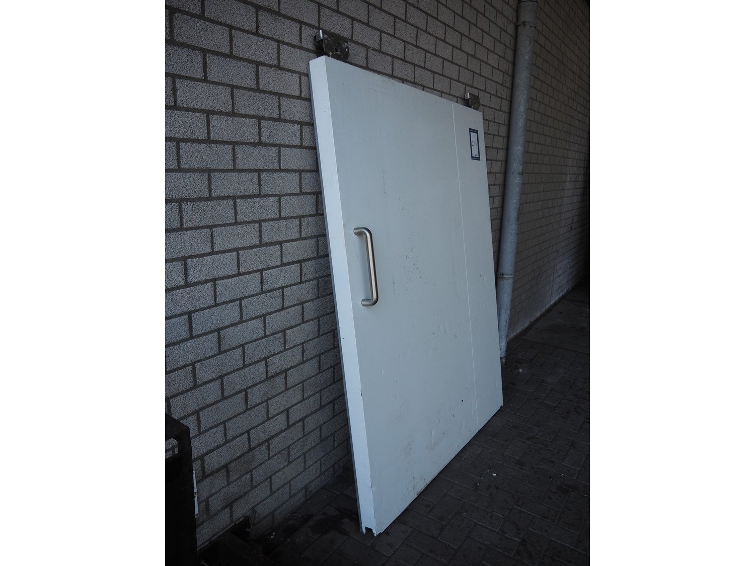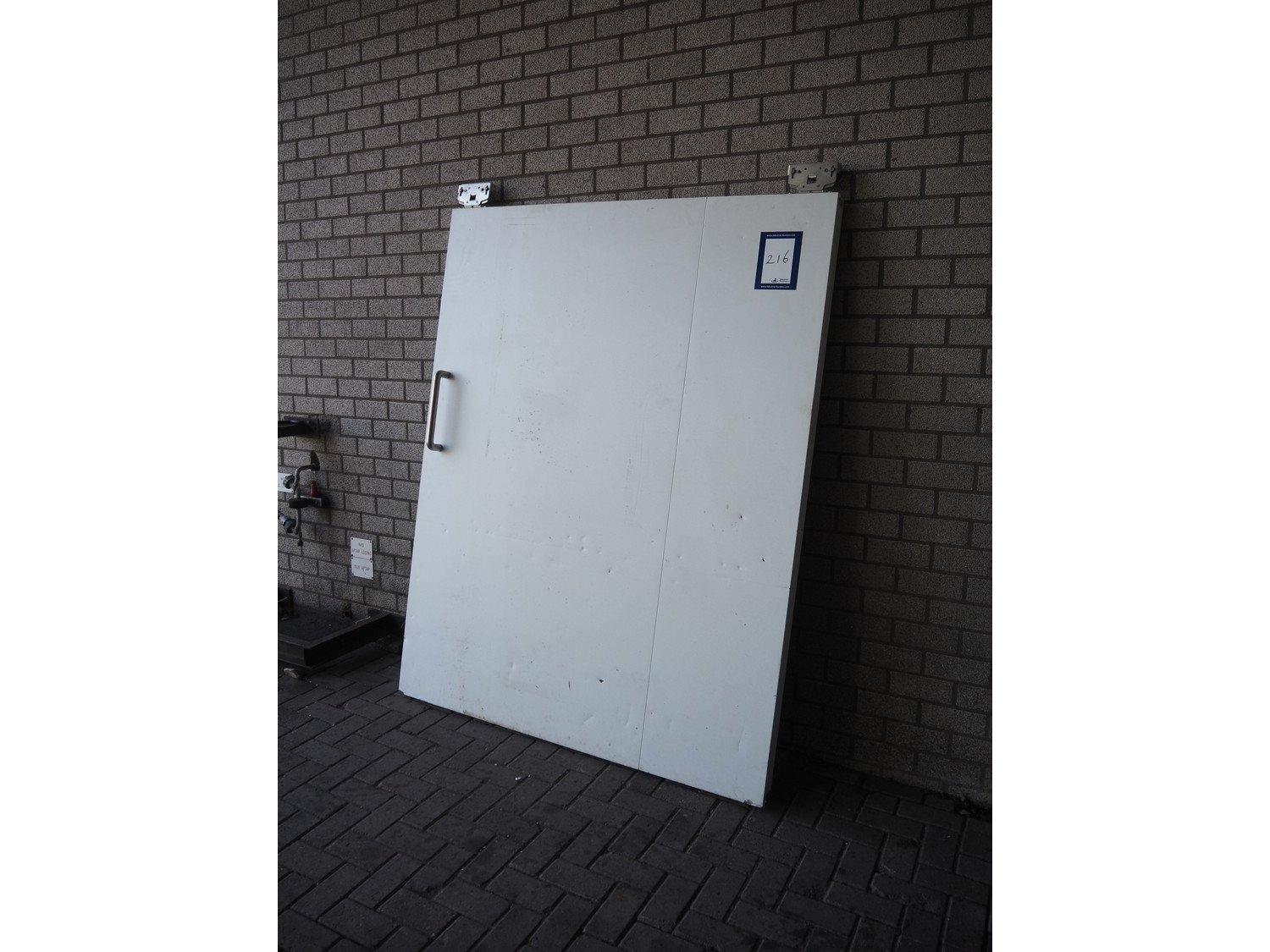 Refrigerated sliding door, thickness: 80 mm, dimensions door: 1600 mm x 2100 mm. Without rail. Kavel locatie: Bunsenstraat 79, 3316 GC Dordrecht, Nederland