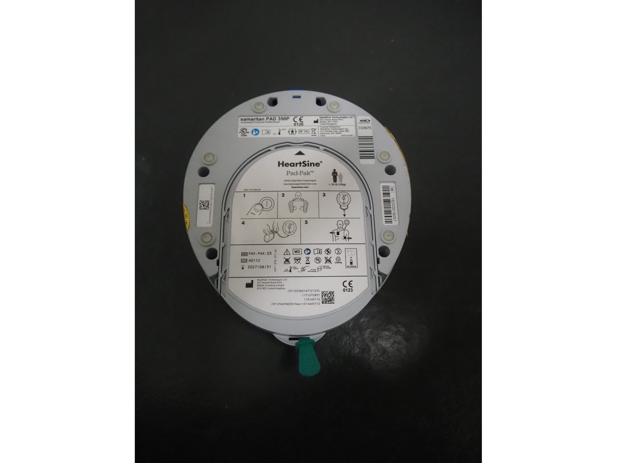 Samaritan PAD 350P AED, dimensions: 250 mm x 150 mm x 200 mm. Kavel locatie: Bunsenstraat 79, 3316 GC Dordrecht, Nederland