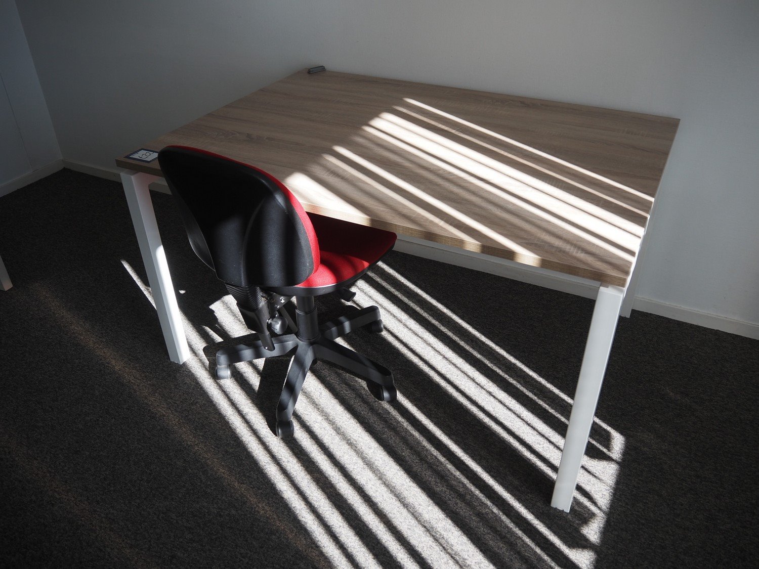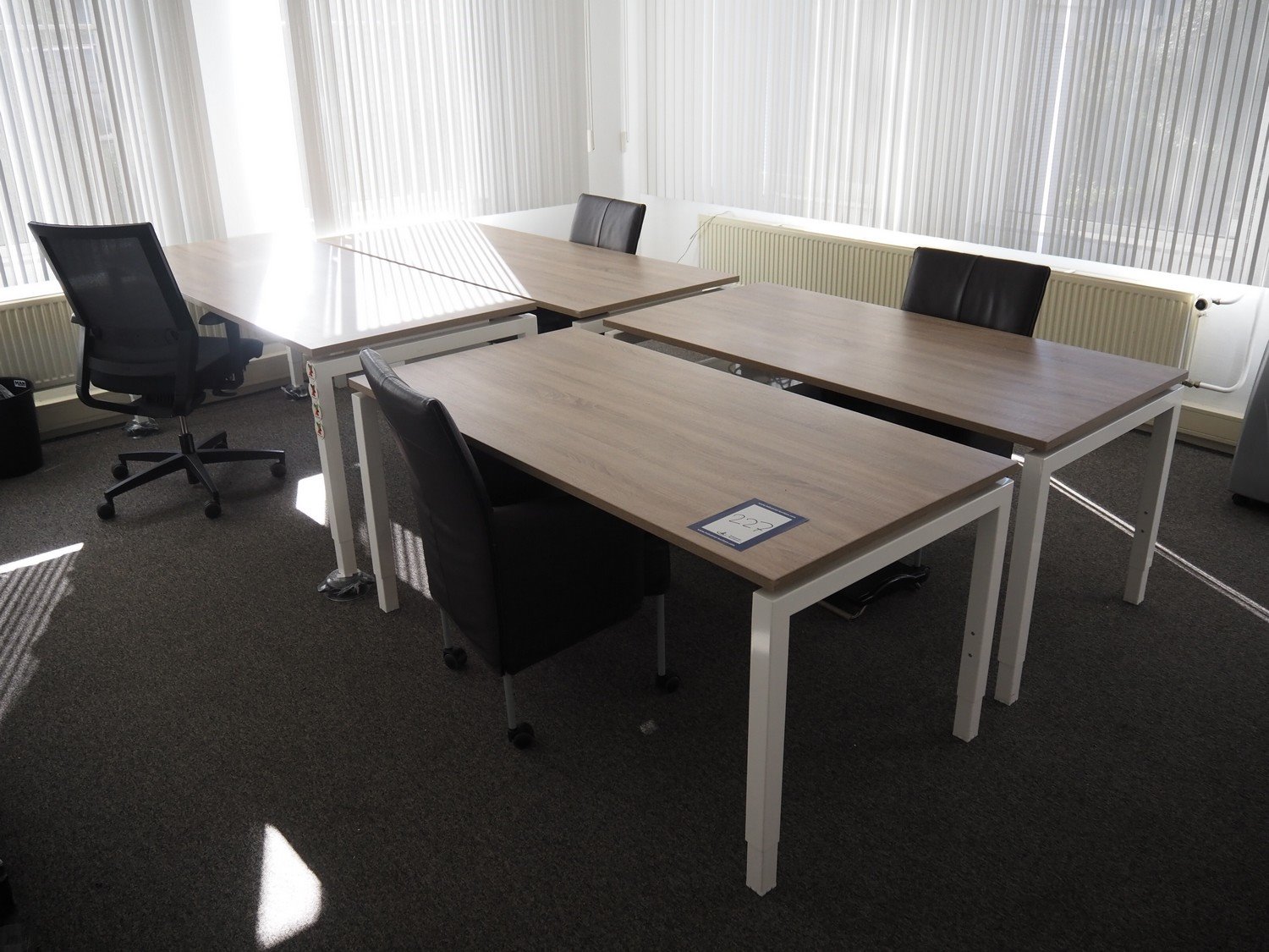 Office equipment consisting of 6 office tables, dimensions (6x): 1600 mm x 800 mm x 750 mm, 6 office chairs, dimensions chairs: (6x) 650 mm x 800 mm x 1100 mm, Kavel locatie: Bunsenstraat 79, 3316 GC Dordrecht, Nederland