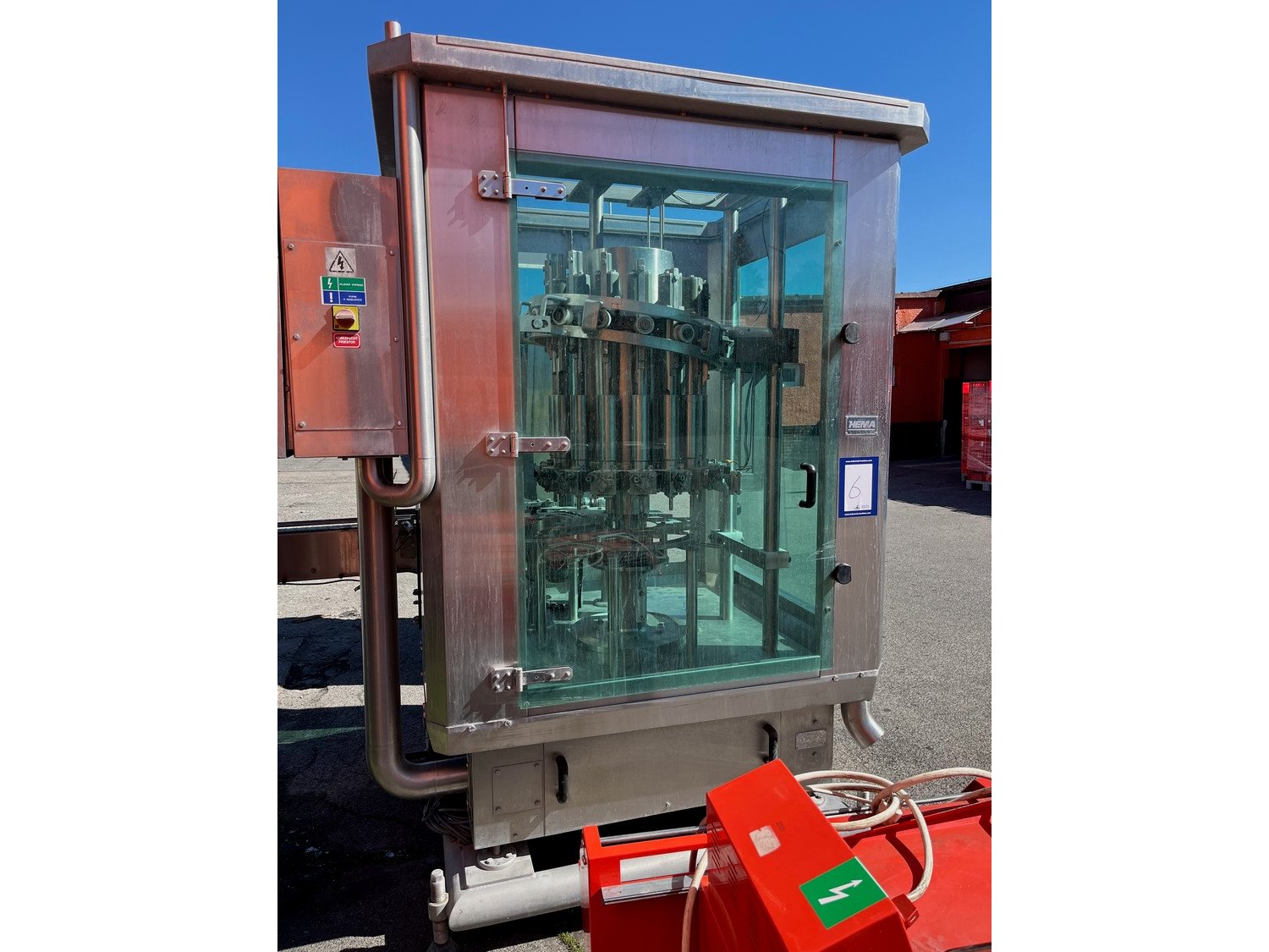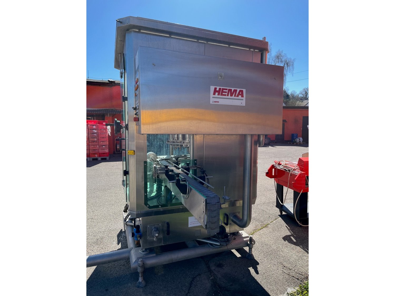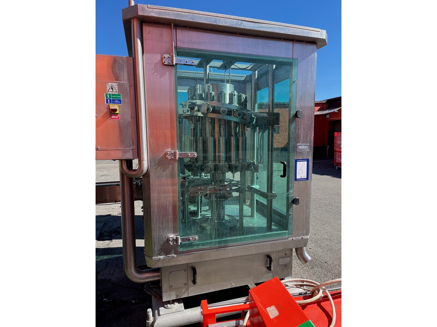 Hema can filling and closing line consisting of Hema can filling machine, type: MRH 15/12, year of construction: 2002, 15 filling heads and Hema can closing machine, type: AGM6.RN, serial number: 8320. Kavel locatie: Mikulášovická 552, 40778 Velký Šenov, Tsjechië