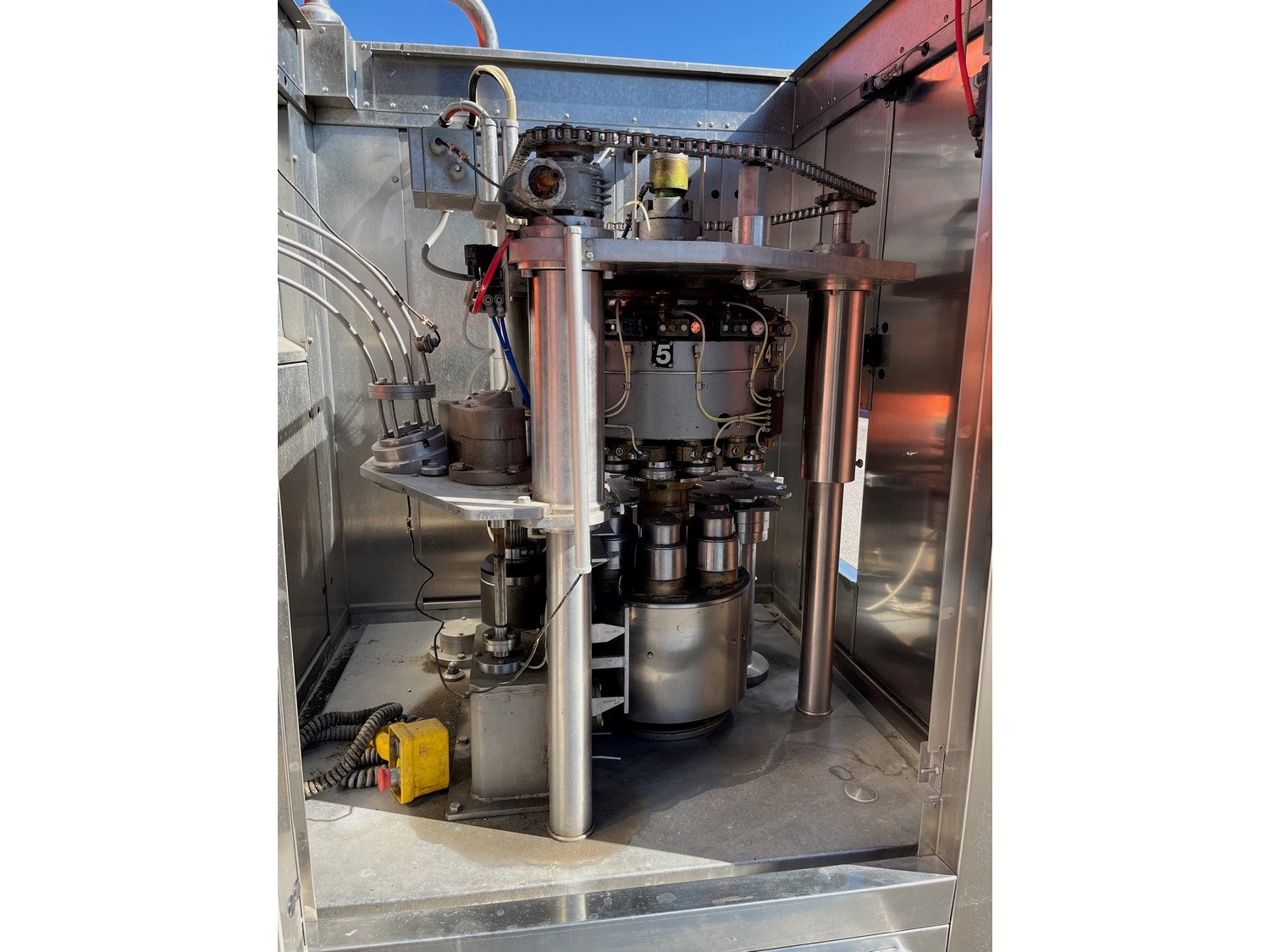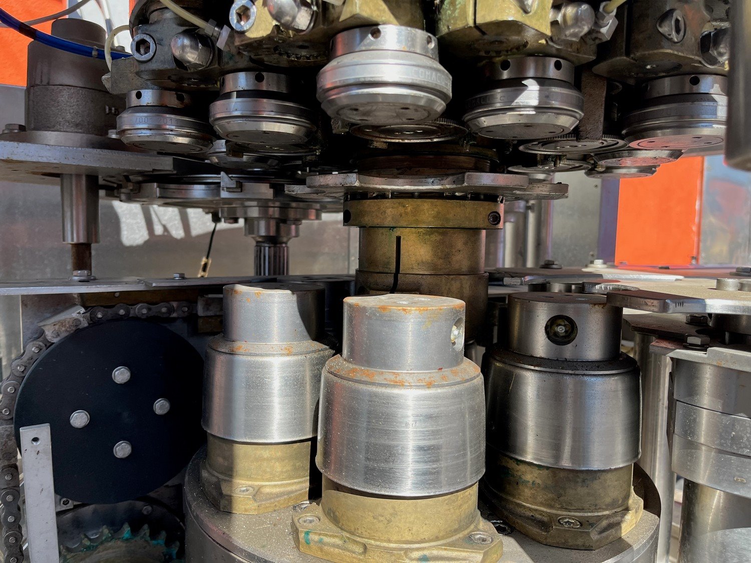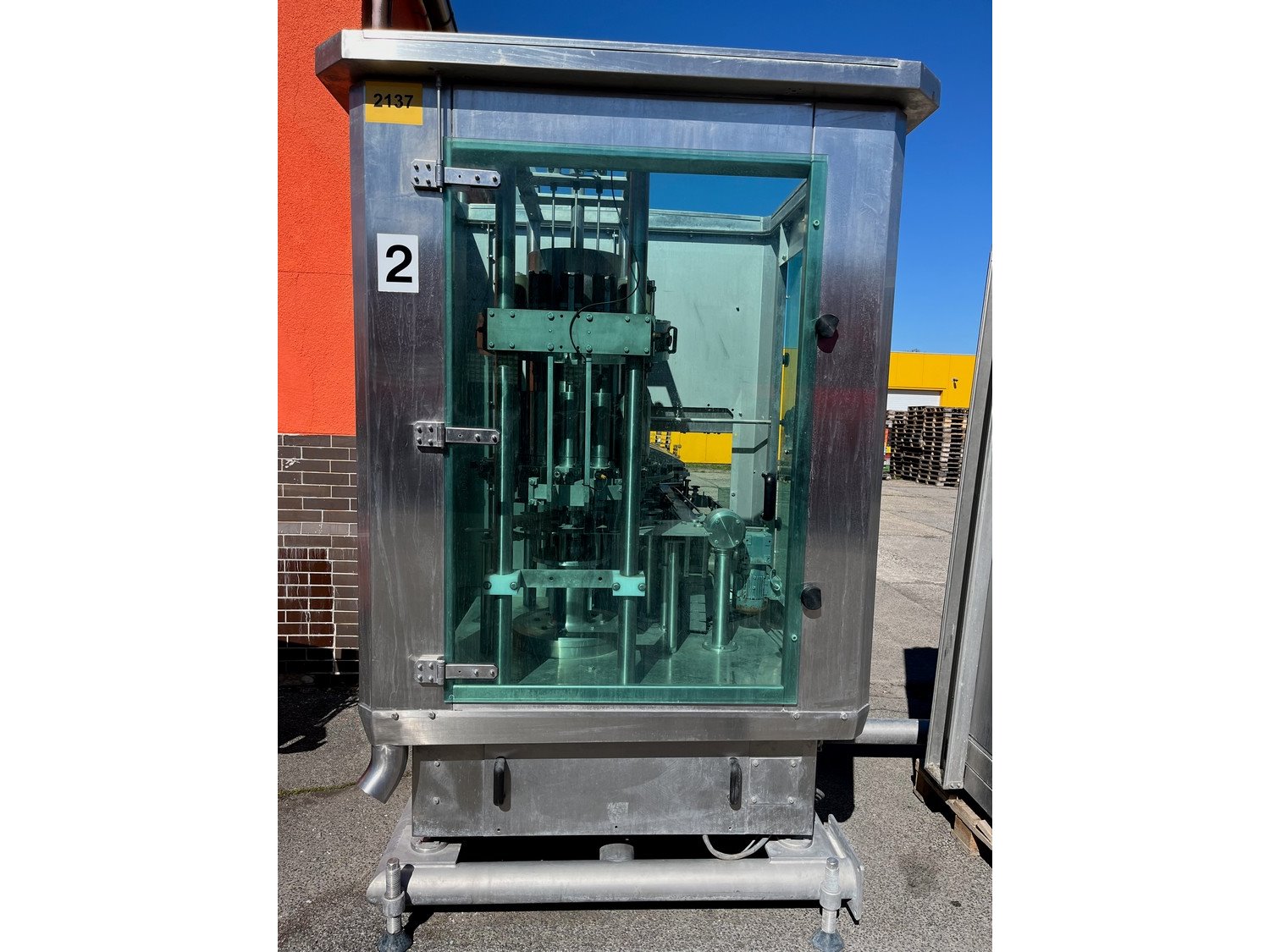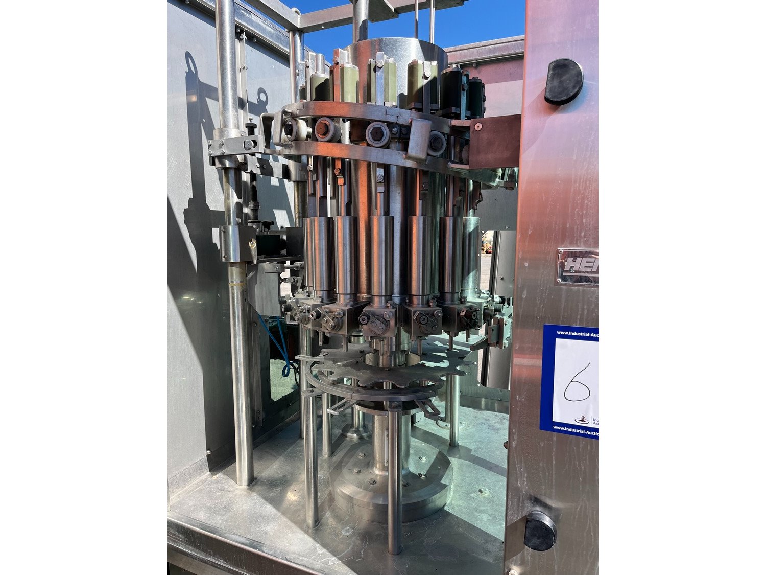 Hema can filling and closing line consisting of Hema can filling machine, type: MRH 15/12, year of construction: 2002, 15 filling heads and Hema can closing machine, type: AGM6.RN, serial number: 8320. Kavel locatie: Mikulášovická 552, 40778 Velký Šenov, Tsjechië