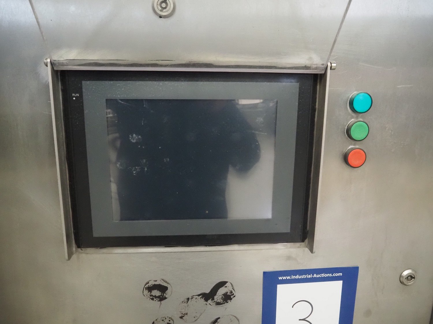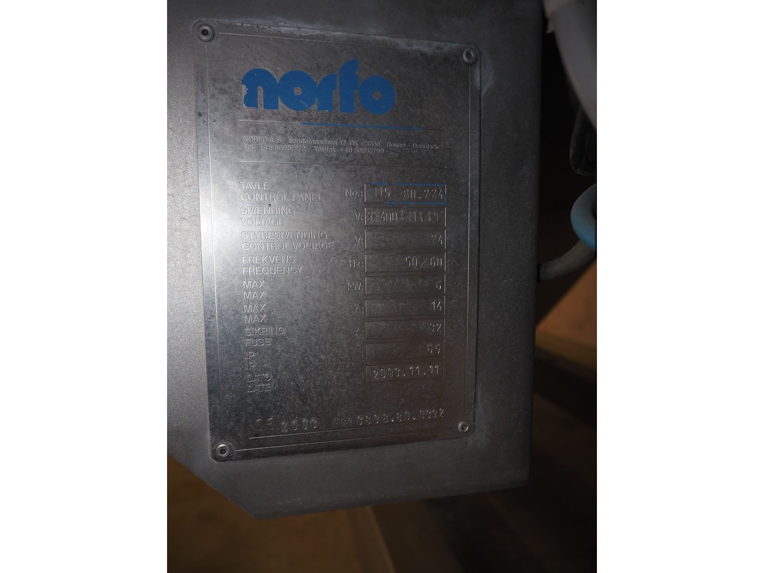 Scanvaegt / Norfo portion cutter, type: 3898.80.0392, number: D.80.224, year of construction: 2008, 400 V, 3 Ph, 50/60 Hz, 14/32 A, 6 kW, plastic belts, belt width: 300 mm, clearance: 350 mm x 110 mm, total dimensions: 3000 mm x 1900 mm x 1470 mm. Kavel locatie: Makkummerwaard 3, 8321 WV Urk, Nederland
