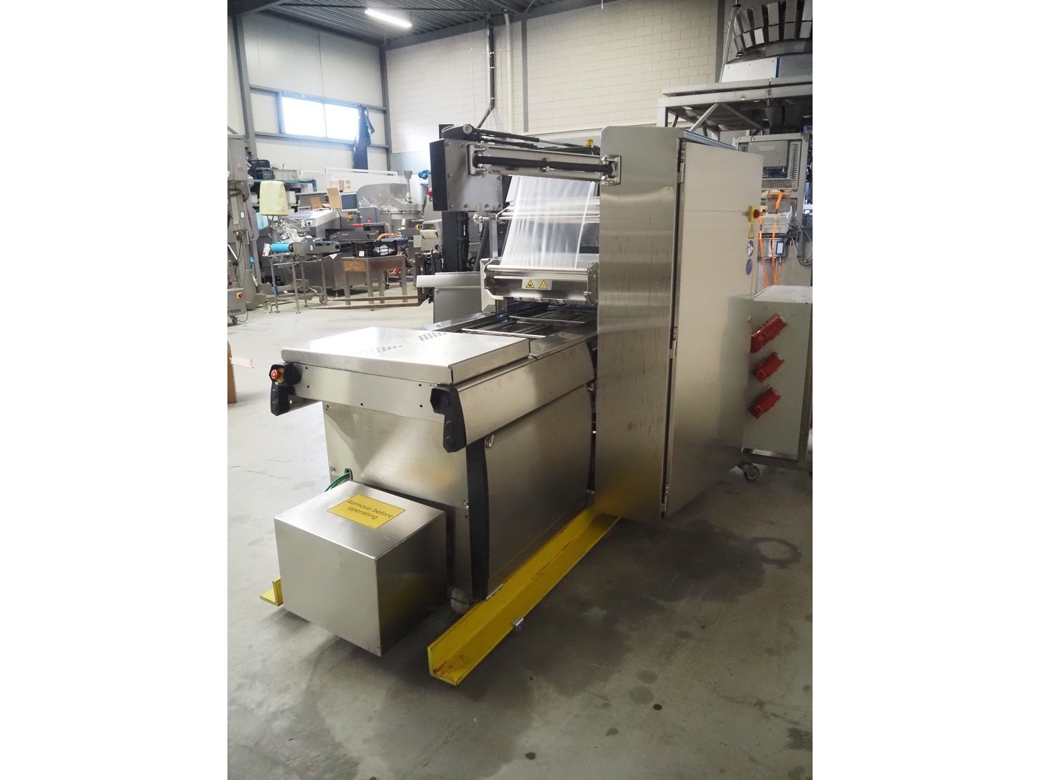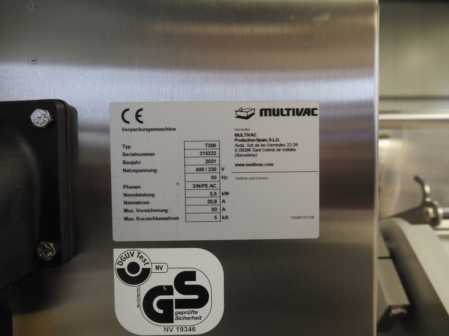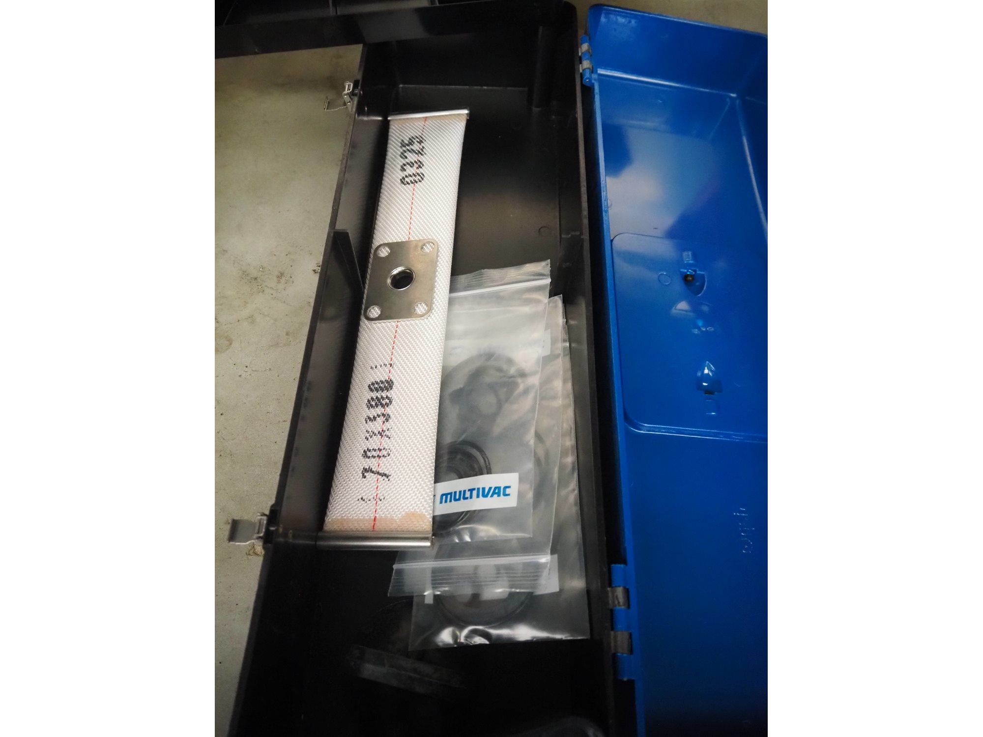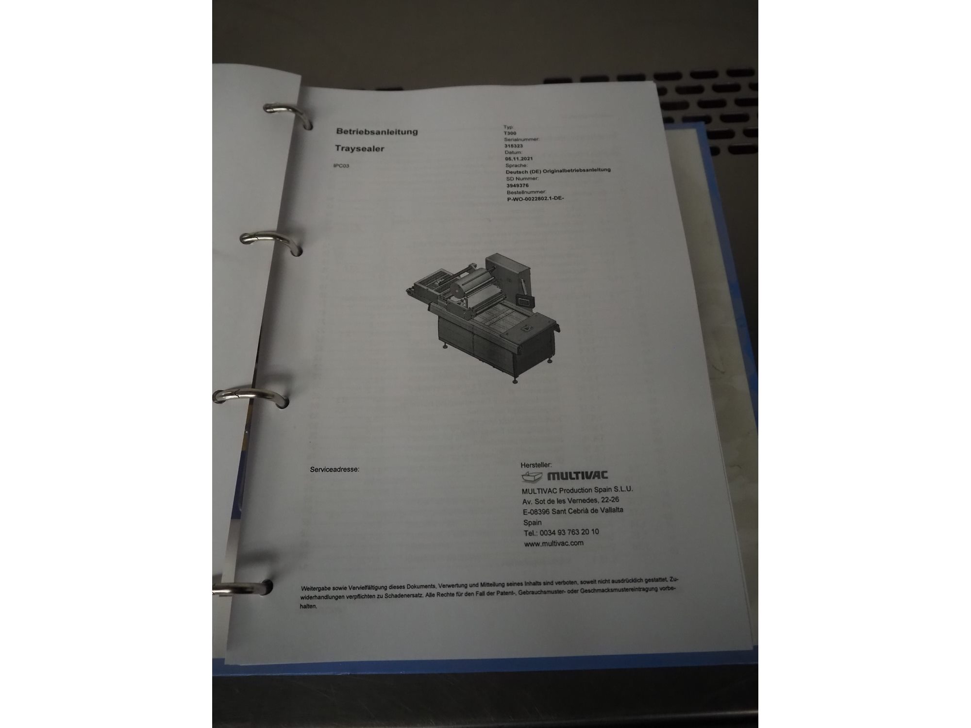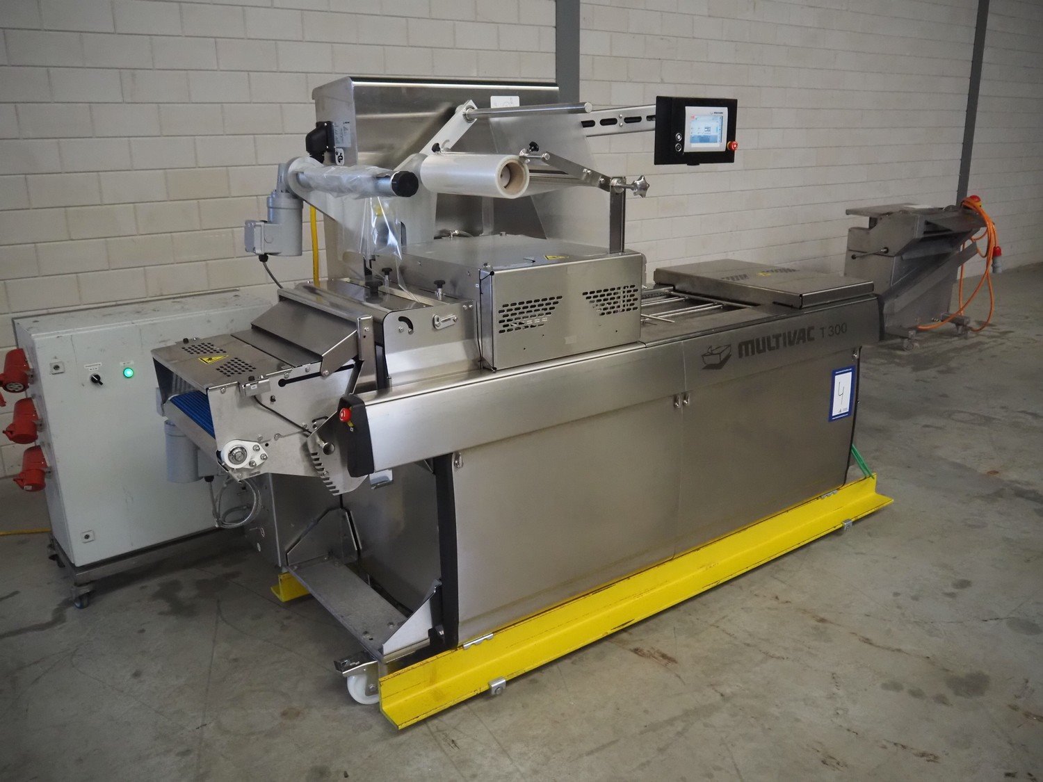 Multivac traysealer, type: T300, serial number: 315323, year of construction: 2021, 400/230 V, 3 Ph, 50 Hz, 20.8/50 A, 5.5 kW, film width: 390 mm, dye: (2x) 270 mm x 160 mm, plastic outfeed belt, belt width: 460 mmm, Busch vacuum pump, type: RA0100 F 503, capacity: 100 m³ per hour, total dimensions: 2600 mm x 1050 mm x 1670 mm. Kavel locatie: Makkummerwaard 3, 8321 WV Urk, Nederland