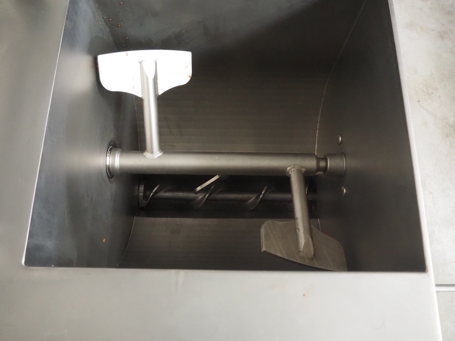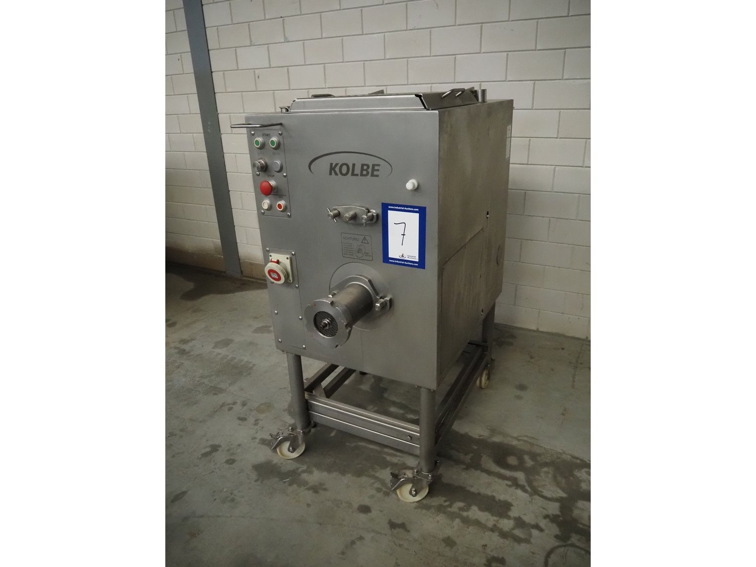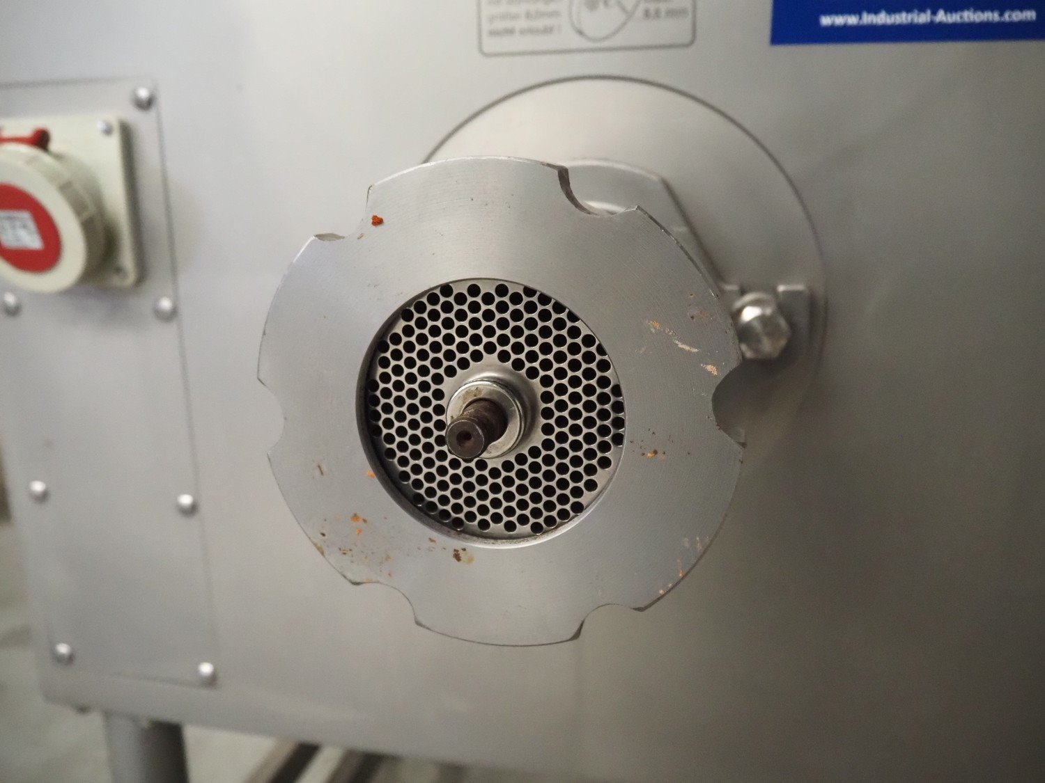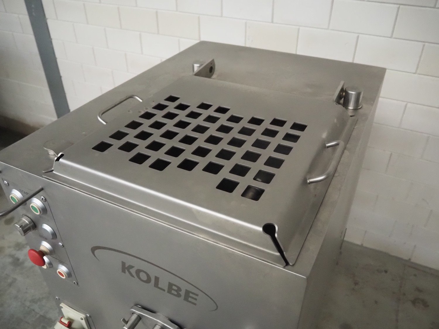 Kolbe mobile paddle-mixer grinder, type: MW32-80, serial number: 124 0889, year of construction: 2015, 400 V, 3 Ph, 50 Hz, 11.4+2.4 A, 5.5+0.75 kW, weight: 365/380 kg, plate diameter: 100 mm, total dimensions: 1300 mm x 700 mm x 1500 mm. Including 2 extra plates. Kavel locatie: Makkummerwaard 3, 8321 WV Urk, Nederland
