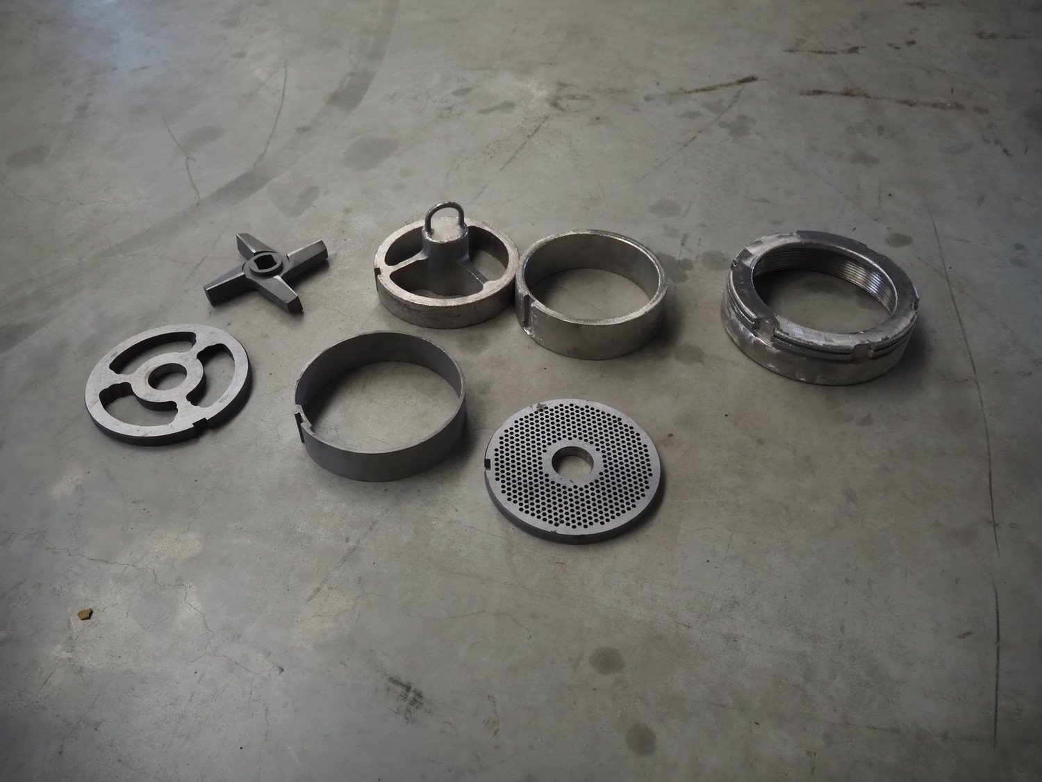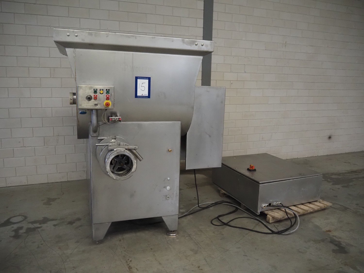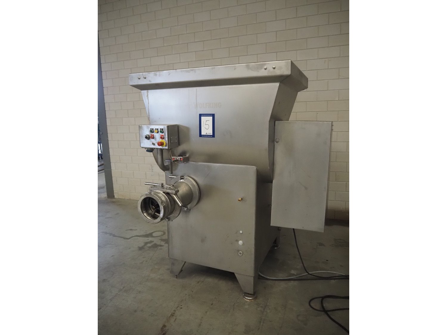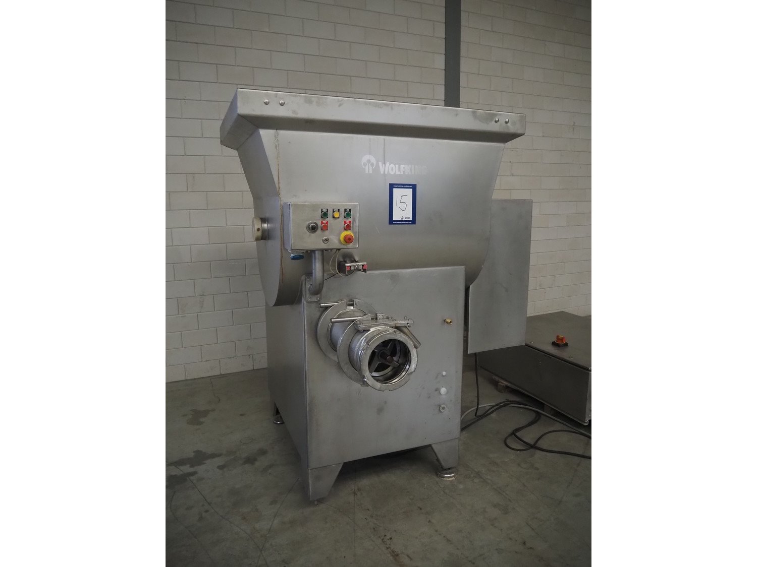 Wolfking mixer-grinder, type: SFG 850/200, 22 kW, plate diameter: 200 mm, total dimensions: 1670 mm x 1600 mm x 2030 mm. Dimensions switch cabinet: 1200 mm x 100 mm x 450 mm. Including plates and knife. Kavel locatie: Makkummerwaard 3, 8321 WV Urk, Nederland