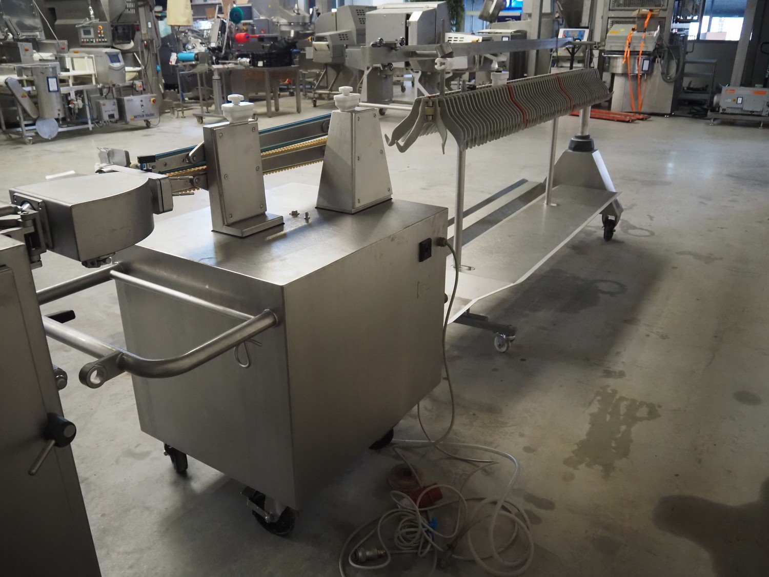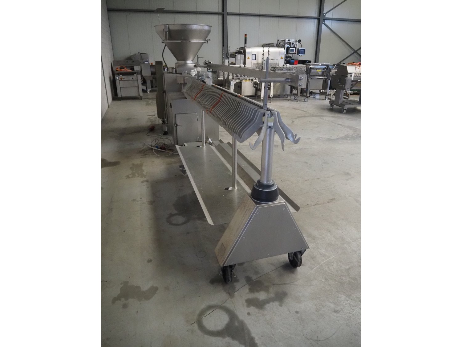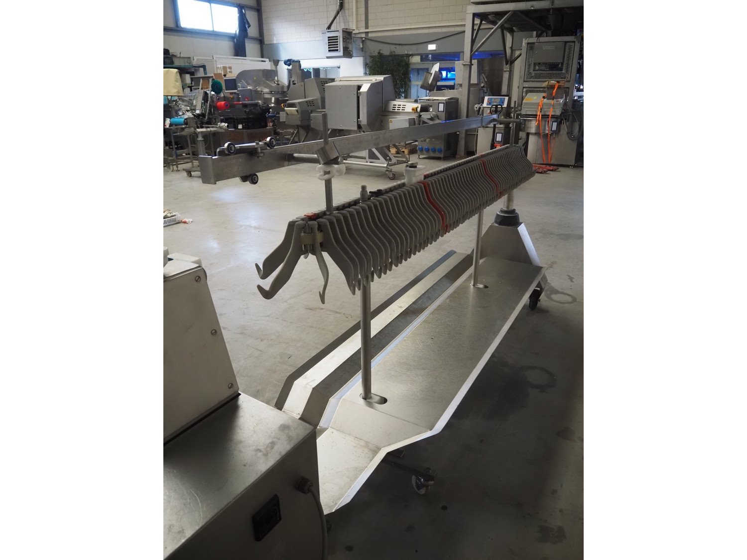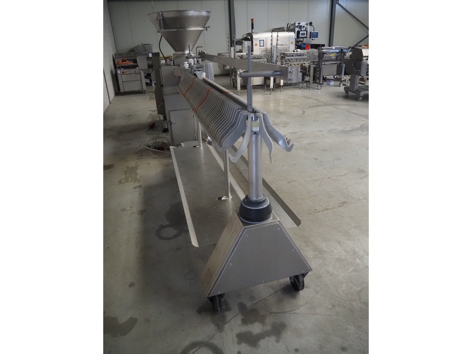 Handtmann mobile linking and hanging line, type linking machine: 217-21, number: 547, year of construction: 2018, 400 V, 3 Ph, 50 Hz, 6 A, 3.5 kW, weight: 290 kg, dimensions: 1300 mm x 700 mm x 1200 mm, type hanging line: 242-16, number: 10903516, year of construction: 2018, weight: 210 kg, dimensions: 2550 mm x 720 mm x 1400 mm. Including extra parts. Kavel locatie: Makkummerwaard 3, 8321 WV Urk, Nederland