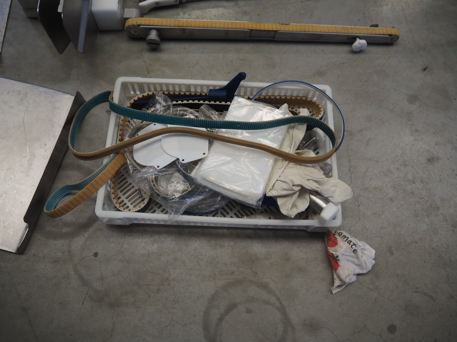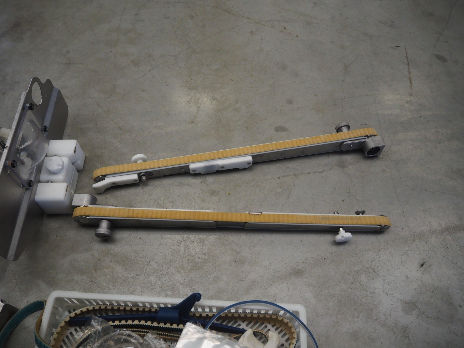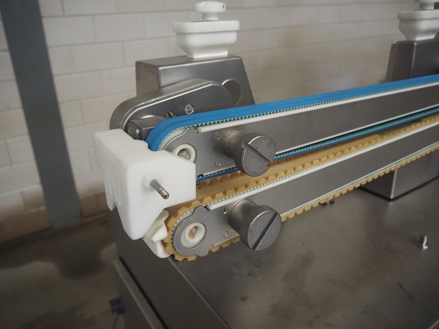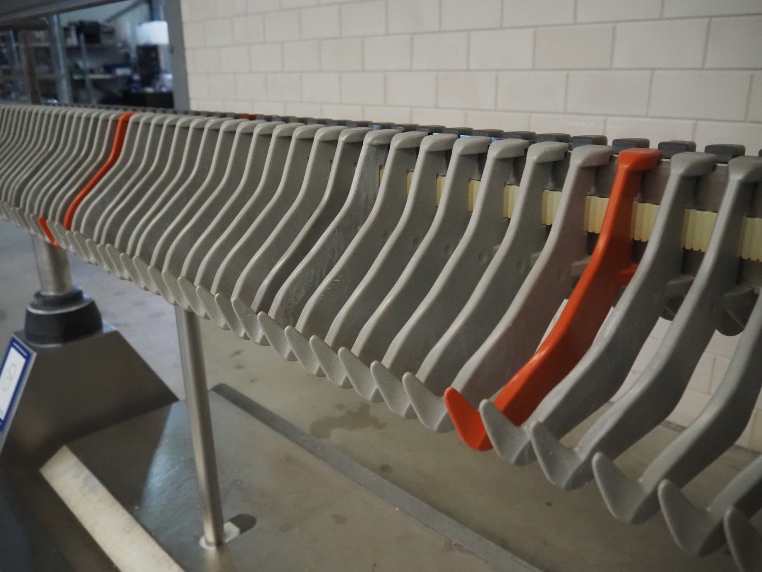 Handtmann mobile linking and hanging line, type linking machine: 217-21, number: 547, year of construction: 2018, 400 V, 3 Ph, 50 Hz, 6 A, 3.5 kW, weight: 290 kg, dimensions: 1300 mm x 700 mm x 1200 mm, type hanging line: 242-16, number: 10903516, year of construction: 2018, weight: 210 kg, dimensions: 2550 mm x 720 mm x 1400 mm. Including extra parts. Kavel locatie: Makkummerwaard 3, 8321 WV Urk, Nederland