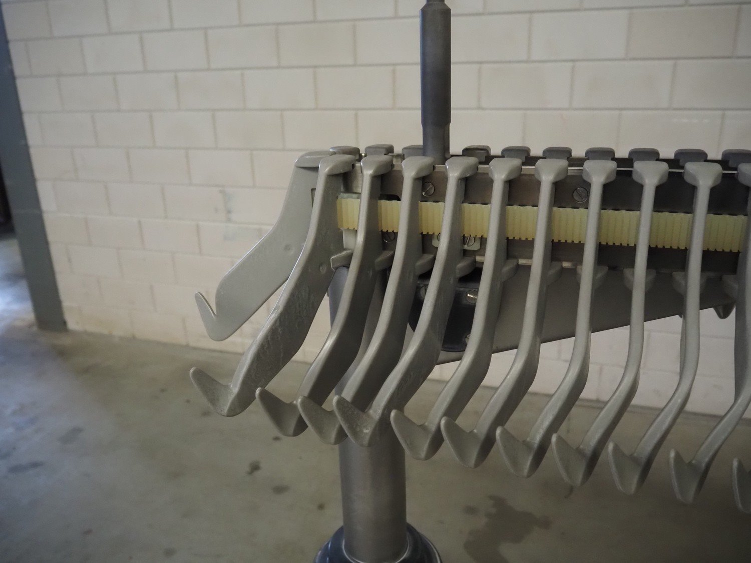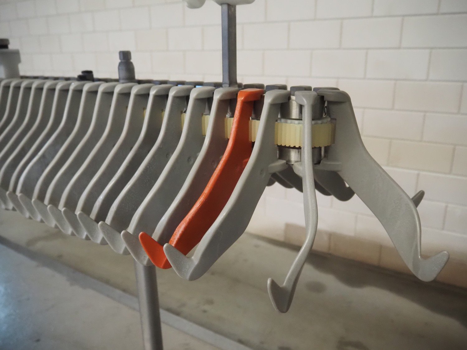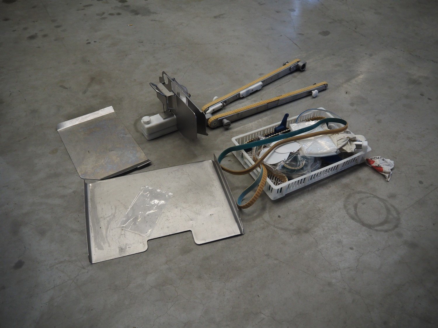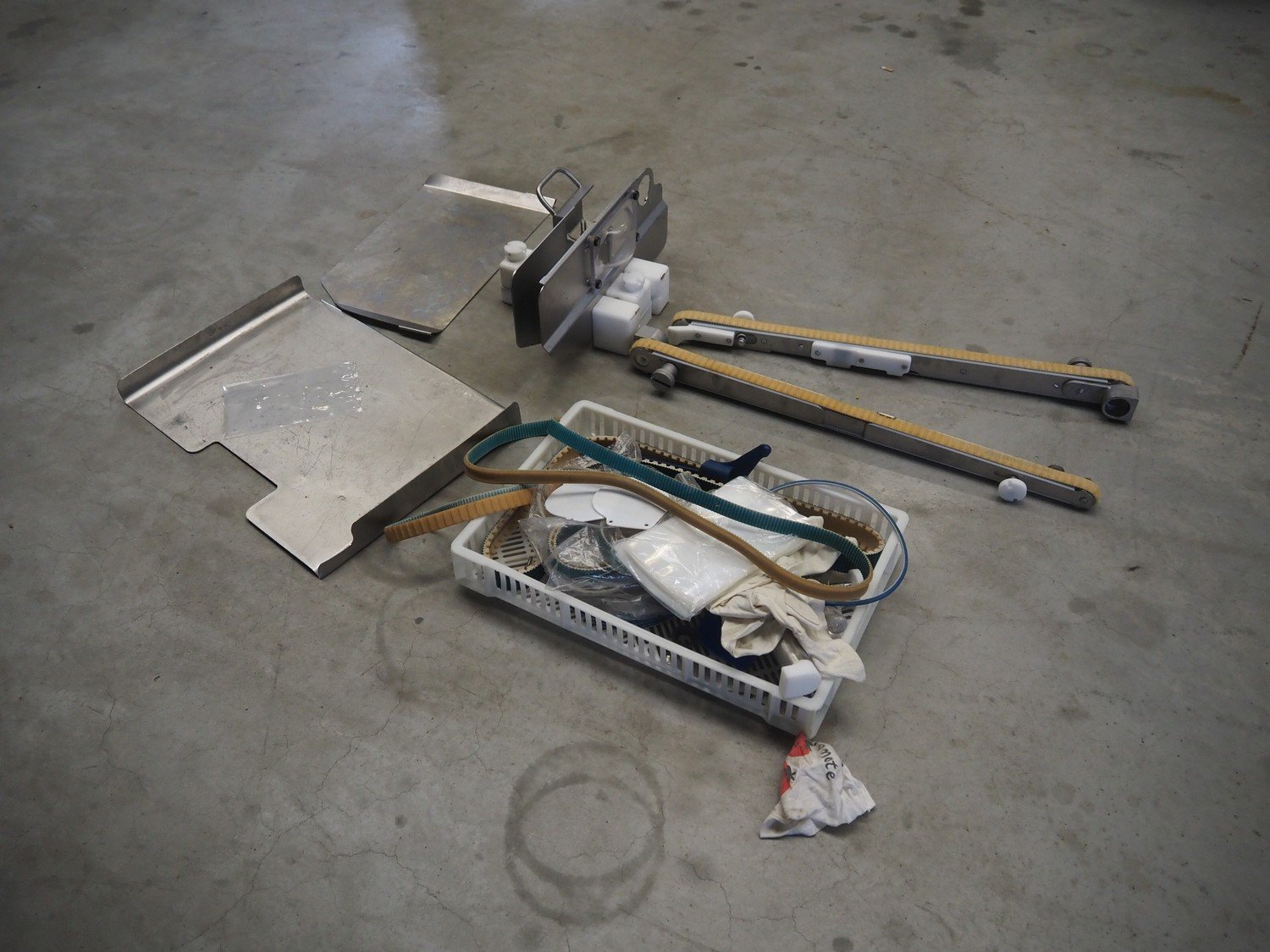Handtmann mobile linking and hanging line, type linking machine: 217-21, number: 547, year of construction: 2018, 400 V, 3 Ph, 50 Hz, 6 A, 3.5 kW, weight: 290 kg, dimensions: 1300 mm x 700 mm x 1200 mm, type hanging line: 242-16, number: 10903516, year of construction: 2018, weight: 210 kg, dimensions: 2550 mm x 720 mm x 1400 mm. Including extra parts. Kavel locatie: Makkummerwaard 3, 8321 WV Urk, Nederland
