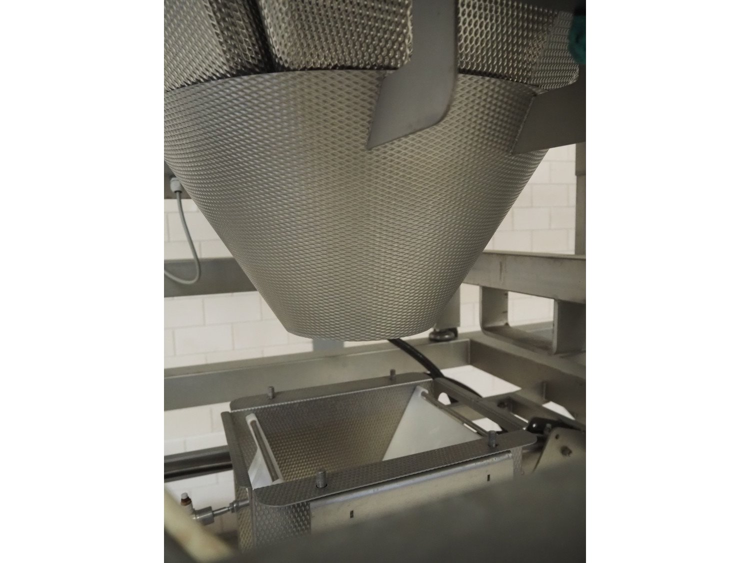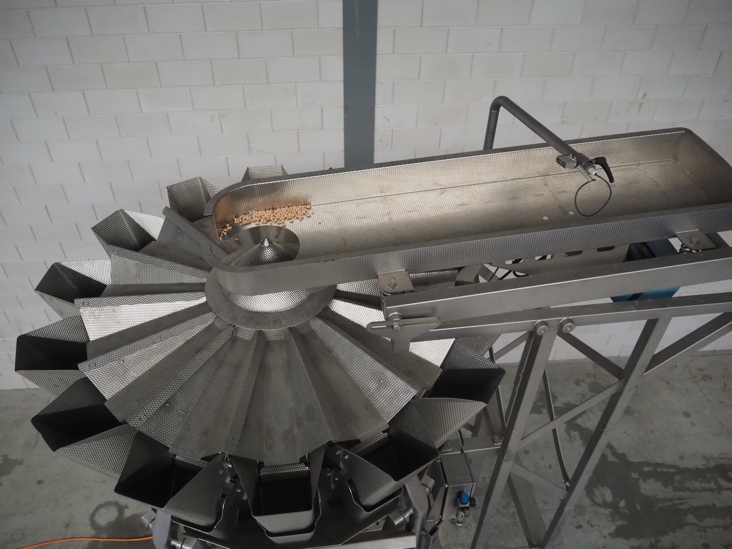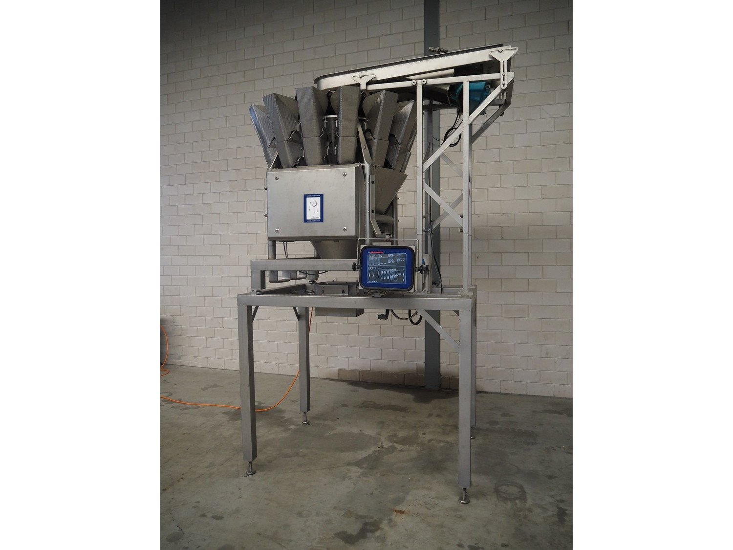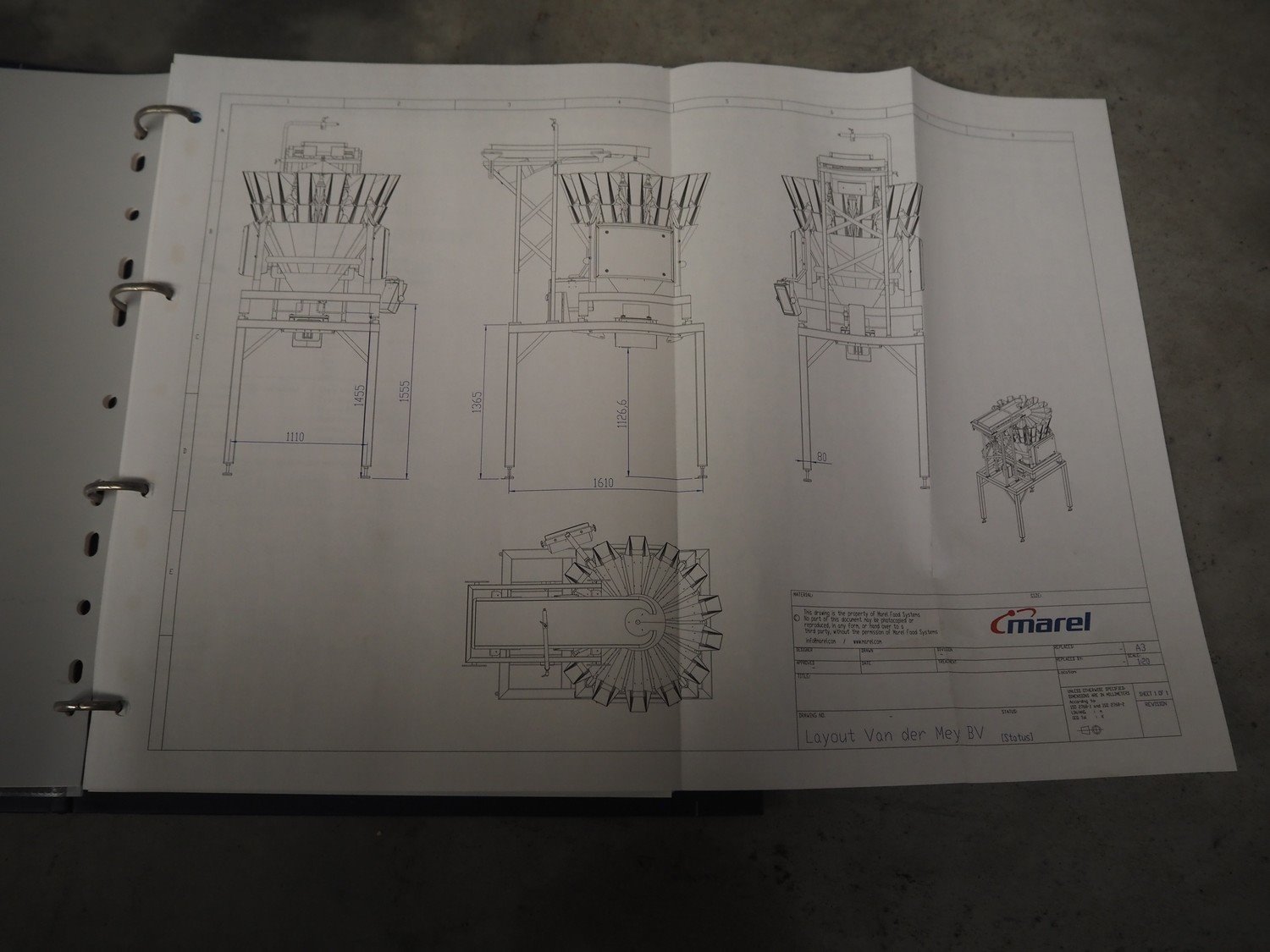 Marel 14 heads multihead weigher with vibrating gutter, type: Multihead 5414-2L-AD, serial number: E012196, year of construction: 2011, 400/230 V, 3 Ph, 50 Hz, 2.0 A, weight: 550 kg, gutter width: 400 mm, total dimensions: 1300 mm x 1700 mm x 3050 mm. Kavel locatie: Makkummerwaard 3, 8321 WV Urk, Nederland