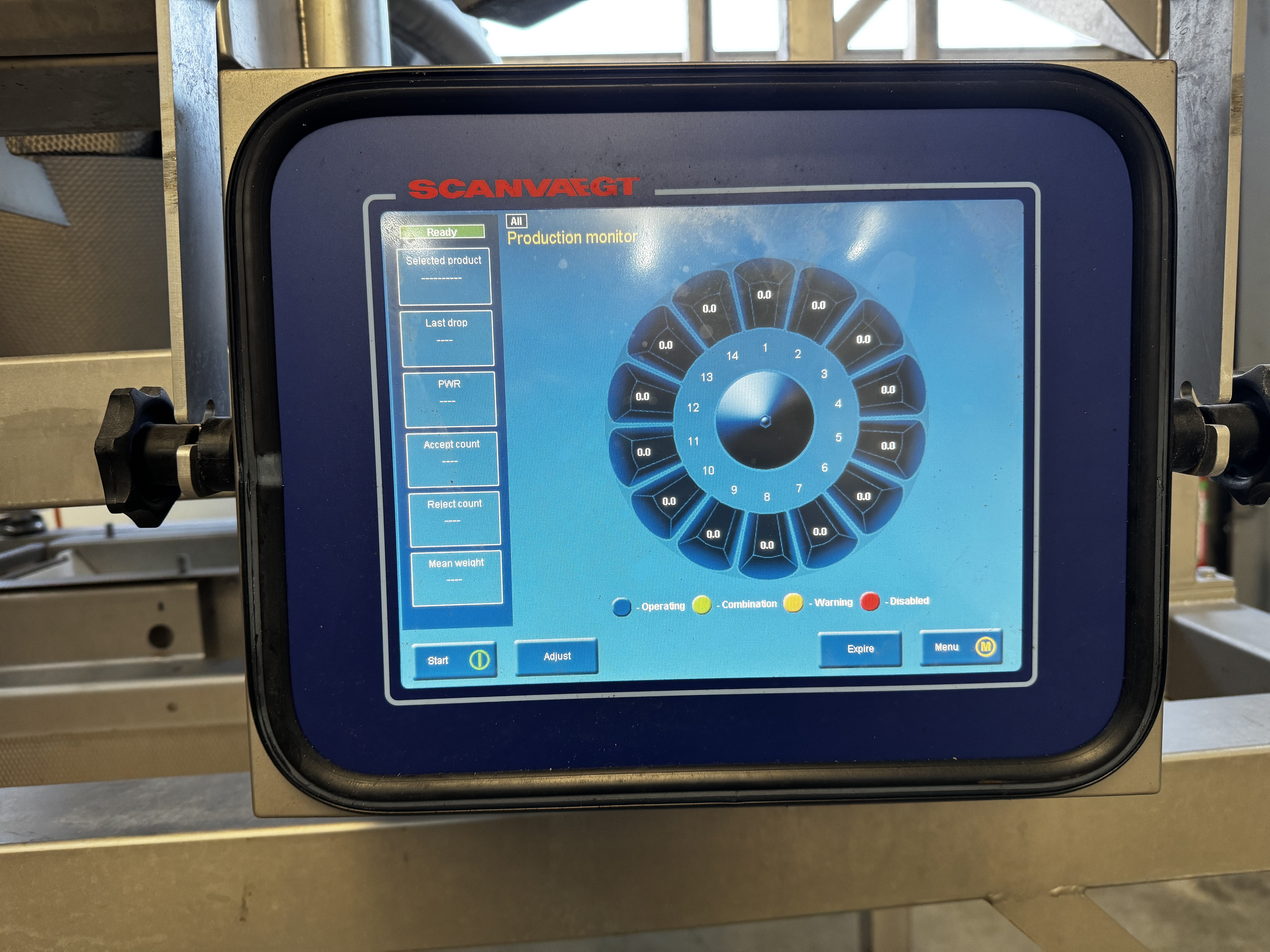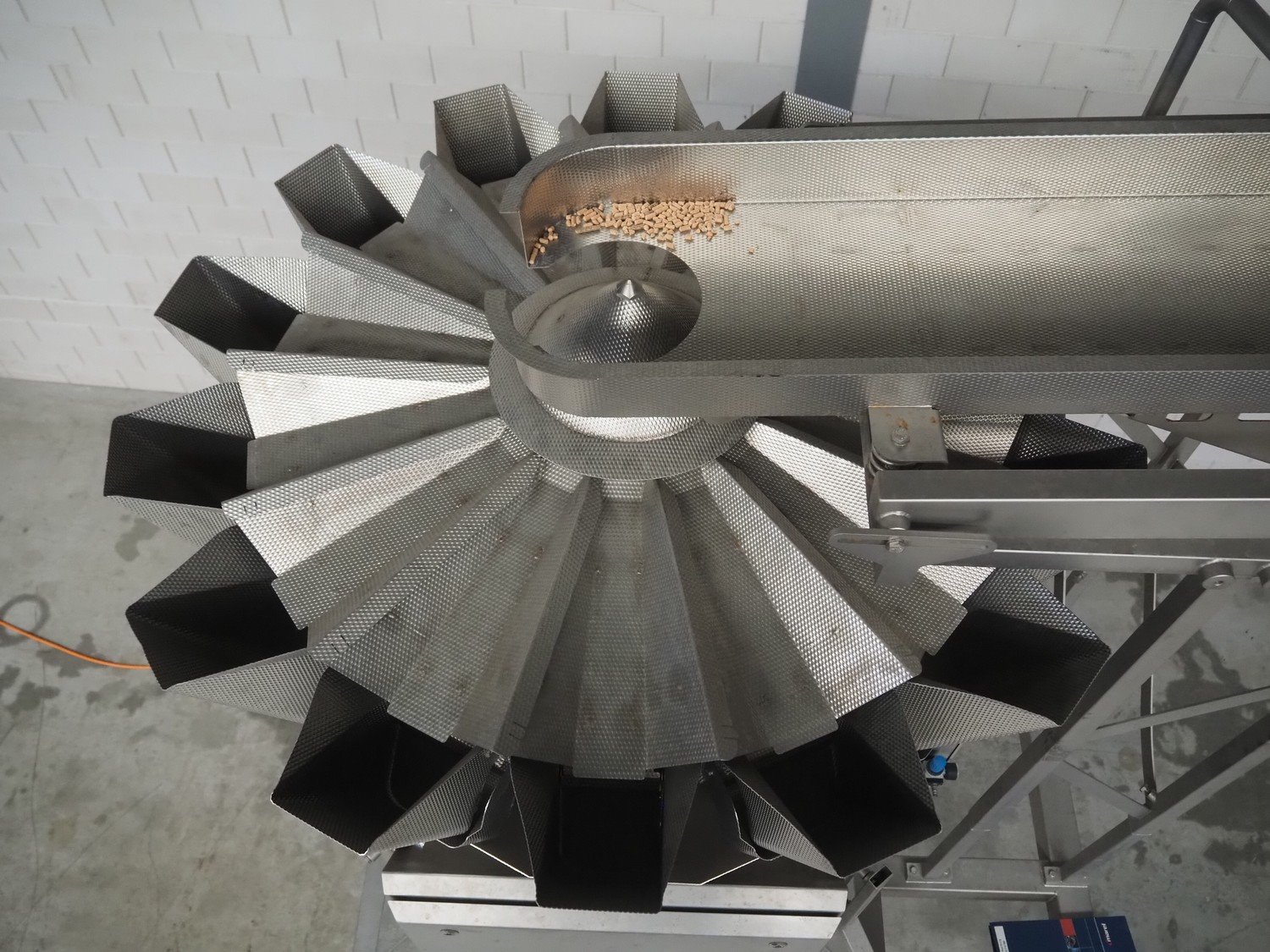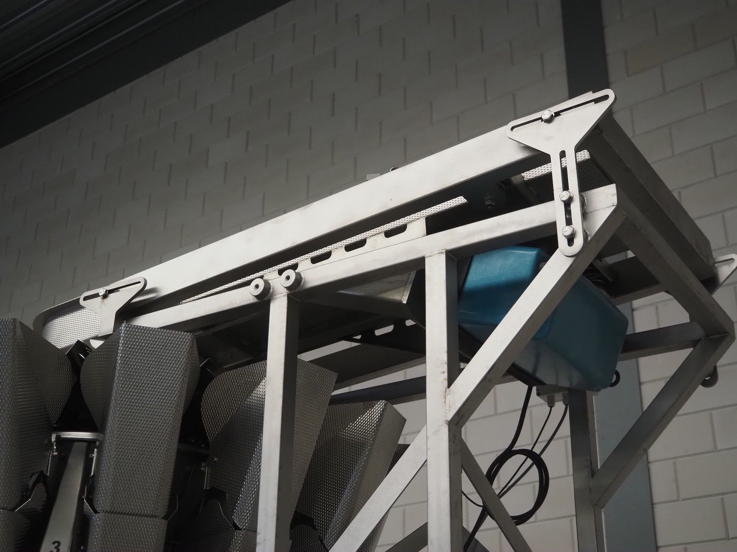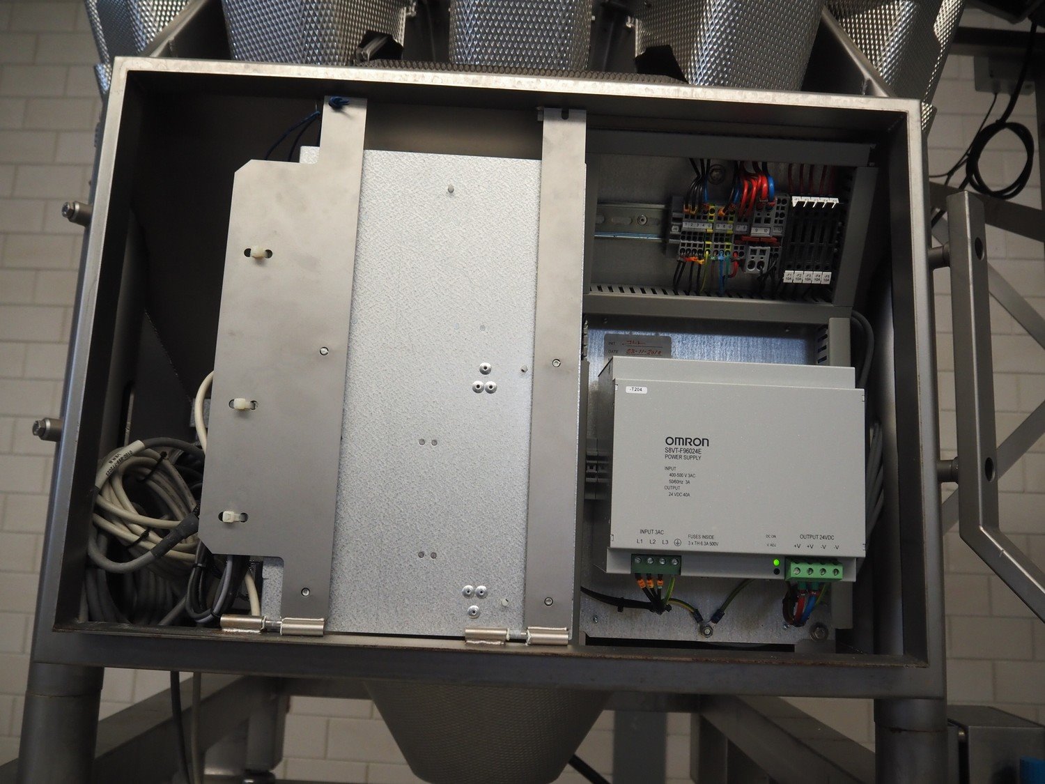 Marel 14 heads multihead weigher with vibrating gutter, type: Multihead 5414-2L-AD, serial number: E012196, year of construction: 2011, 400/230 V, 3 Ph, 50 Hz, 2.0 A, weight: 550 kg, gutter width: 400 mm, total dimensions: 1300 mm x 1700 mm x 3050 mm. Kavel locatie: Makkummerwaard 3, 8321 WV Urk, Nederland