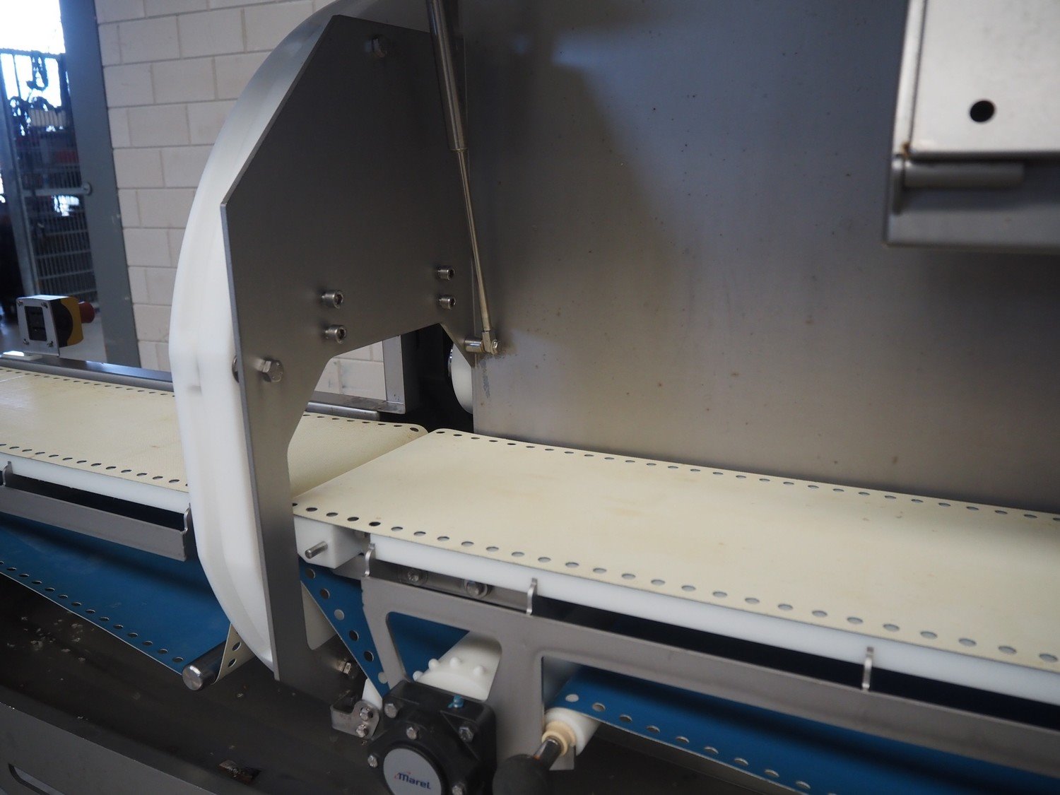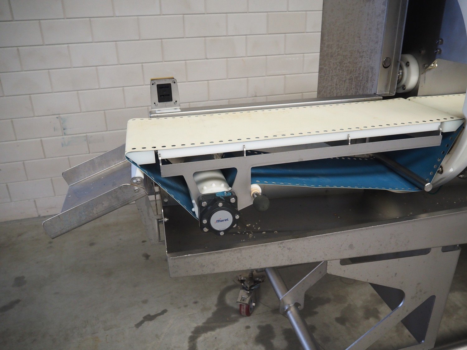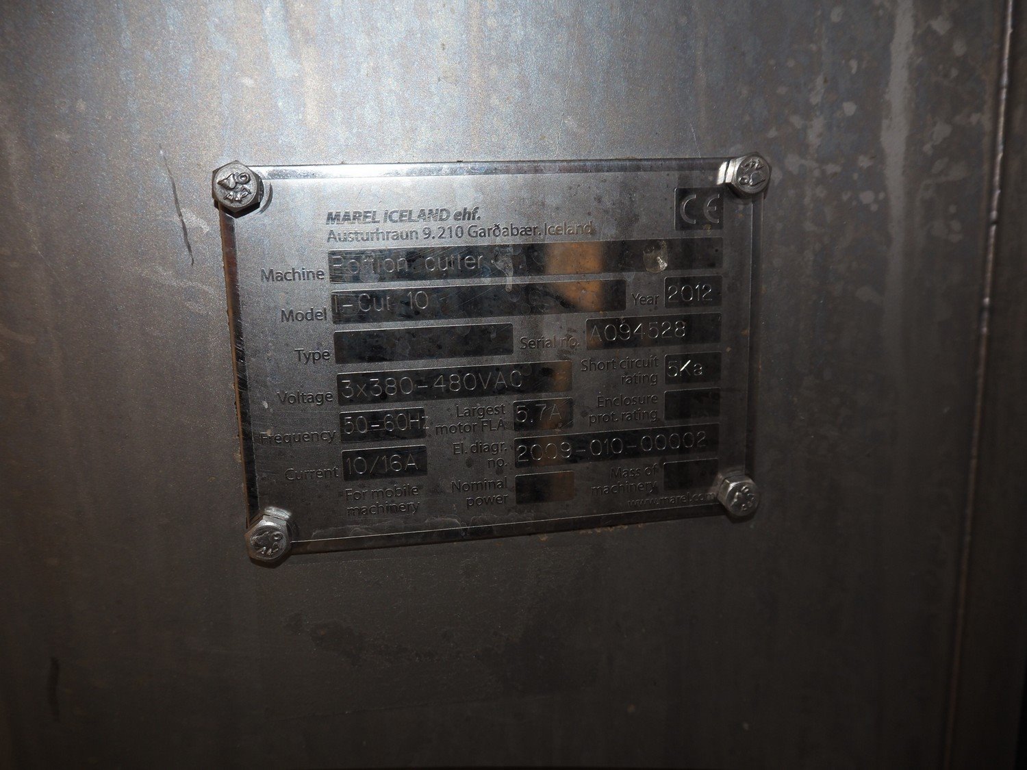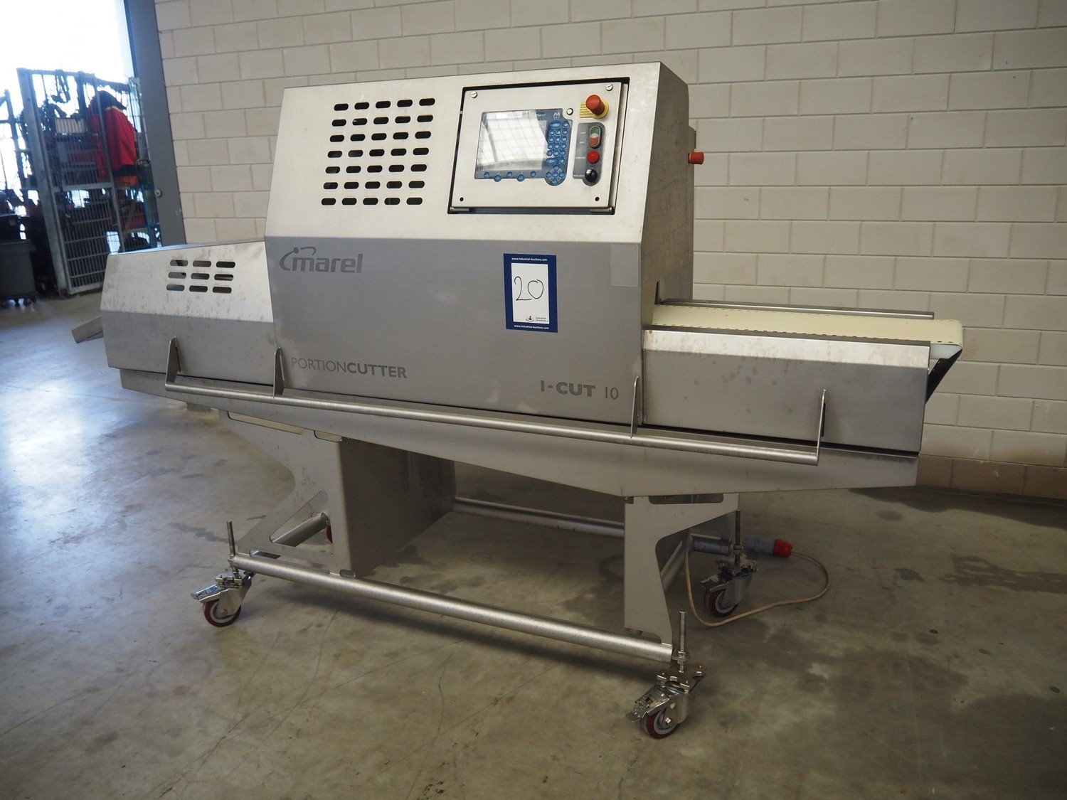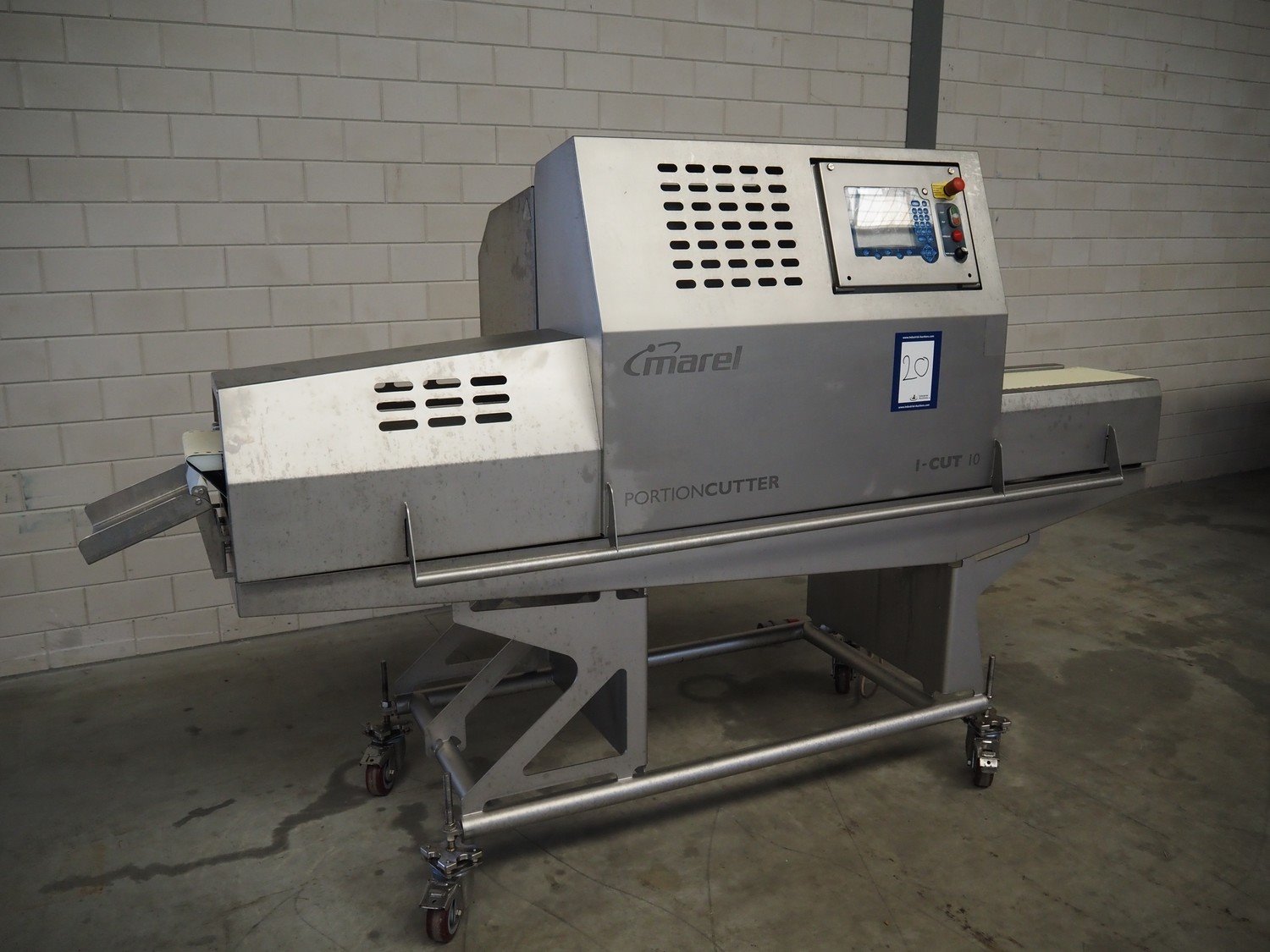 Marel mobile portion cutter, model: I-Cut 10, serial number: A094528, year of construction: 2012, 380/480 V, 3 Ph, 50/60 Hz, 5.7/10/16 A, clearance: 280 mm x 105 mmm, plastic belt, belt width: 280 mm, total dimensions: 2880 mm x 1750 mm x 1750 mm. Kavel locatie: Makkummerwaard 3, 8321 WV Urk, Nederland
