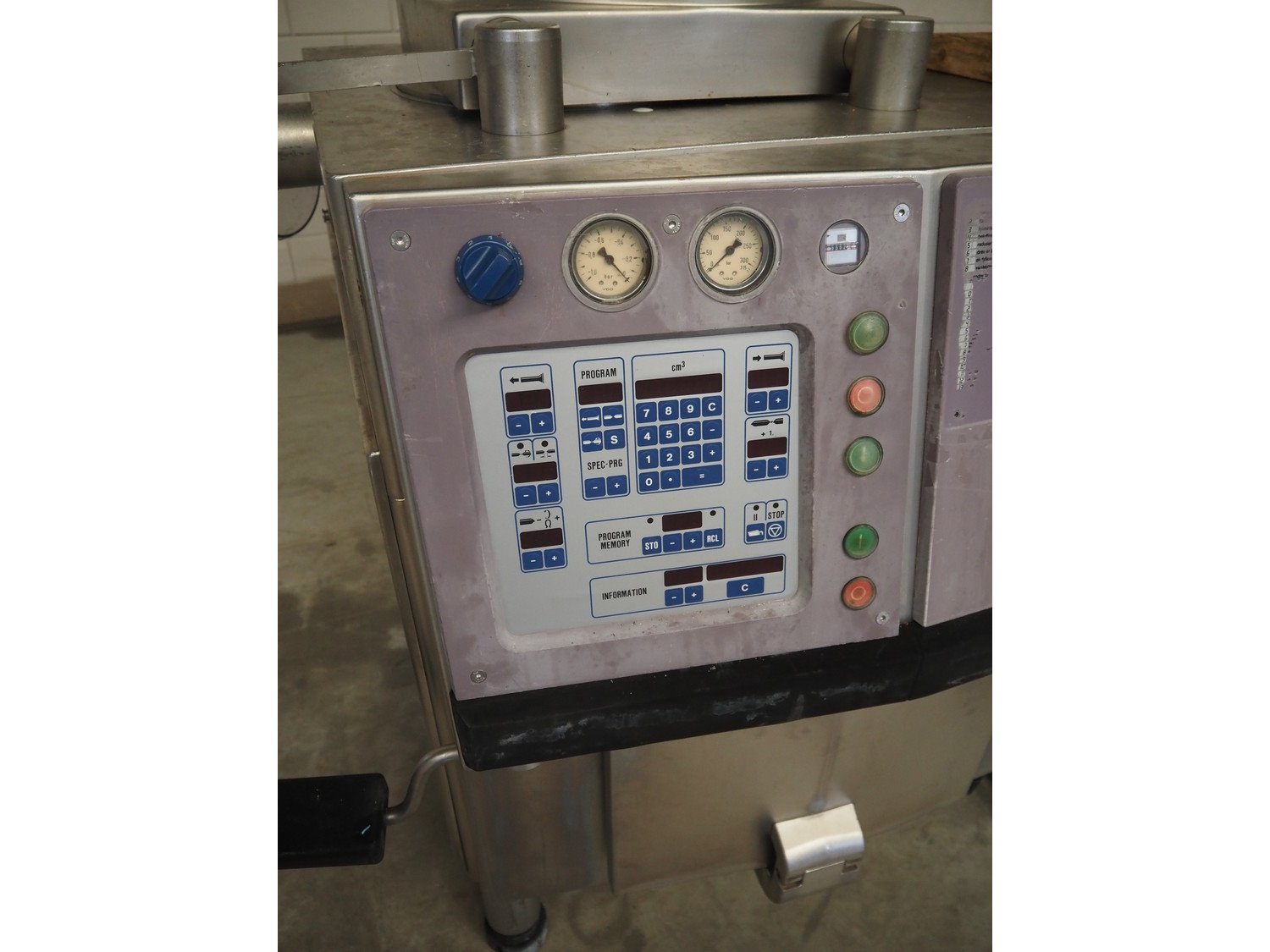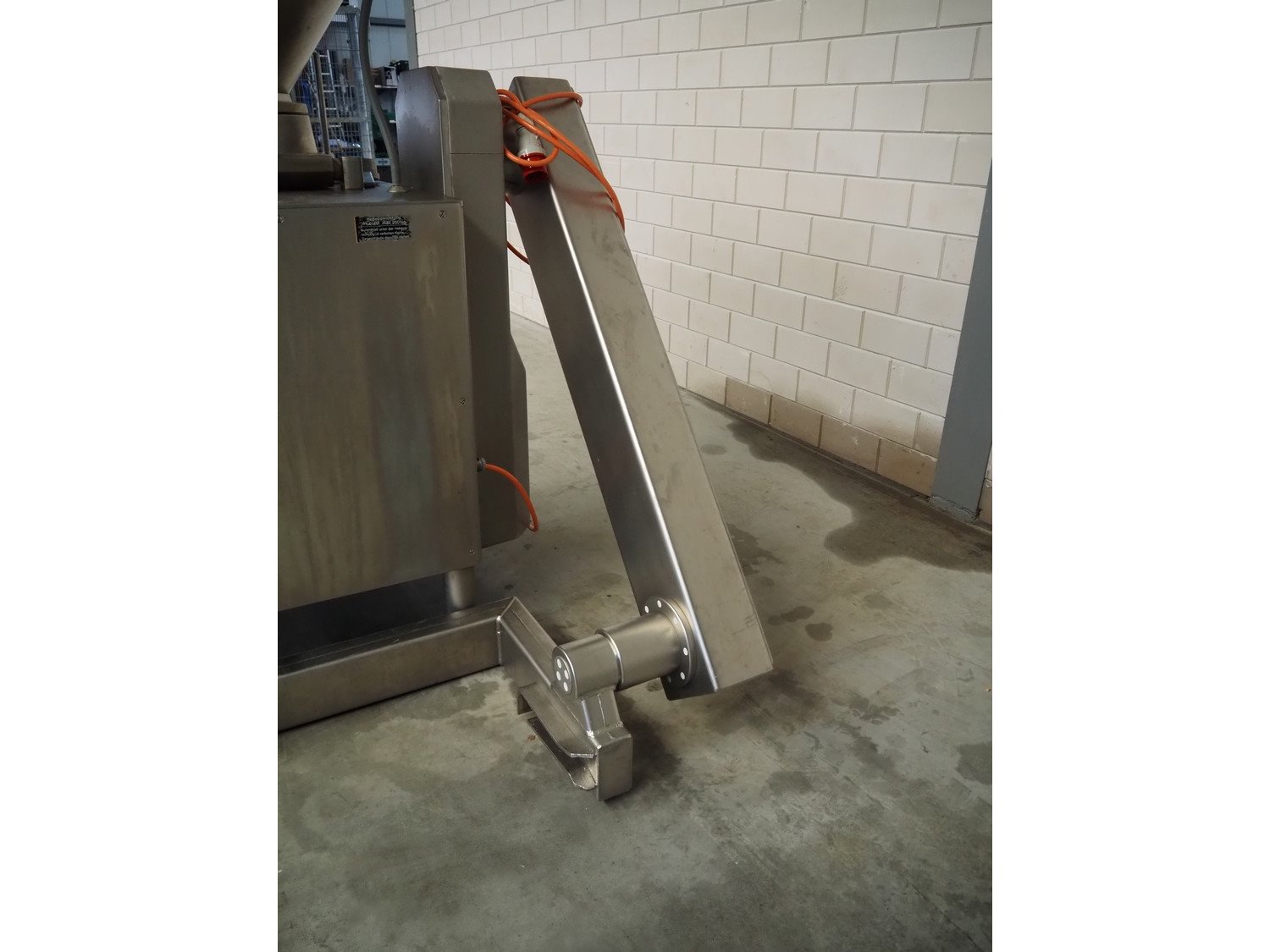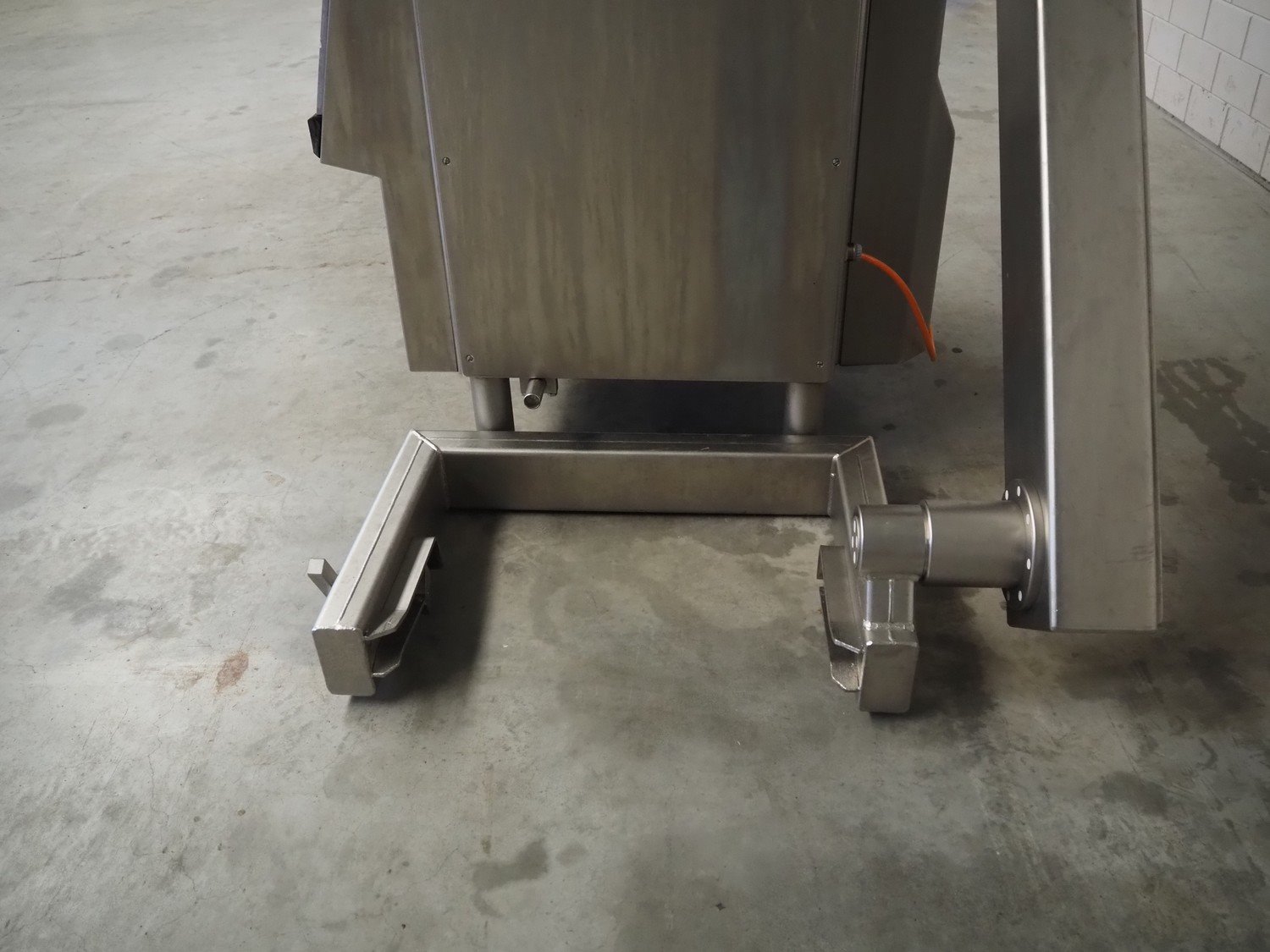 Handtmann vacuum filling machine with lifter for 200 liter meat bins, type: VF200B, number: 2697, 220 V, 50 Hz, 32.8 A, 6.5 kW, dimensions: 1850 mm x 1300 mm x 2200 mm. Kavel locatie: Makkummerwaard 3, 8321 WV Urk, Nederland