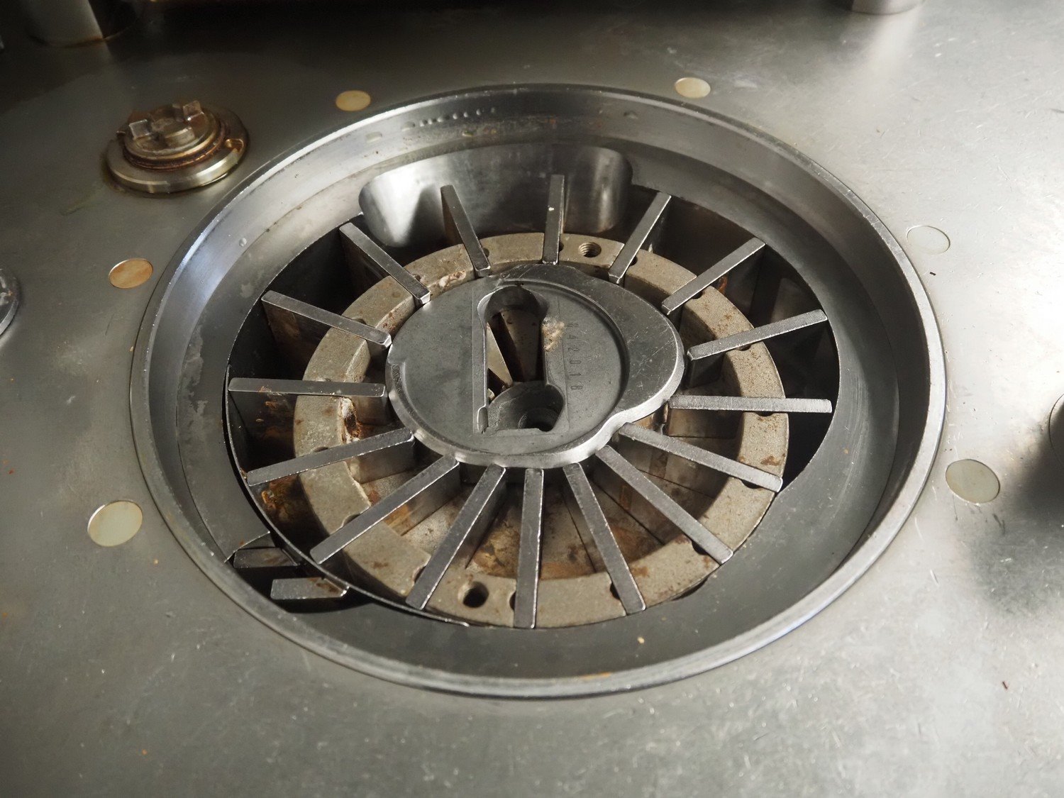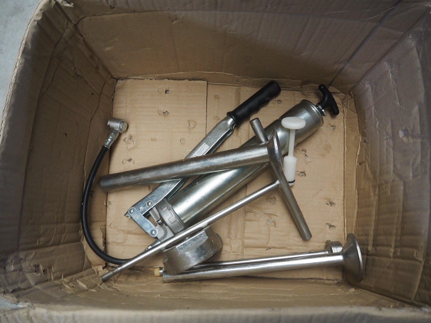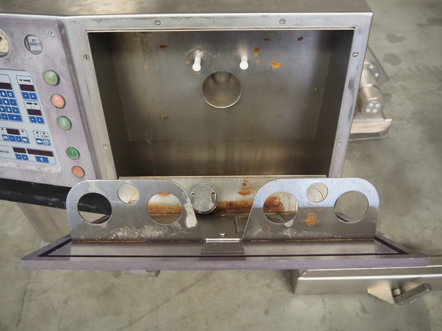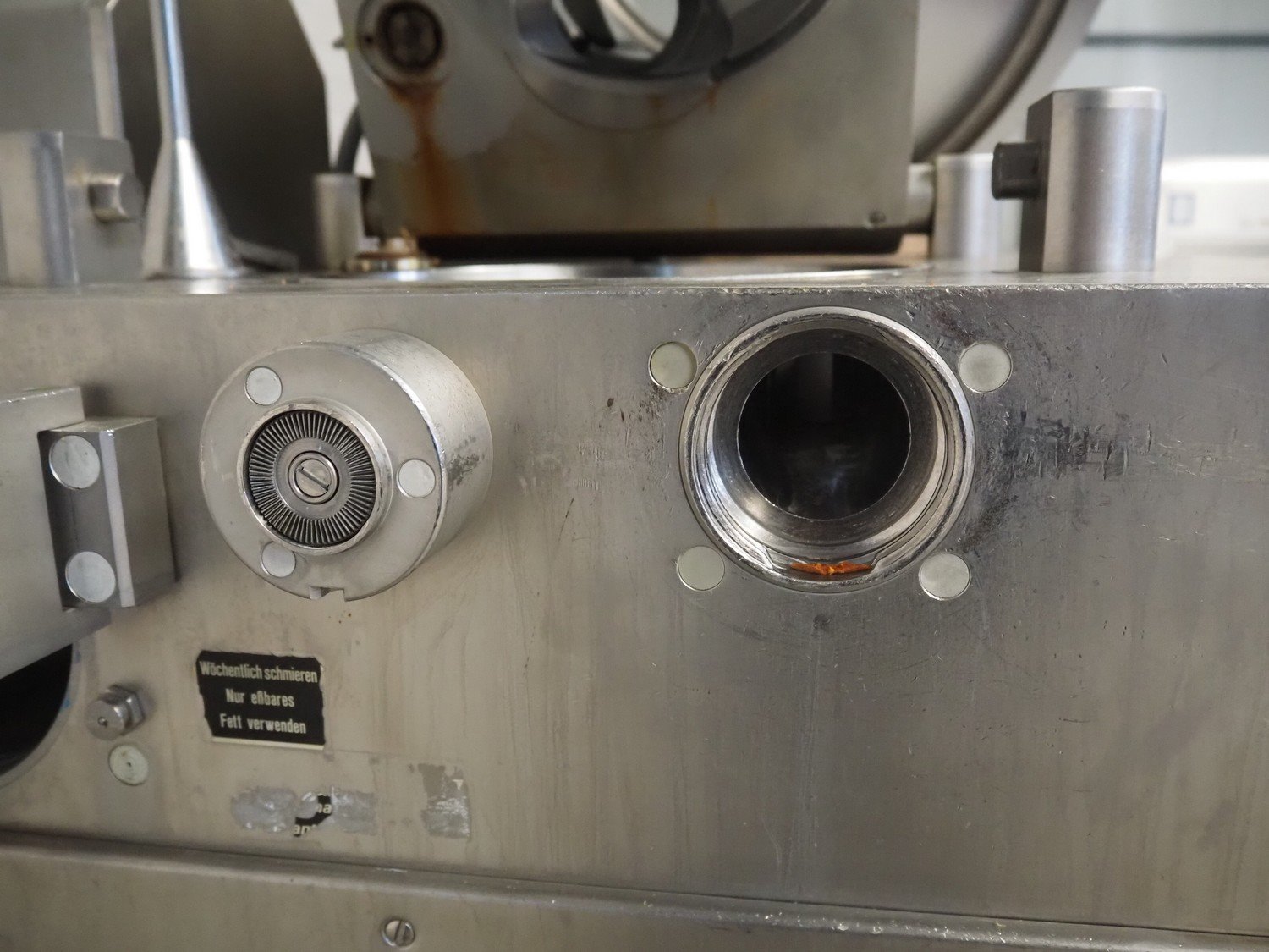 Handtmann vacuum filling machine with lifter for 200 liter meat bins, type: VF200B, number: 2697, 220 V, 50 Hz, 32.8 A, 6.5 kW, dimensions: 1850 mm x 1300 mm x 2200 mm. Kavel locatie: Makkummerwaard 3, 8321 WV Urk, Nederland