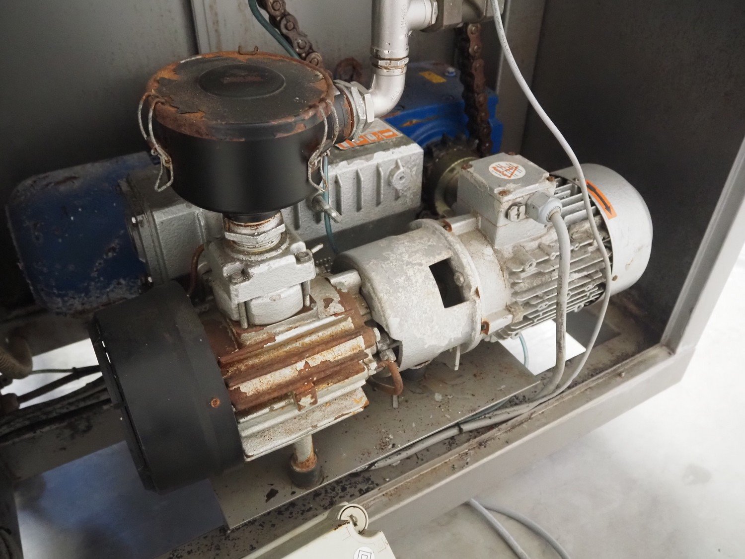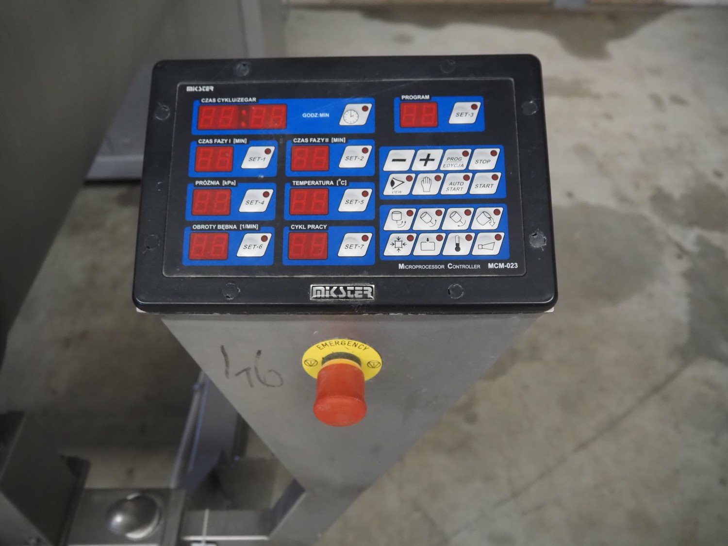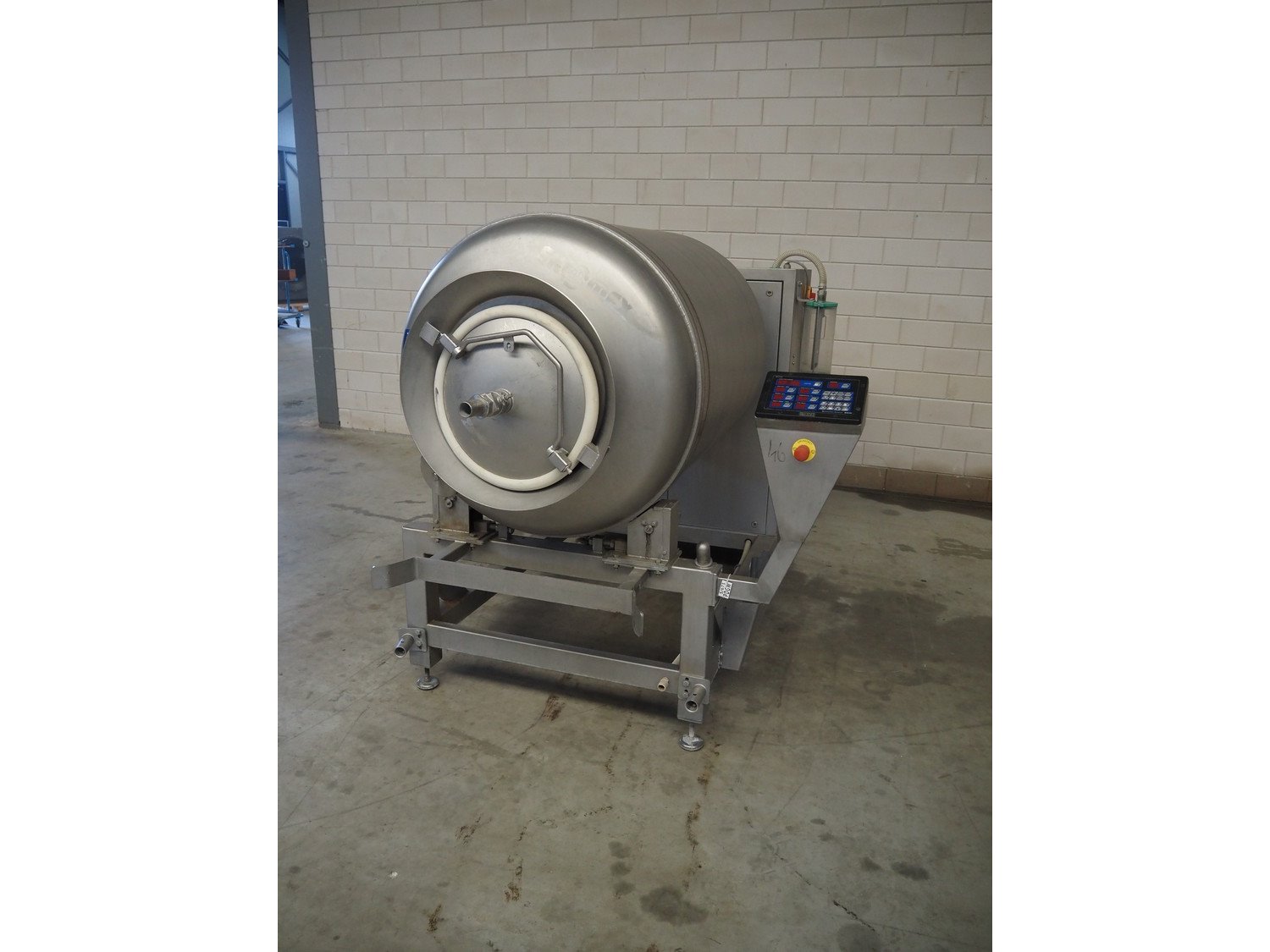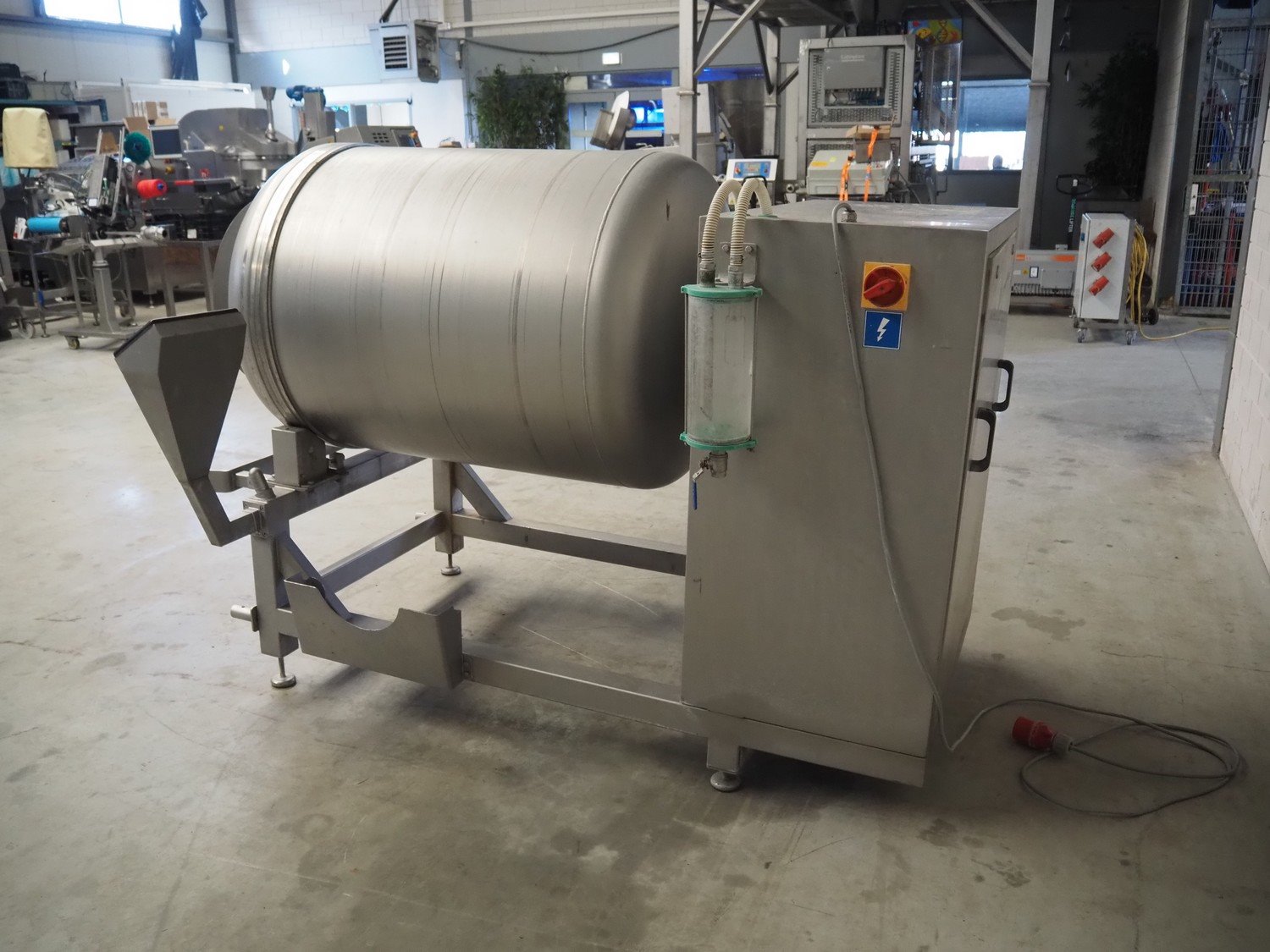 Ekomex vacuum tumbler, type: MV 800, machine number: 4311030005, year of construction: 2011, 400 V, 50 Hz, 3.5 kW, weight: 700 kg, volume: 800 liter, Busch vacuum pump, type: RA 0040 F 503, capacity: 40 m³ per hour, dimensions: 2250 mm x 1400 mm x 1600 mm. Kavel locatie: Makkummerwaard 3, 8321 WV Urk, Nederland