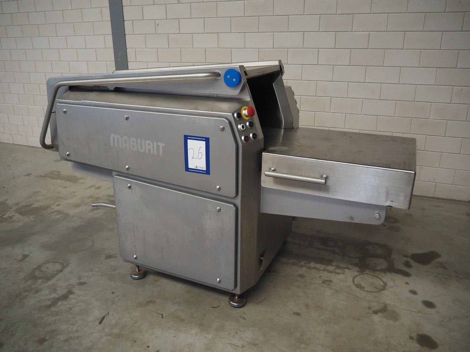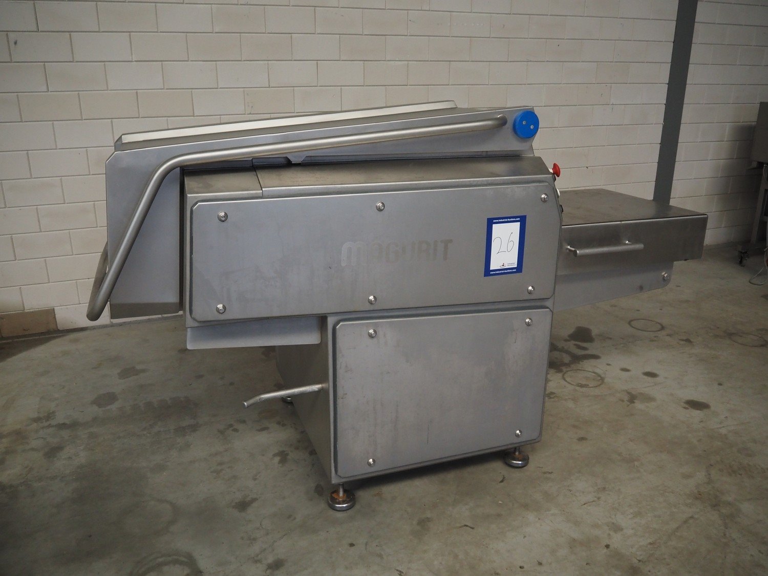 Magurit flaker, type: 314, machine number: 6097, year of construction: 2010, 400 V, 50 Hz, 20 A, 9.2 kW, 6 bar, weight: 960 kg, working width: 440 mm, knife width: 140 mm, total dimensions: 2300 mm x 1050 mm x 1350 mm. Kavel locatie: Makkummerwaard 3, 8321 WV Urk, Nederland