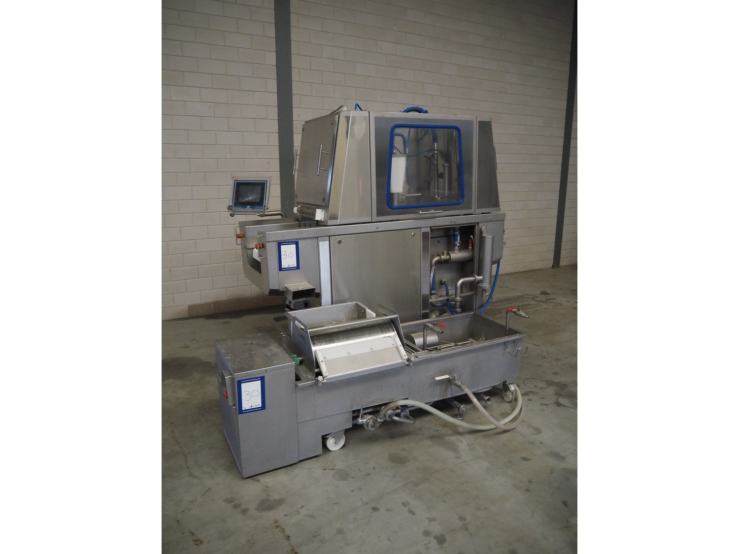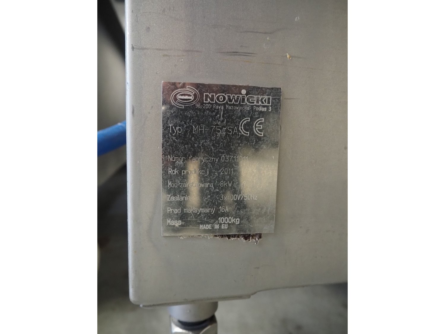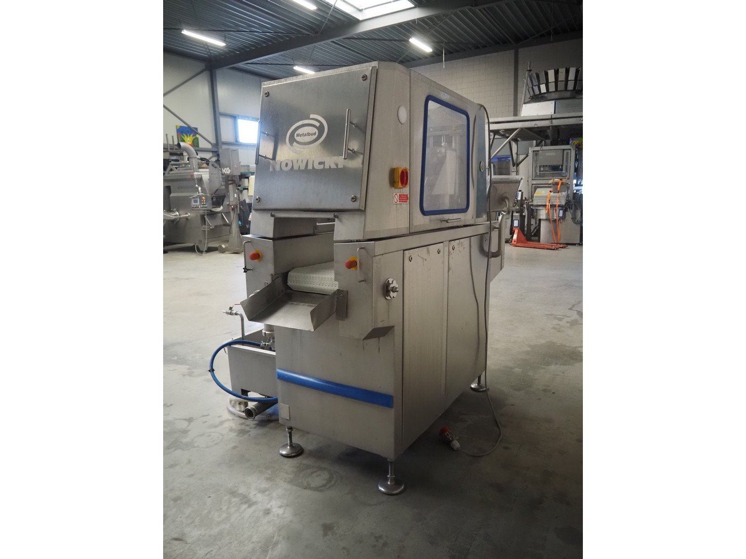 Nowicki injector with filter tub, model: MH-75 SAS, factory number: 03711011, year of construction: 2001, 400 V, 3 Ph, 50 Hz, 16 A, 8 kW, weight: 1000 kg, 75 needles, plastic mesh belt, belt width: 360 mm, total dimensions: 2350 mm x 1050 mm x 2100 mm. Dimensions filter tub: 2400 mm x 900 mm x 800 mm. Kavel locatie: Makkummerwaard 3, 8321 WV Urk, Nederland