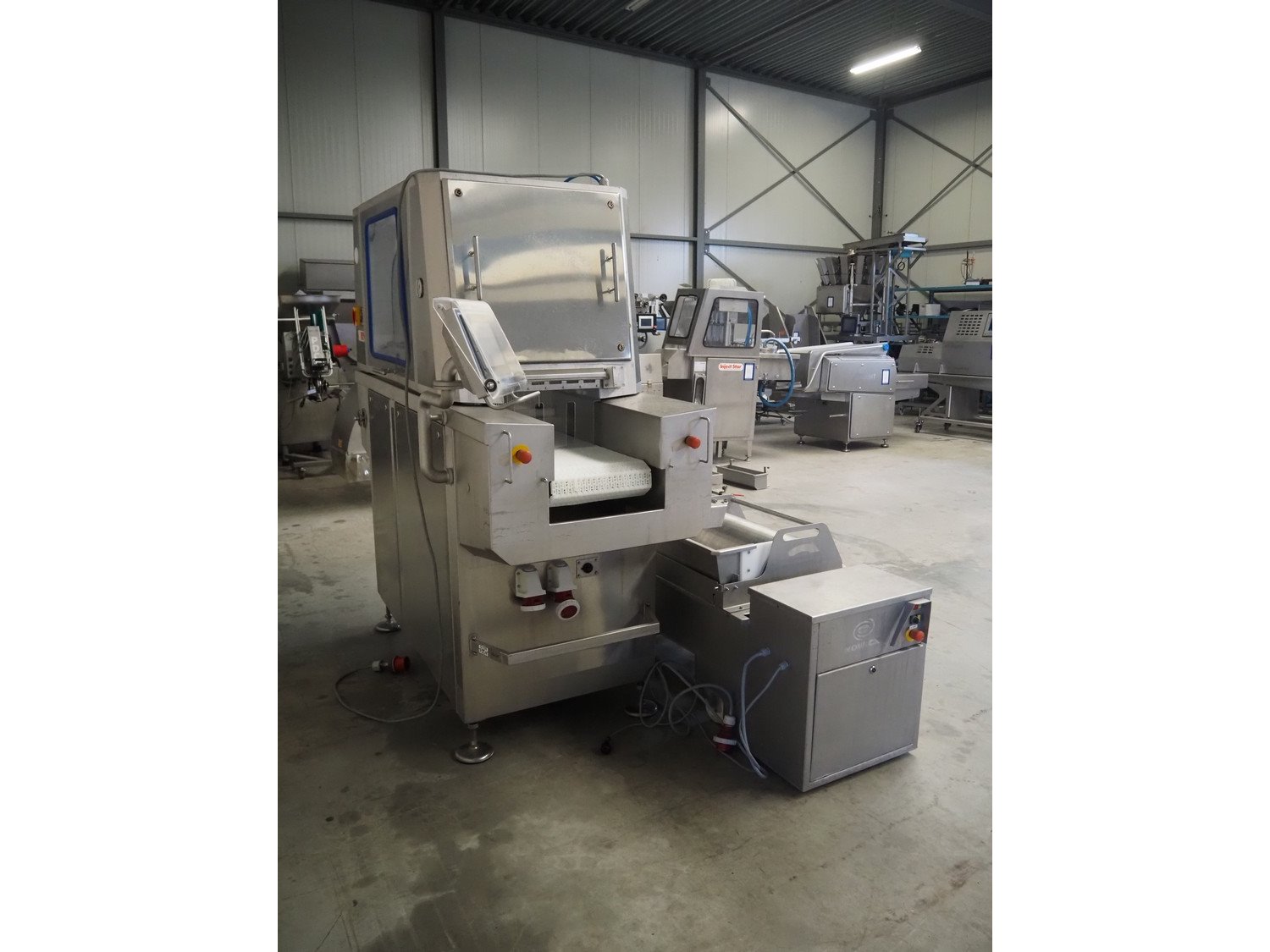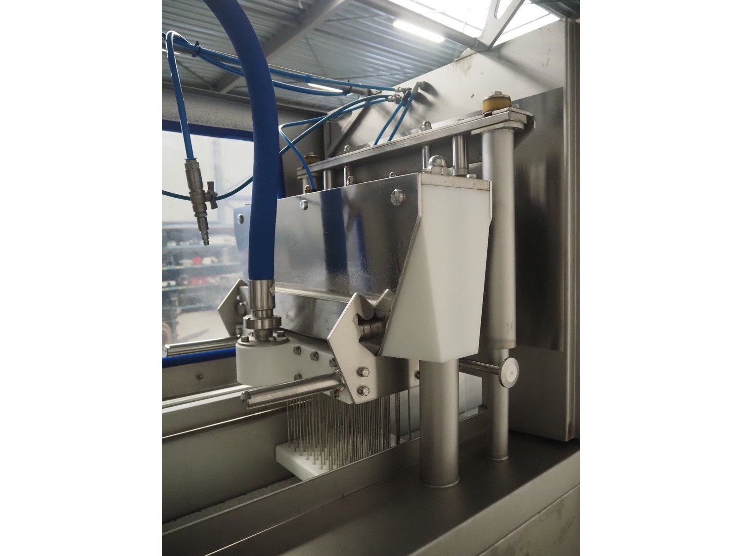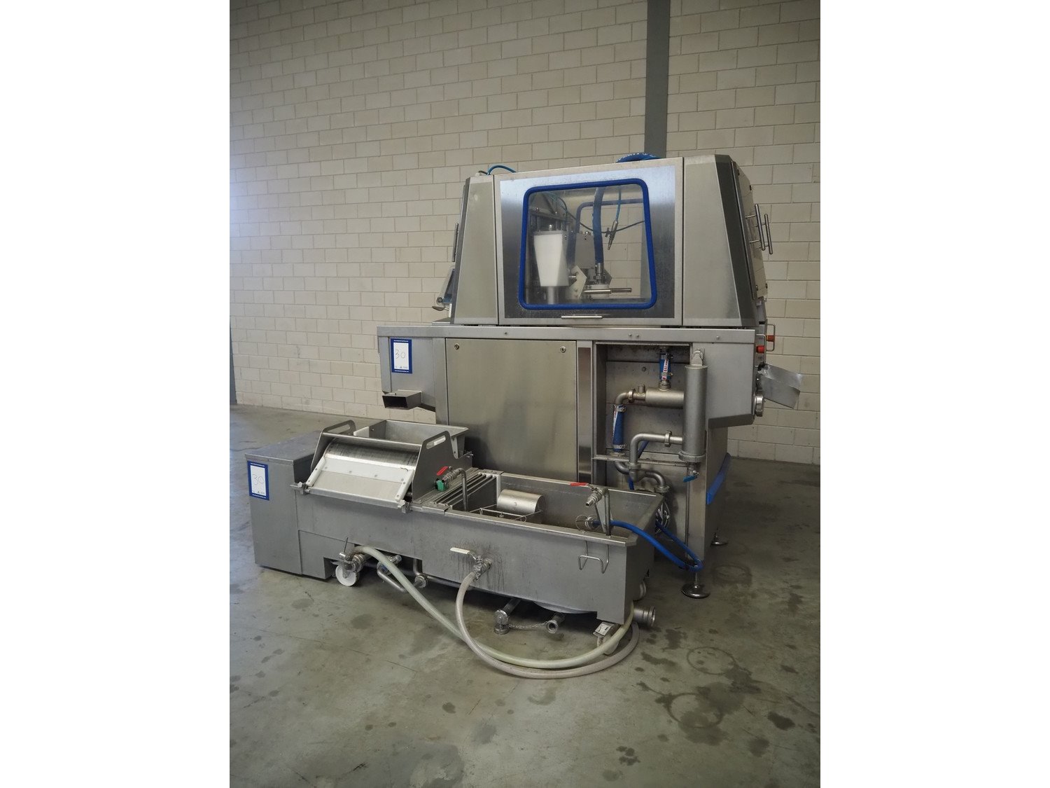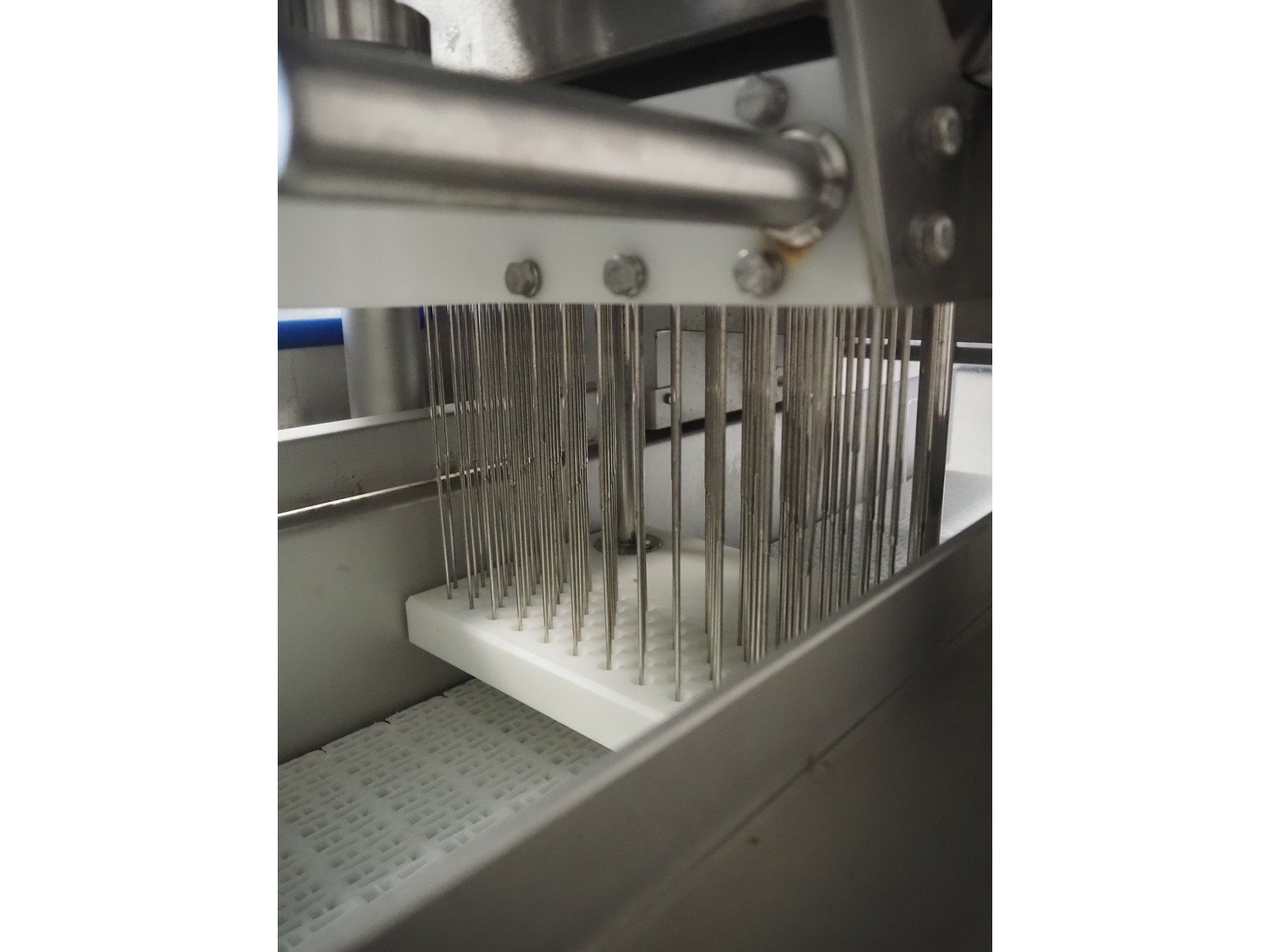 Nowicki injector with filter tub, model: MH-75 SAS, factory number: 03711011, year of construction: 2001, 400 V, 3 Ph, 50 Hz, 16 A, 8 kW, weight: 1000 kg, 75 needles, plastic mesh belt, belt width: 360 mm, total dimensions: 2350 mm x 1050 mm x 2100 mm. Dimensions filter tub: 2400 mm x 900 mm x 800 mm. Kavel locatie: Makkummerwaard 3, 8321 WV Urk, Nederland