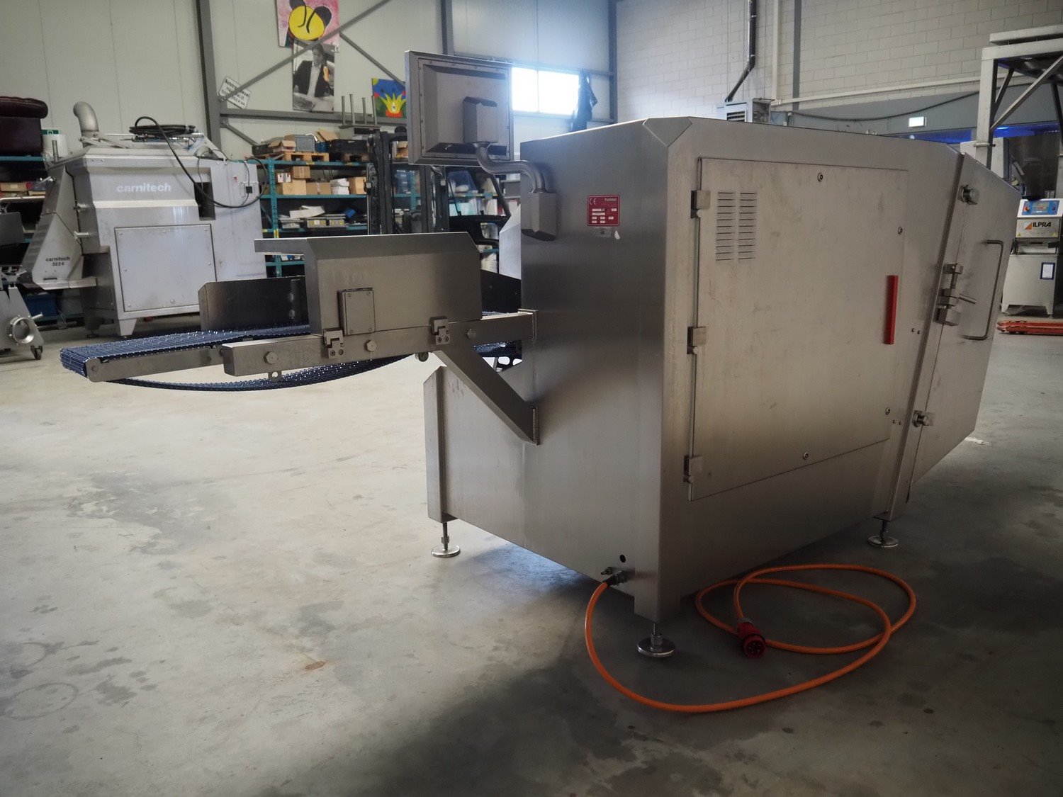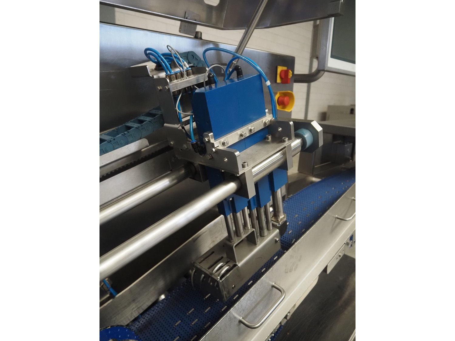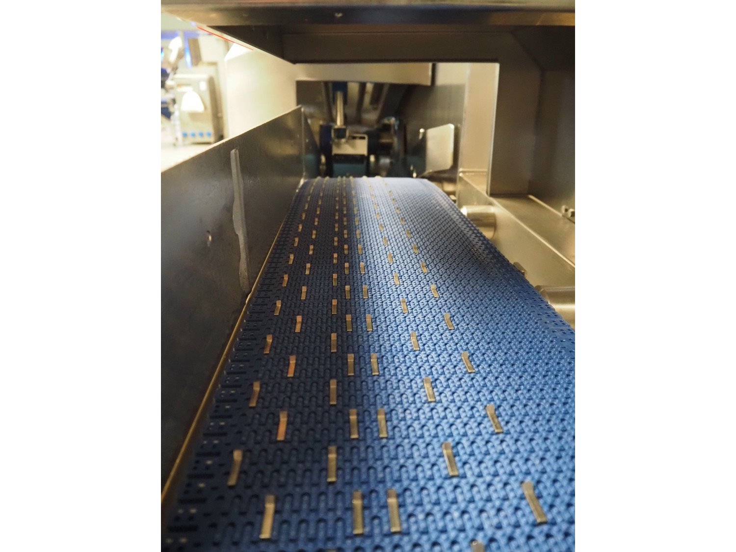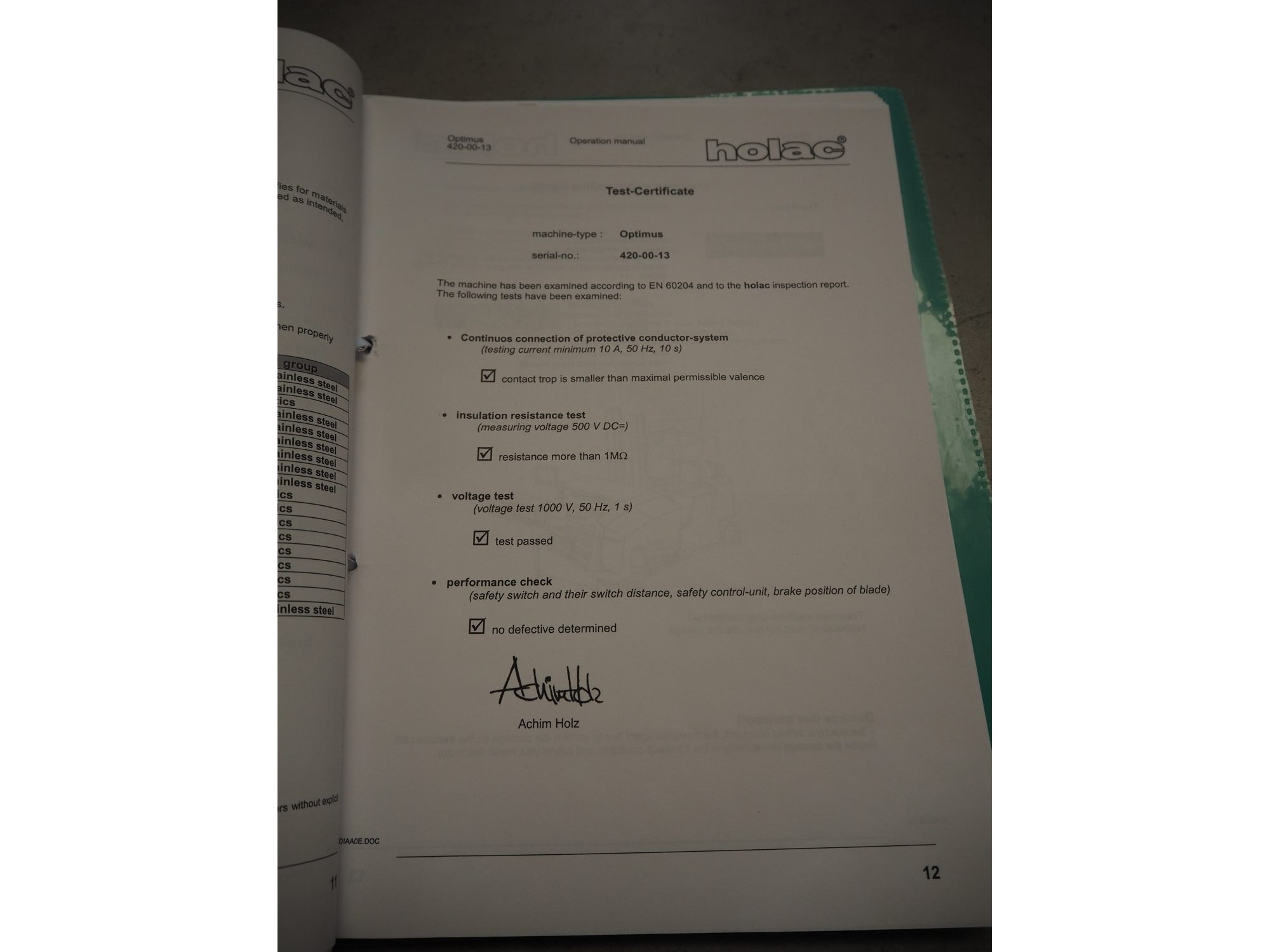 Holac Maschinenbau GmbH slicer, type: Optimus, serial number: 420-00-13, year of construction: 2017, 400 V, 50 Hz, 32 A, 12 kW, 6 bar, plastic belts, belt width: 270 mm and 300 mm, total dimensions: 4900 mm x 1500 mm x 1700 mm. Kavel locatie: Makkummerwaard 3, 8321 WV Urk, Nederland