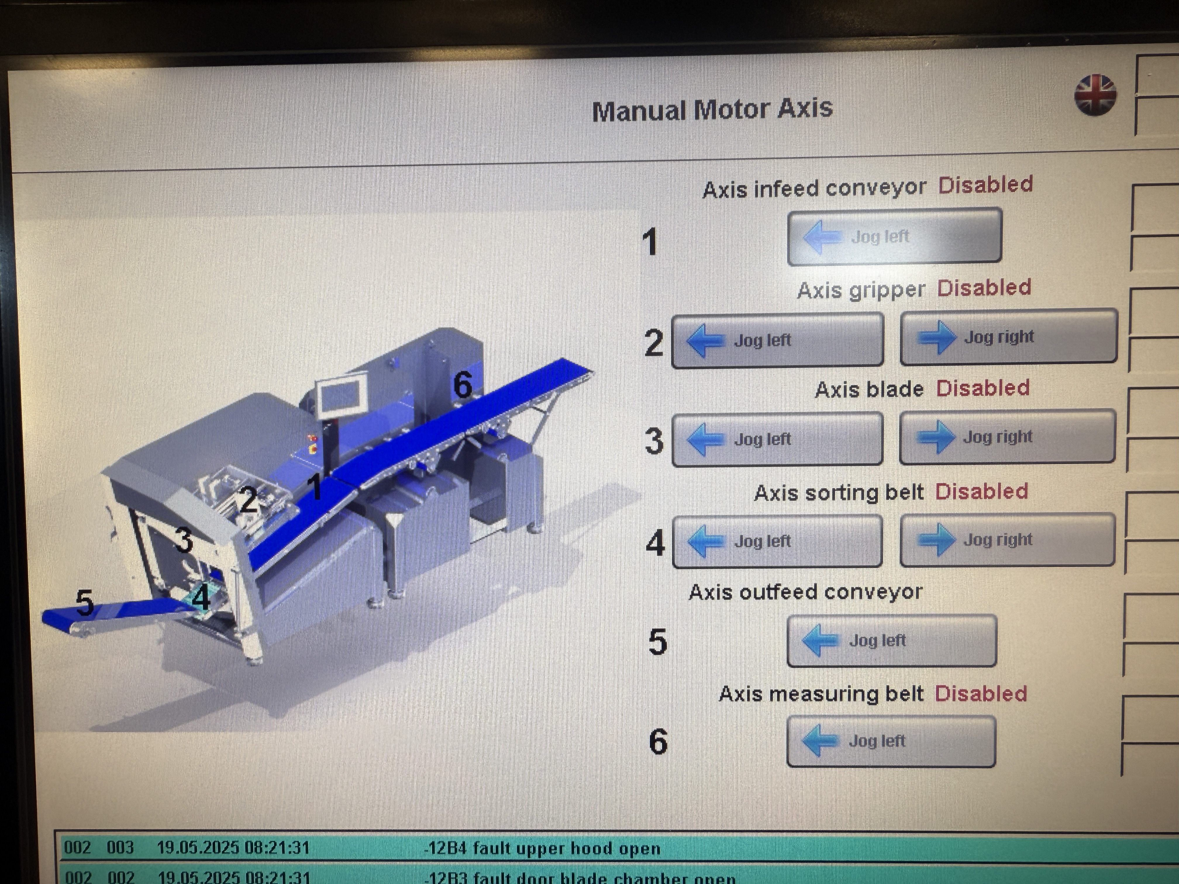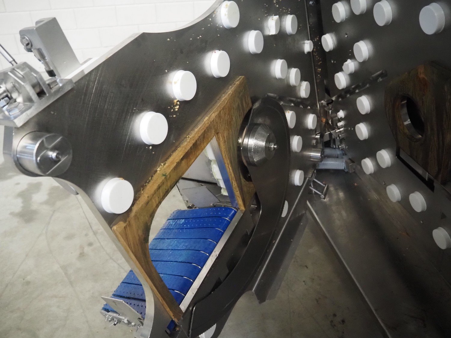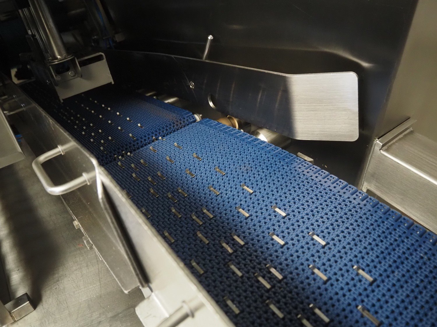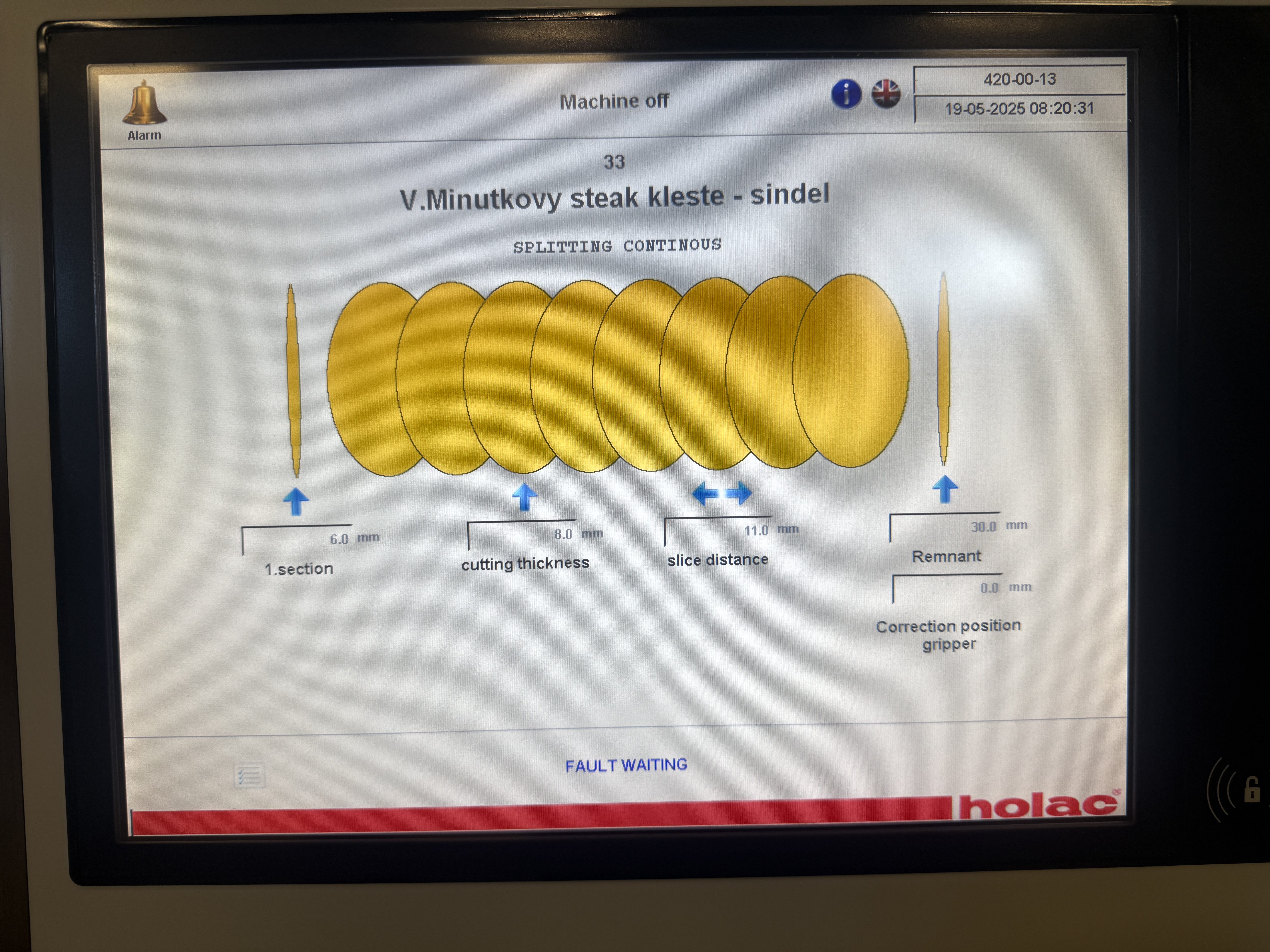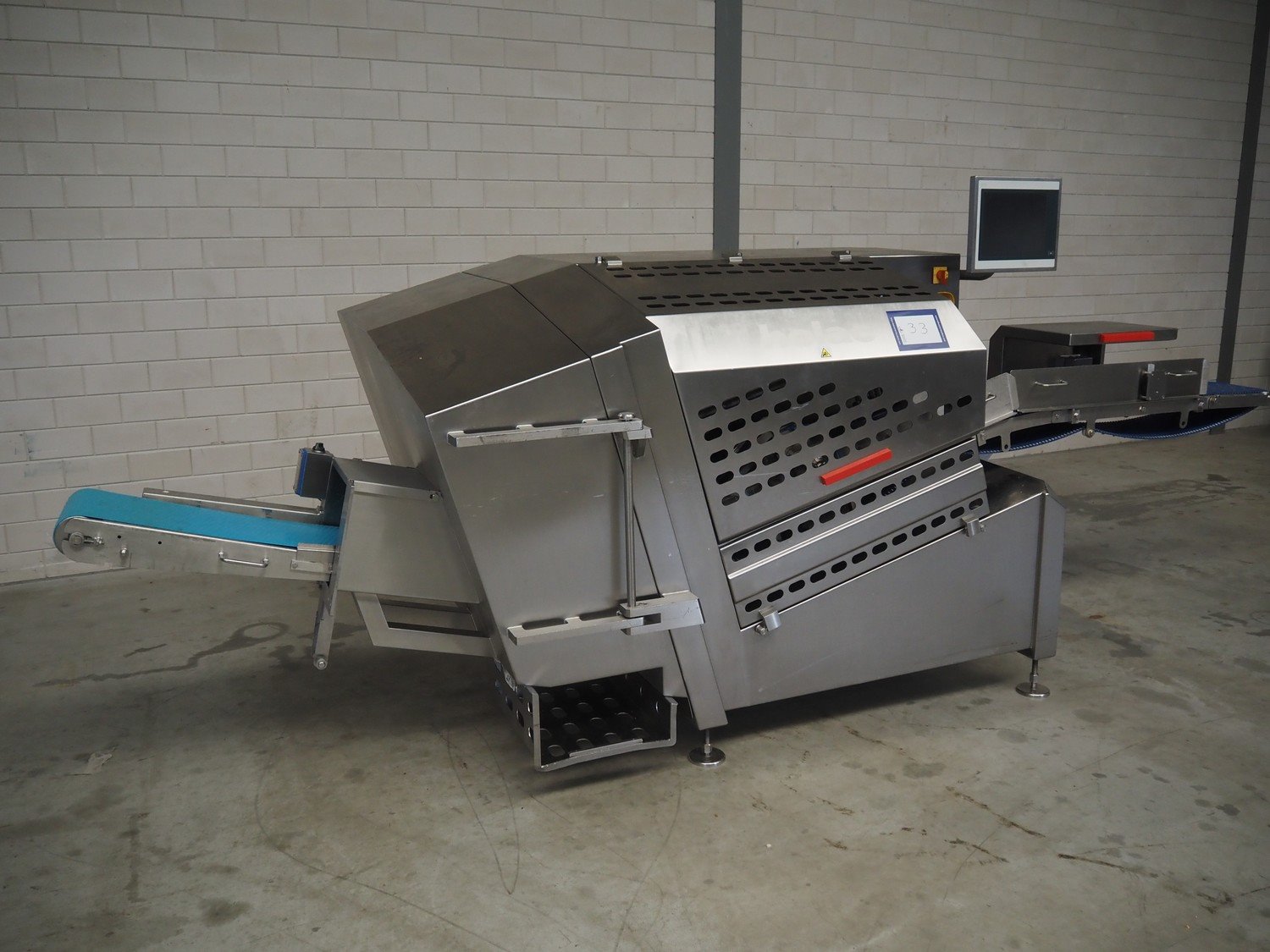 Holac Maschinenbau GmbH slicer, type: Optimus, serial number: 420-00-13, year of construction: 2017, 400 V, 50 Hz, 32 A, 12 kW, 6 bar, plastic belts, belt width: 270 mm and 300 mm, total dimensions: 4900 mm x 1500 mm x 1700 mm. Kavel locatie: Makkummerwaard 3, 8321 WV Urk, Nederland