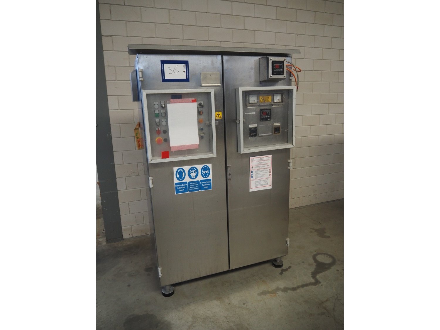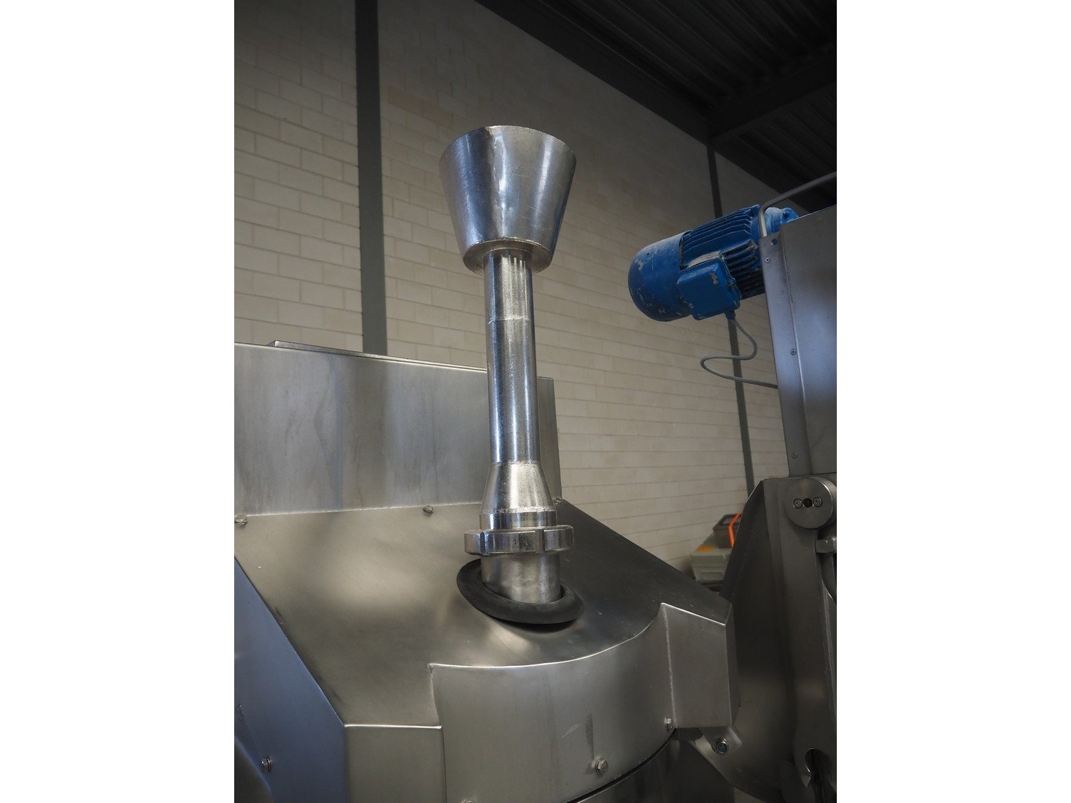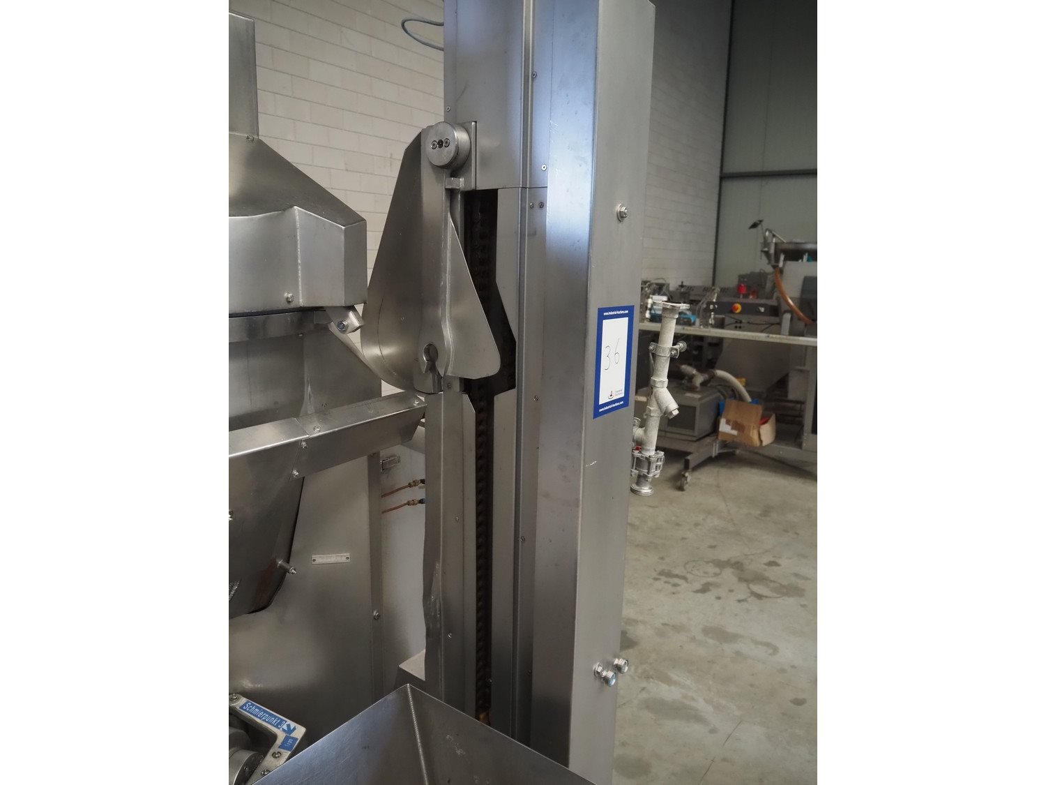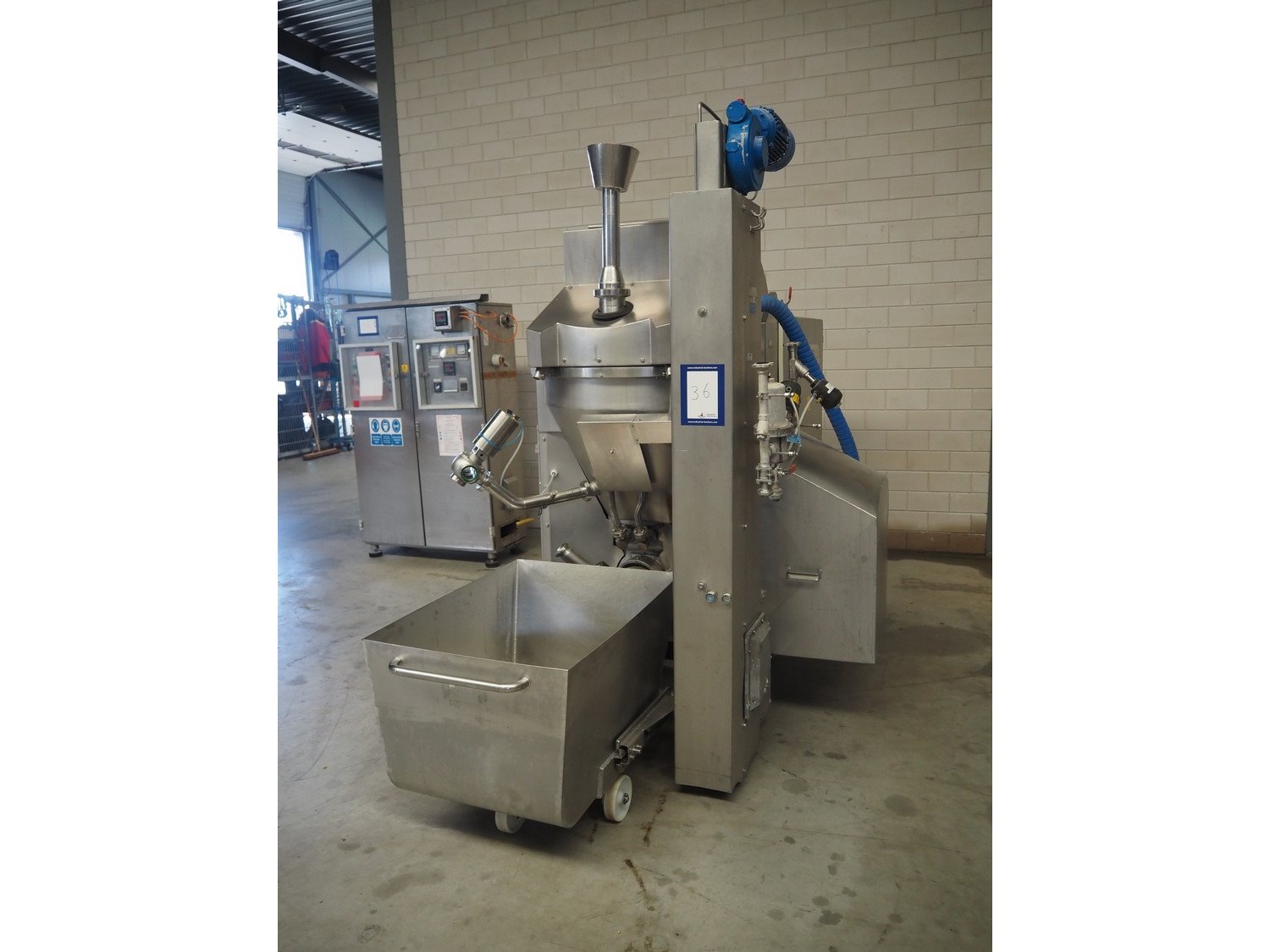 Karl Schnell emulsifier with lifter for 200 liter meat bins, model: FD3K, machine number: 31350, year of construction: 1992, 380 V, 3 Ph, 50 Hz, 84/125 A, 38.5 kW, weight: 3000 kg, batch capacity: 310 liter, total dimensions: 2250 mm x 1800 mm x 2100 mm. Dimensions switch cabinet: 1200 mm x 500 mm x 2100 mm. Including pallet with parts, dimensions: 1200 mm x 800 mm x 400 mm. Kavel locatie: Makkummerwaard 3, 8321 WV Urk, Nederland