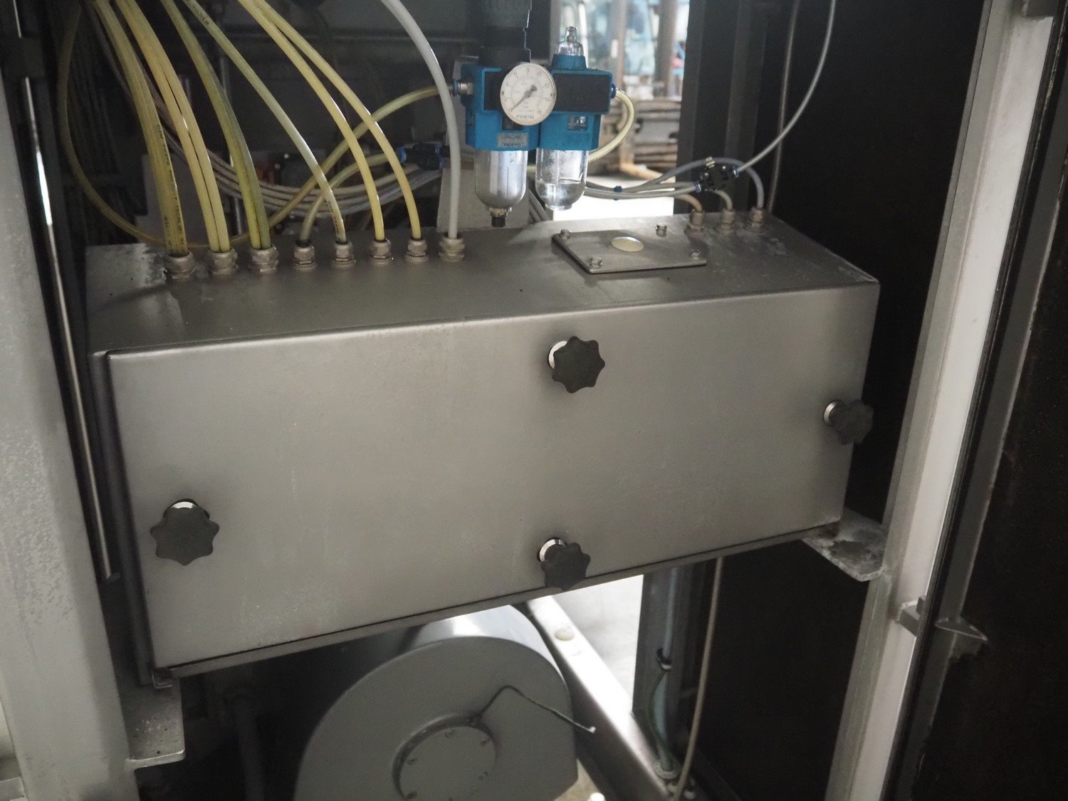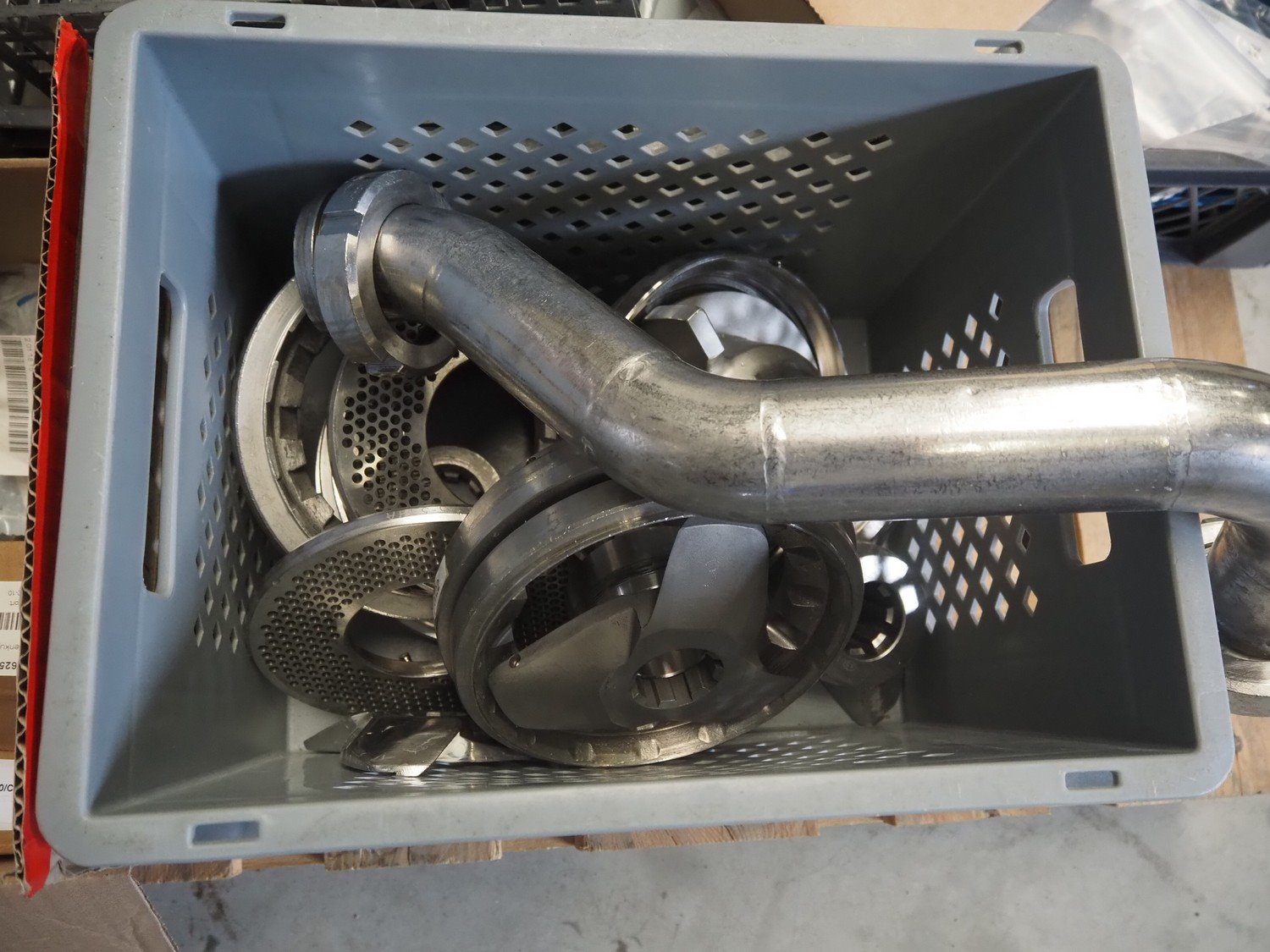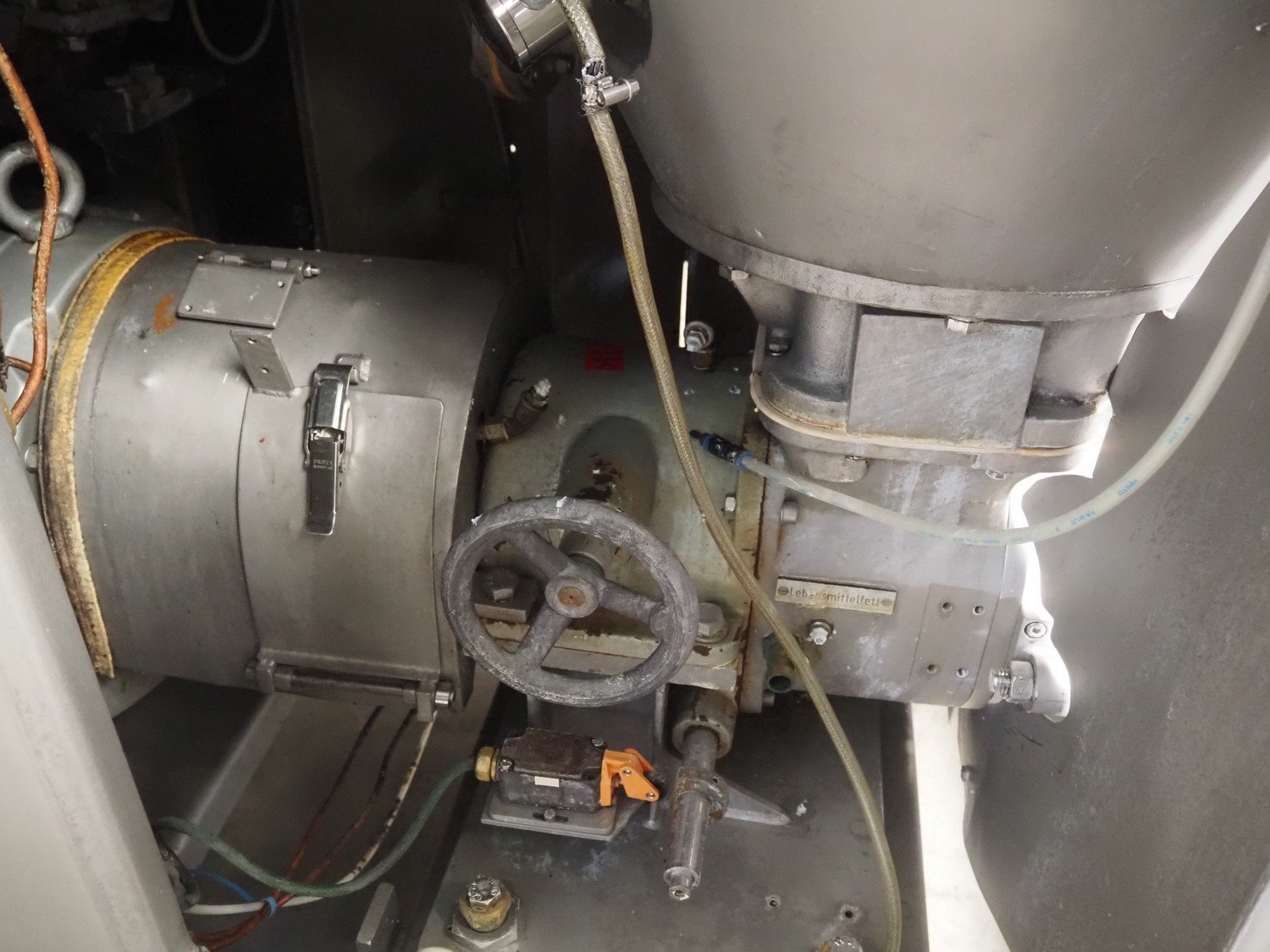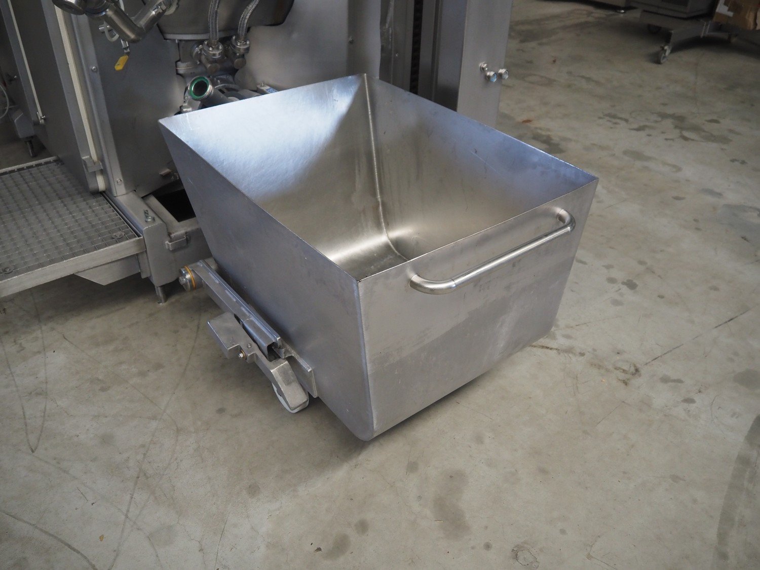Karl Schnell emulsifier with lifter for 200 liter meat bins, model: FD3K, machine number: 31350, year of construction: 1992, 380 V, 3 Ph, 50 Hz, 84/125 A, 38.5 kW, weight: 3000 kg, batch capacity: 310 liter, total dimensions: 2250 mm x 1800 mm x 2100 mm. Dimensions switch cabinet: 1200 mm x 500 mm x 2100 mm. Including pallet with parts, dimensions: 1200 mm x 800 mm x 400 mm. Kavel locatie: Makkummerwaard 3, 8321 WV Urk, Nederland