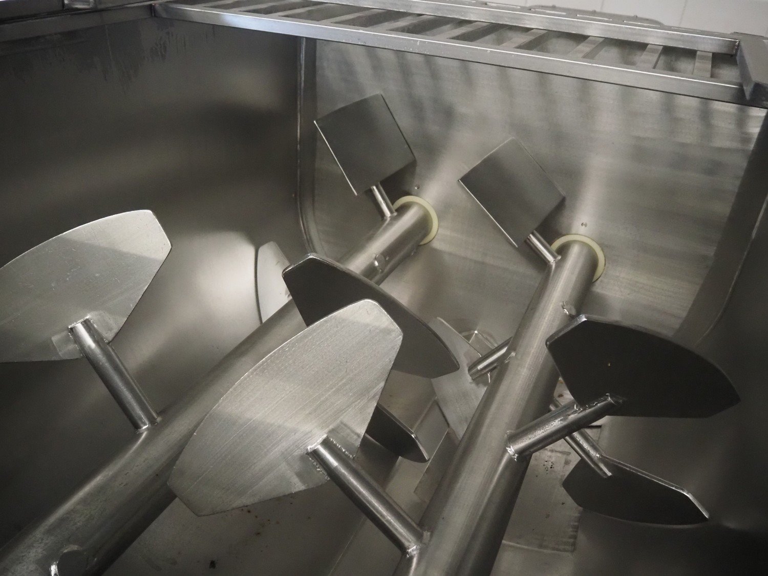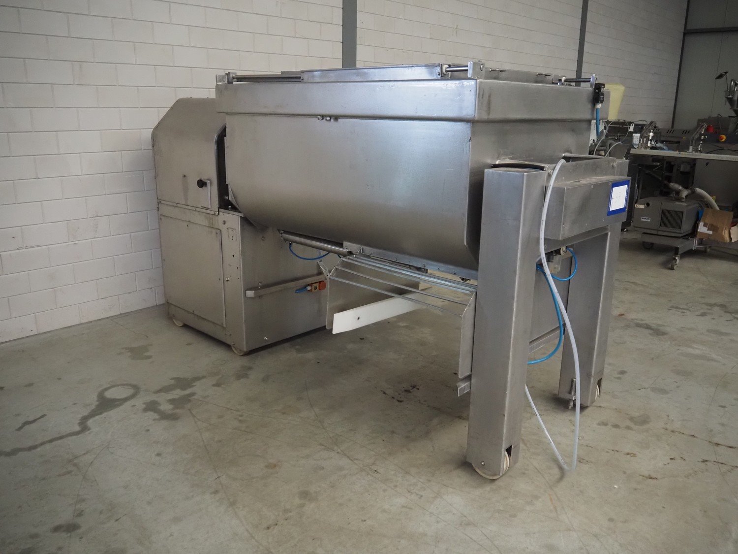 Velati double shaft paddle mixer, volume: 1000 liter, dimensions: 2750 mm x 1300 mm x 1700 mm. Kavel locatie: Makkummerwaard 3, 8321 WV Urk, Nederland